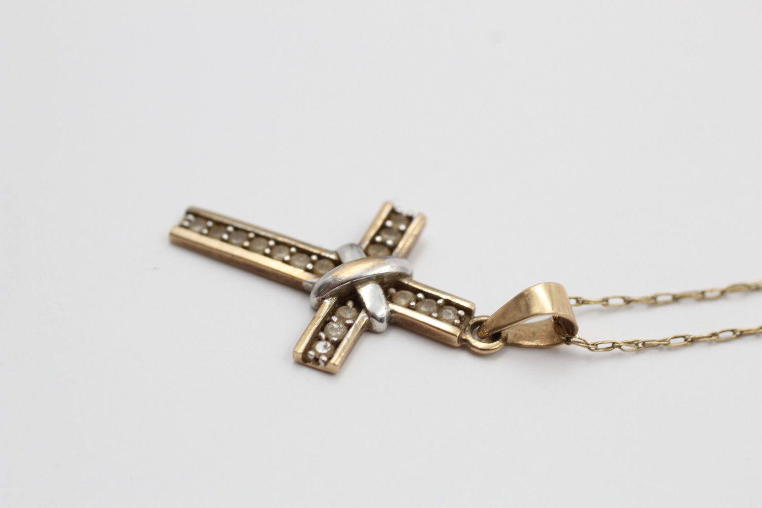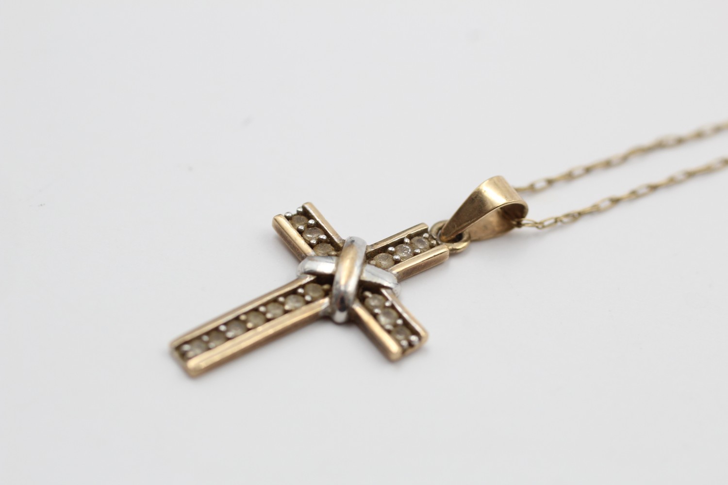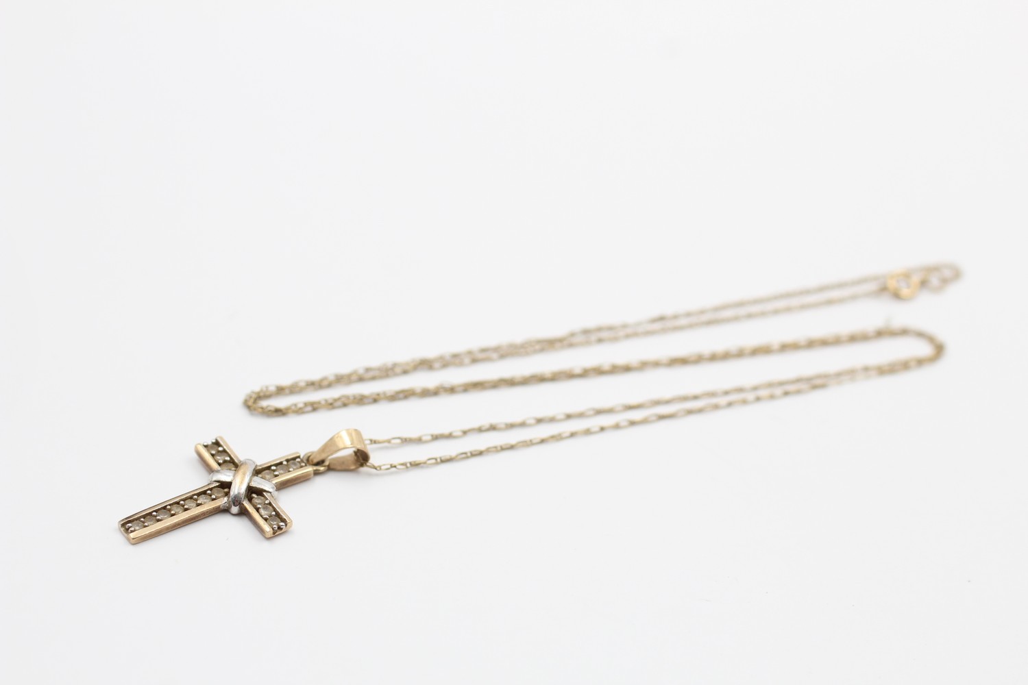 9ct gold gemstone cross pendant necklace 2g