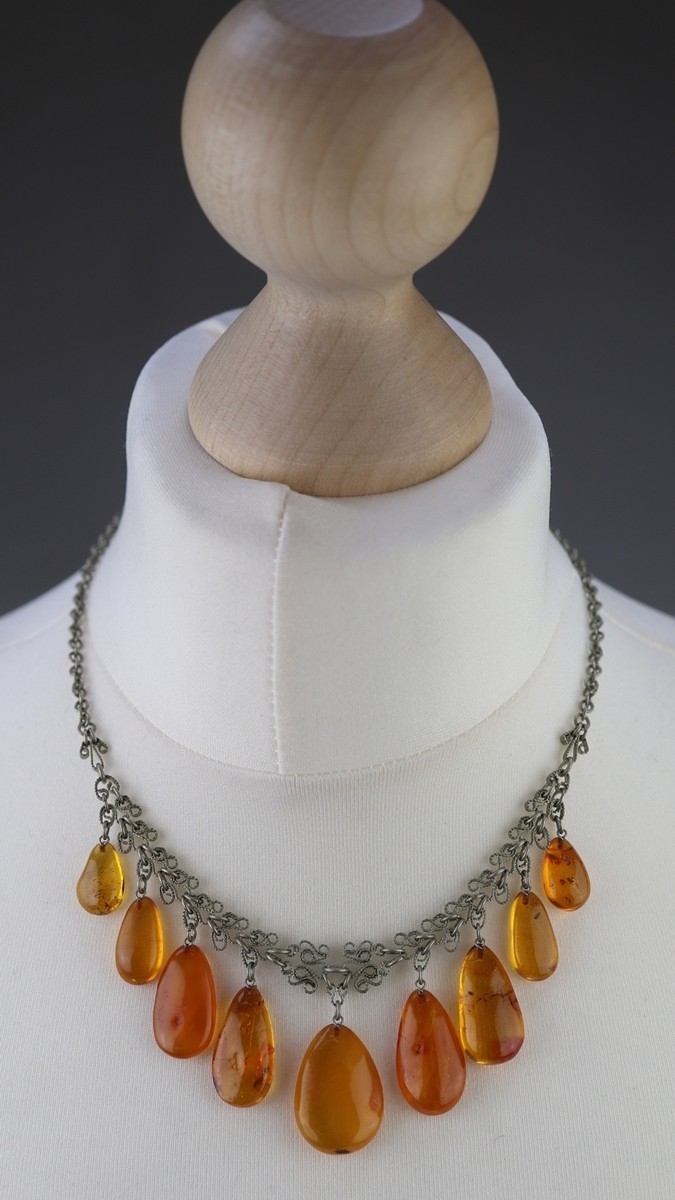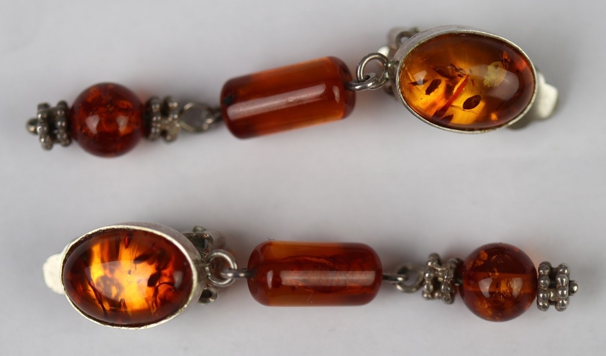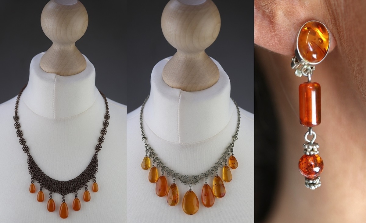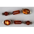2 Baltic amber necklaces and silver amber clip on earrings
