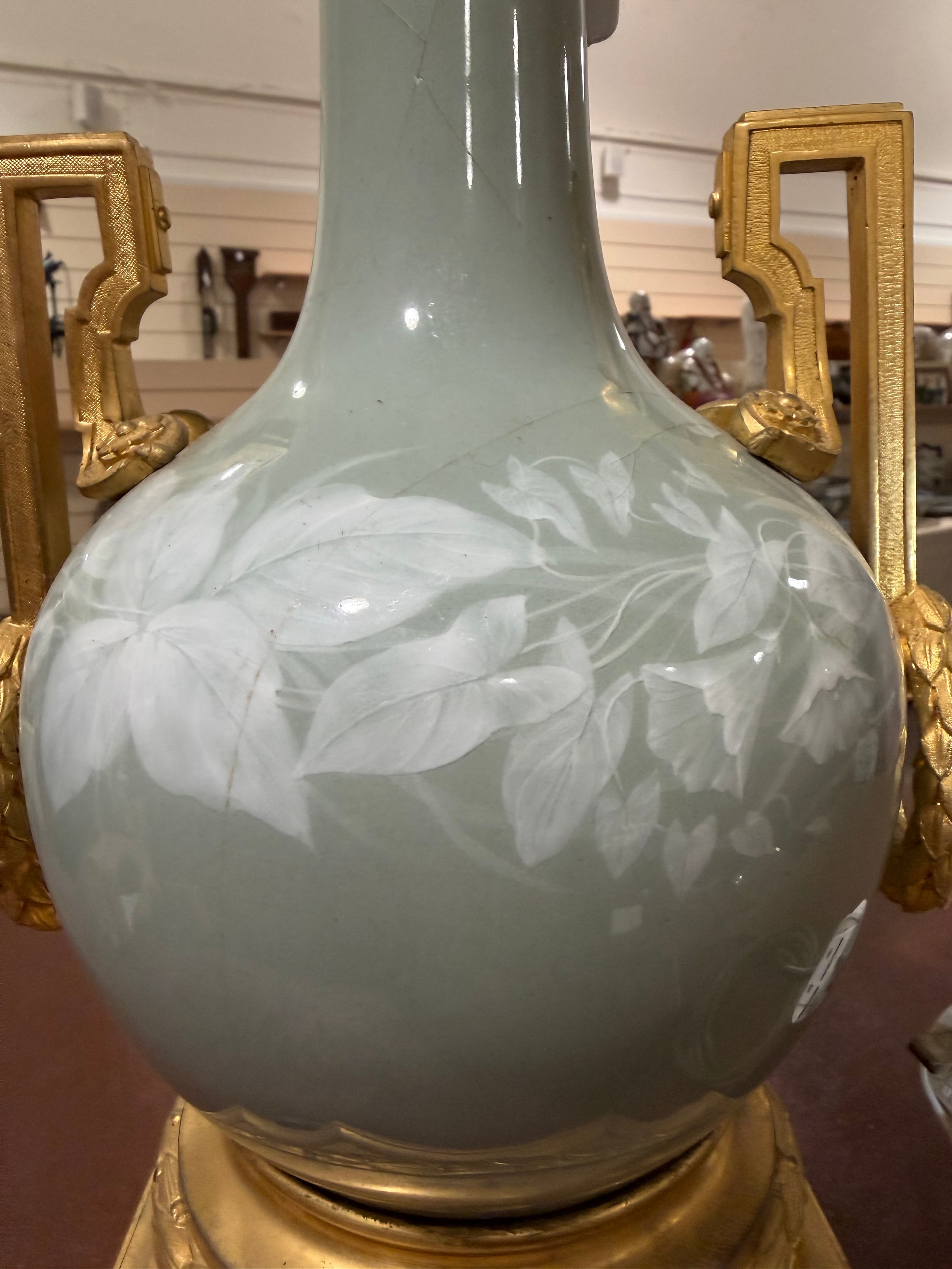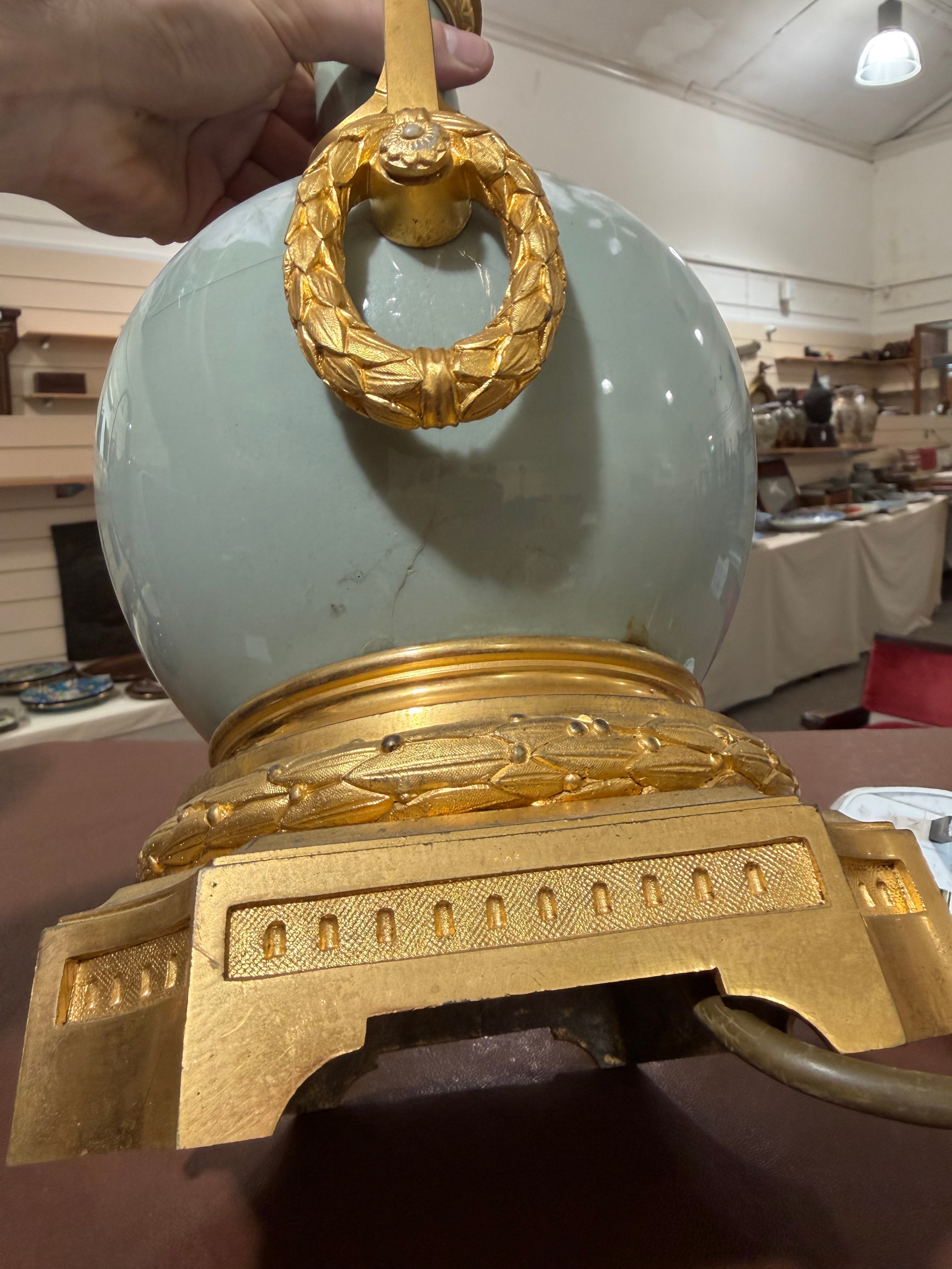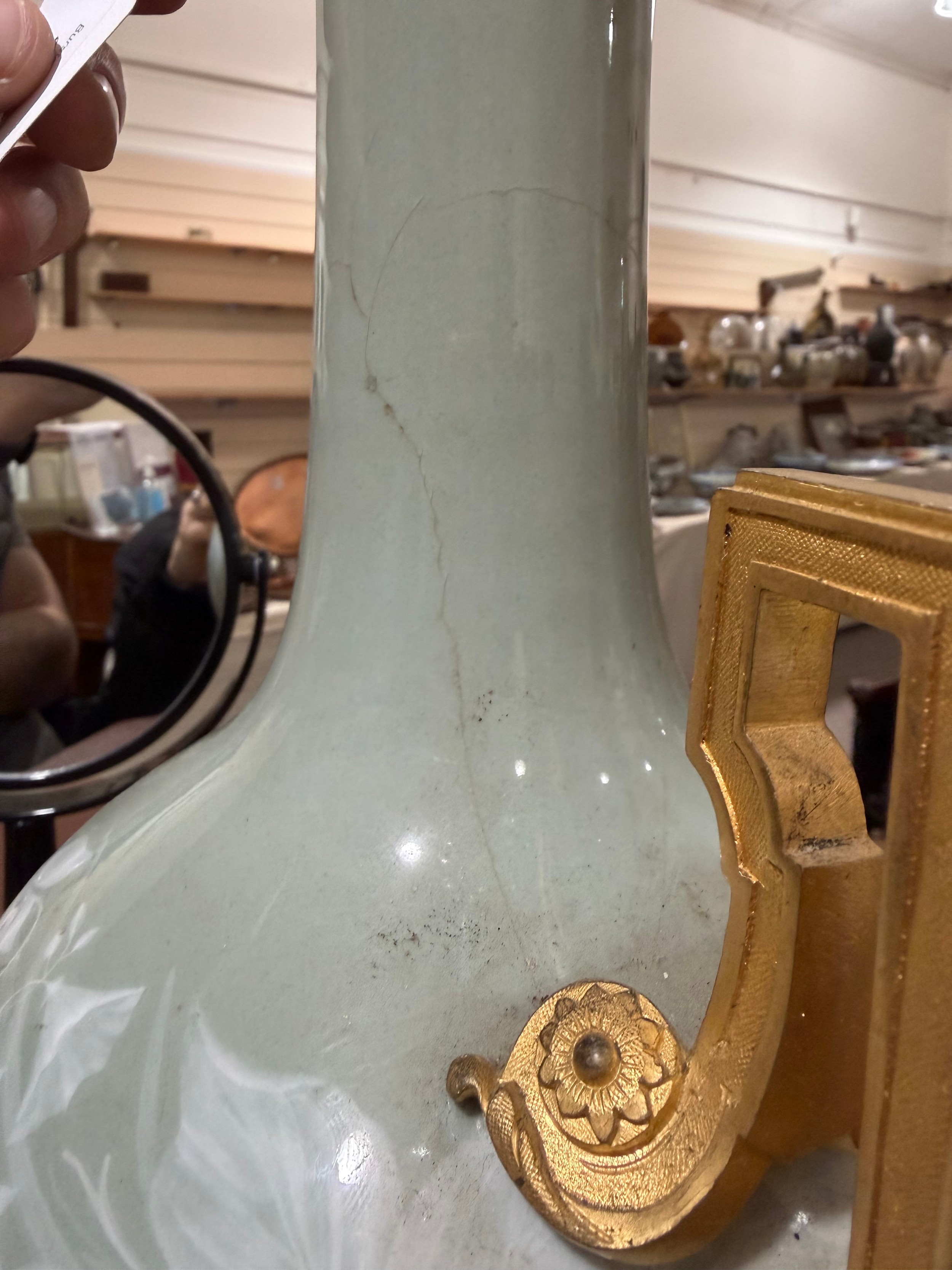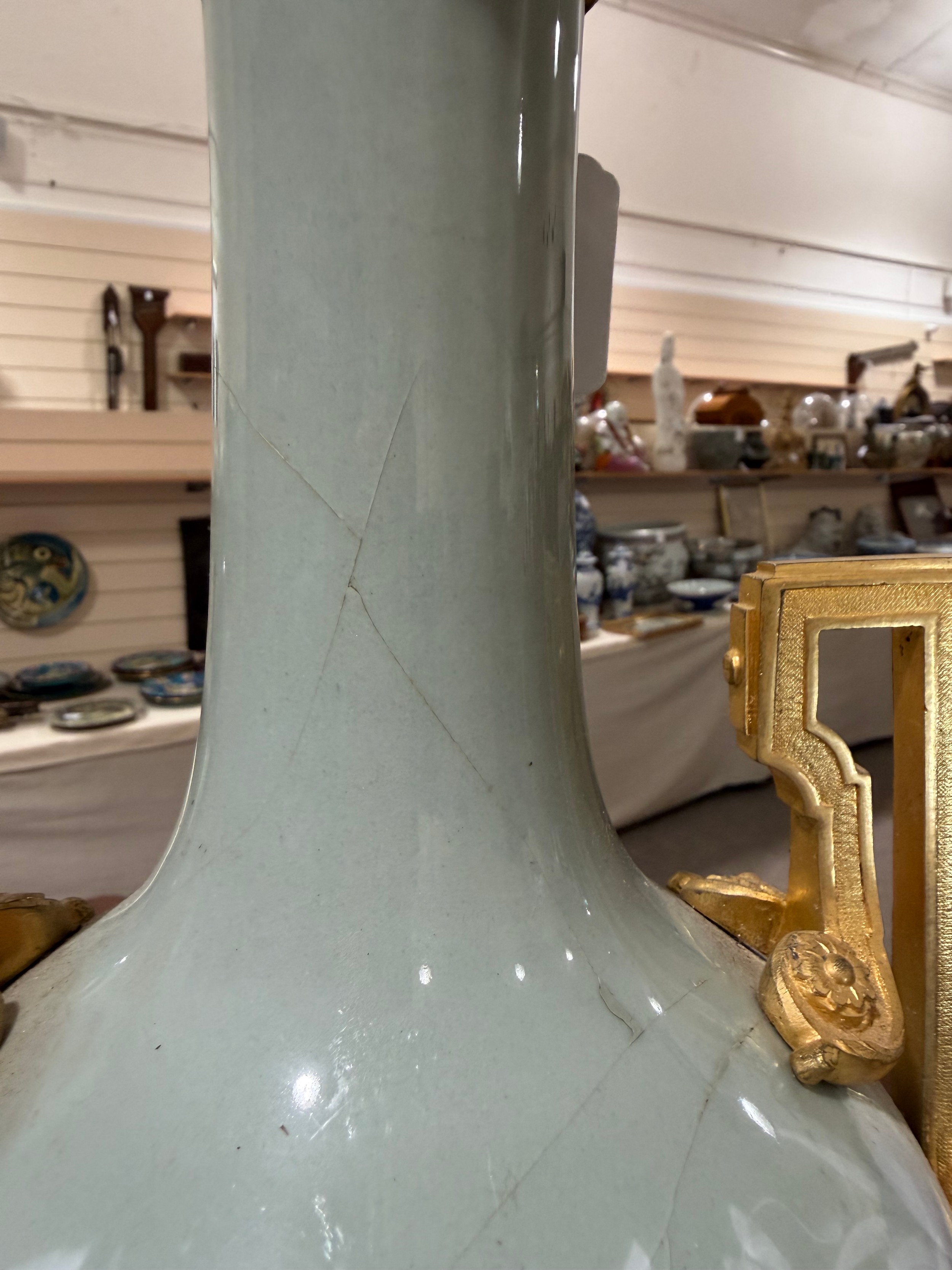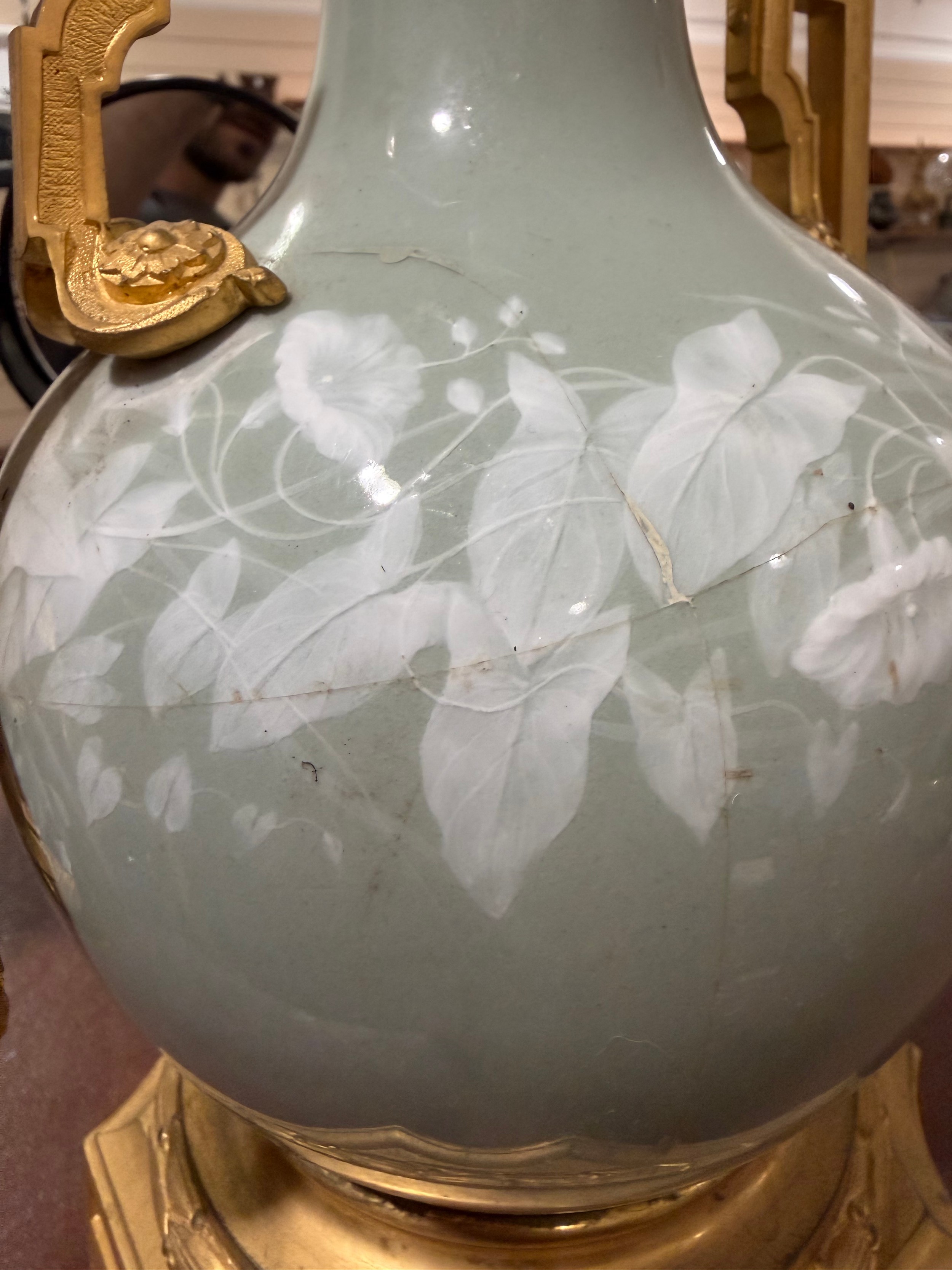 Numerous cracks all the way around the lamp base. See additional photos