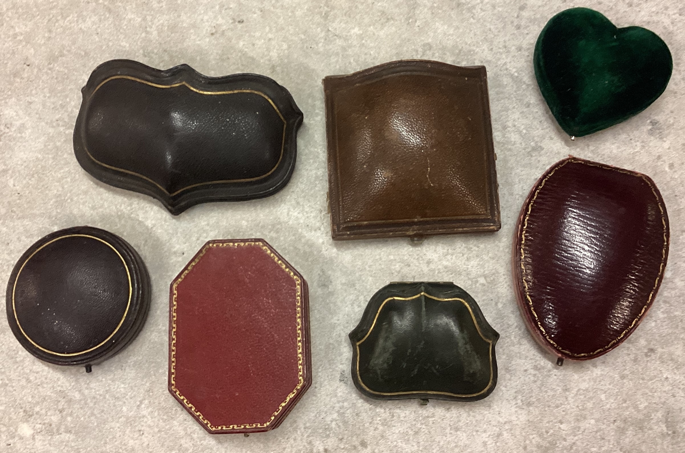A good collection of leather jewellery boxes. Est. £30 - £50.