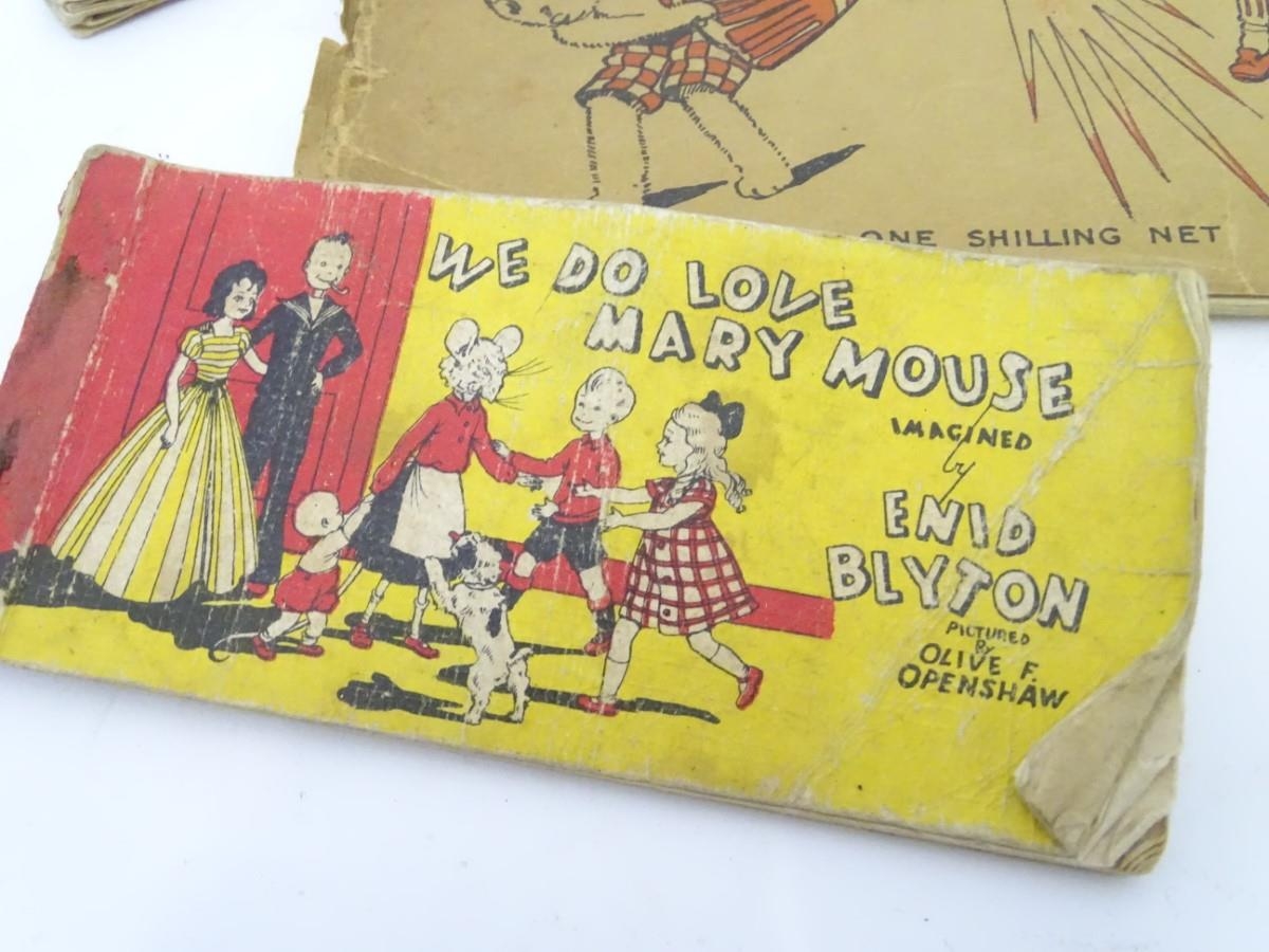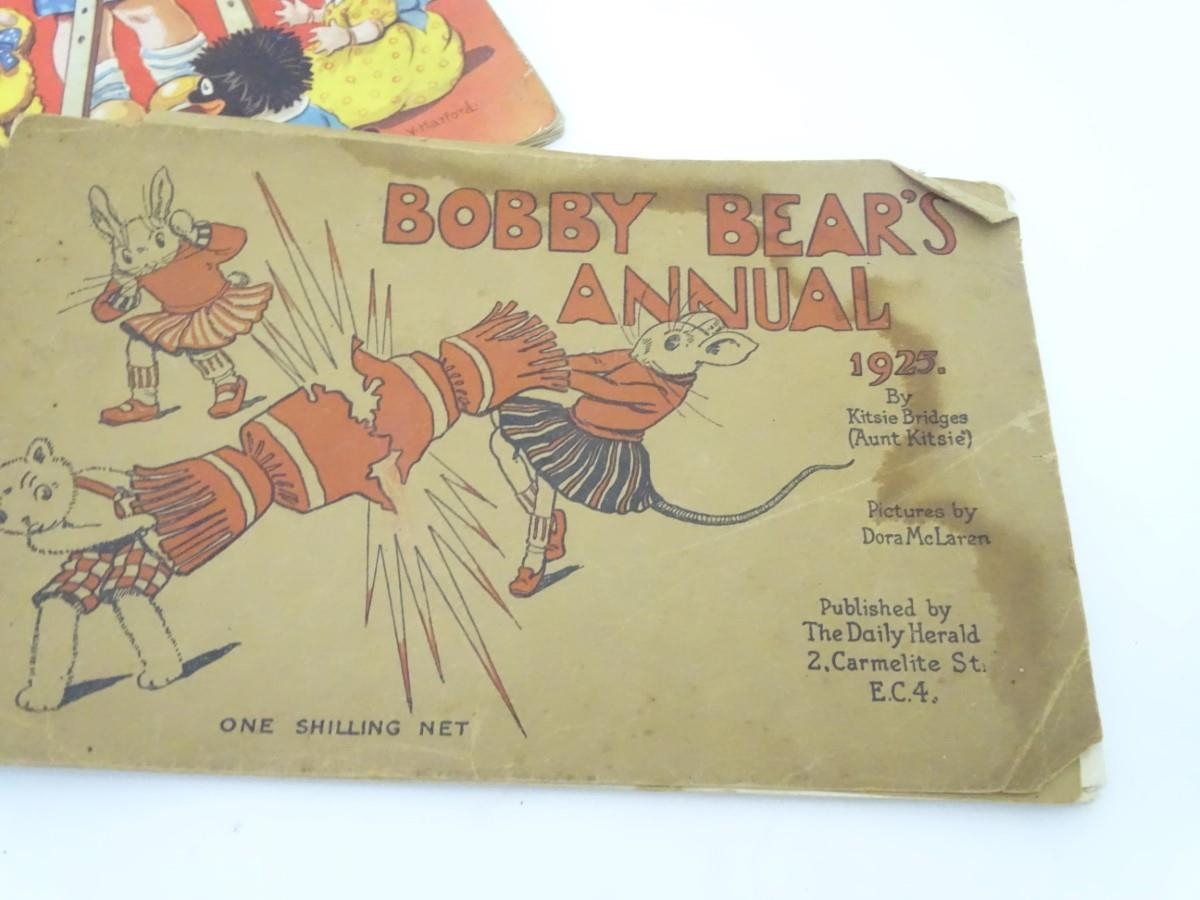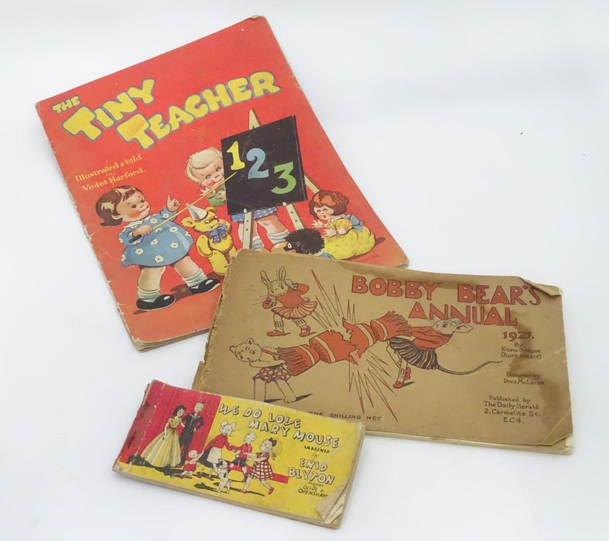 Three early 20thC children's books, Bobby Bears Annual 1925, We Do Love Mary Mouse, by Enid Blyton, and The Tiny Teacher by Violet Harford