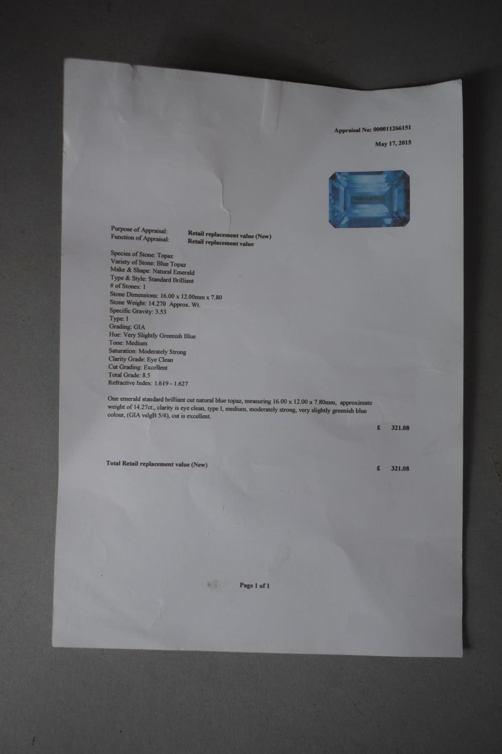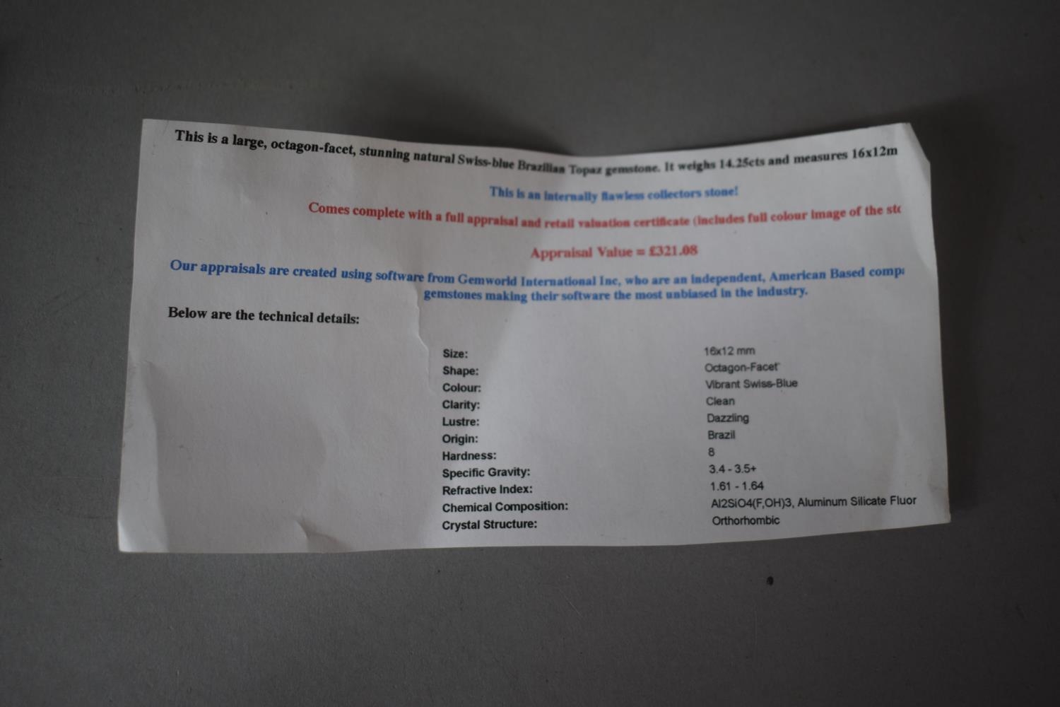 A 16x12mm Octagon Facet Brazilian Blue Topaz, with Appraisal Value of £321.08