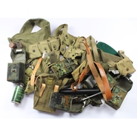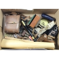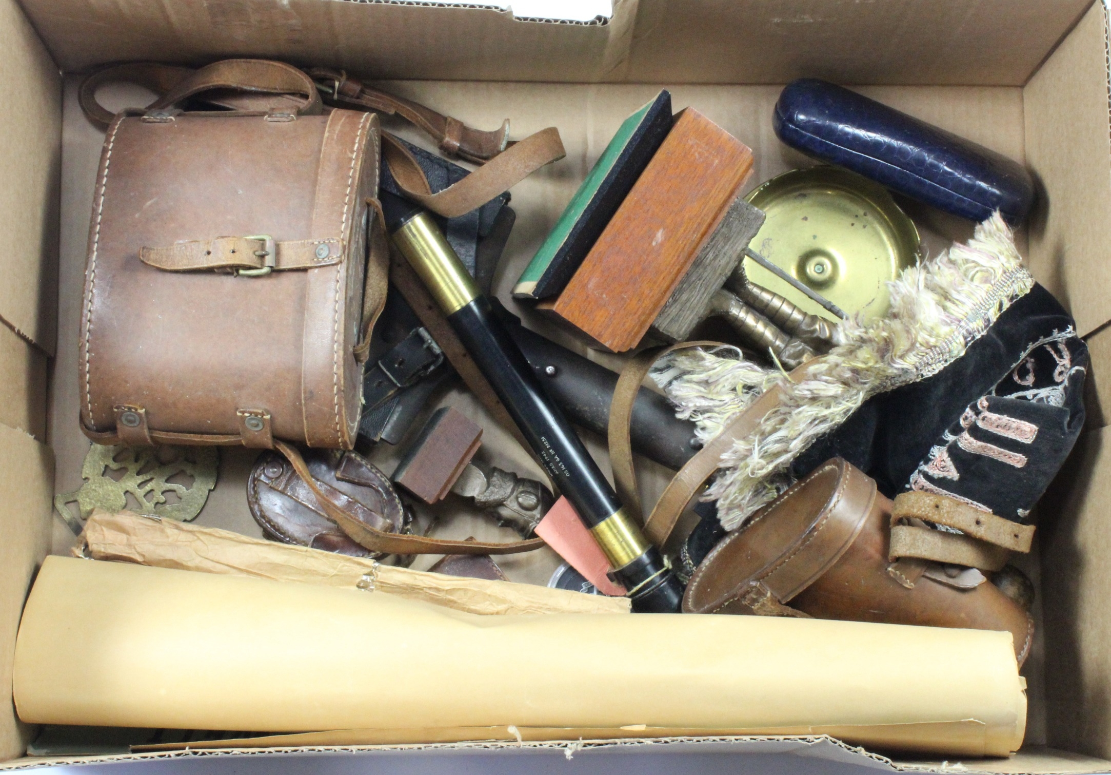Box of mixed Militaria including sunglasses, scope, binoculars, statues, etc (Qty)