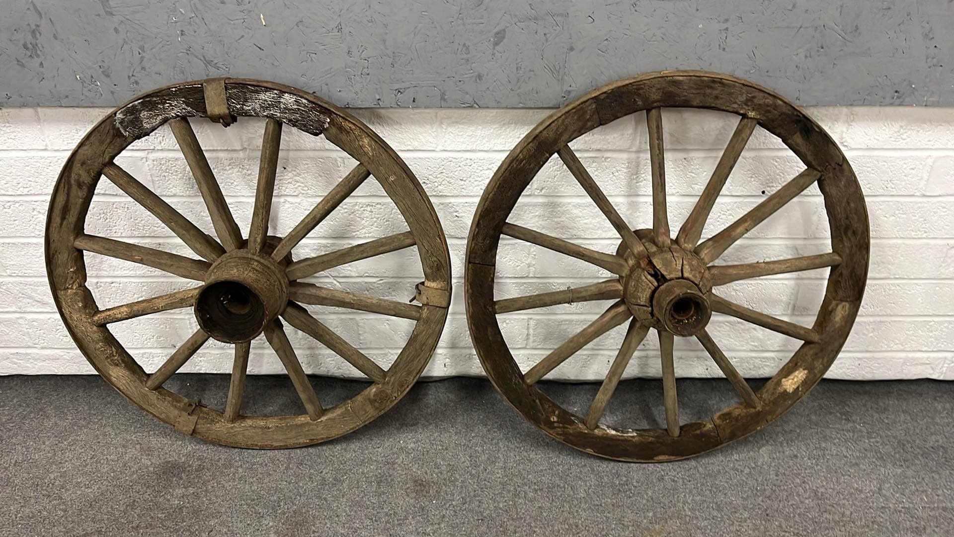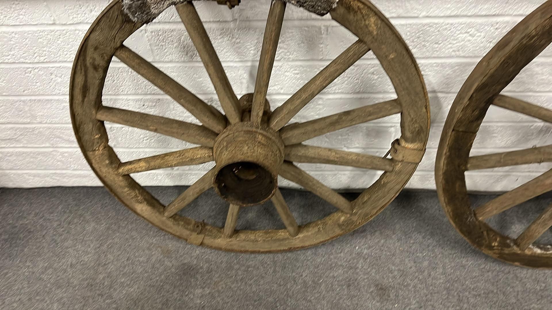 TWO VINTAGE CART WHEELS