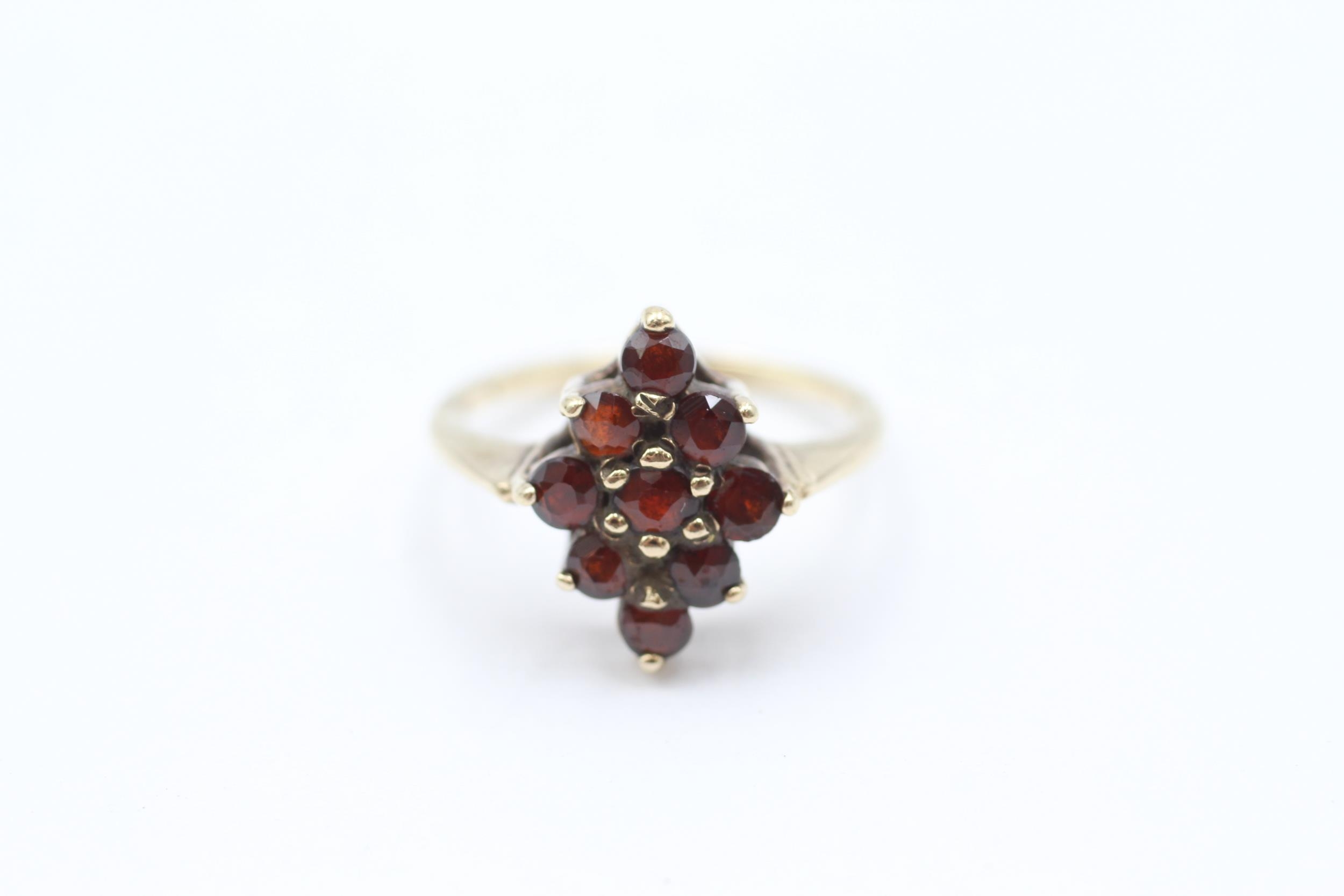 9ct gold garnet marquise shaped cluster ring Size J 2.3 g