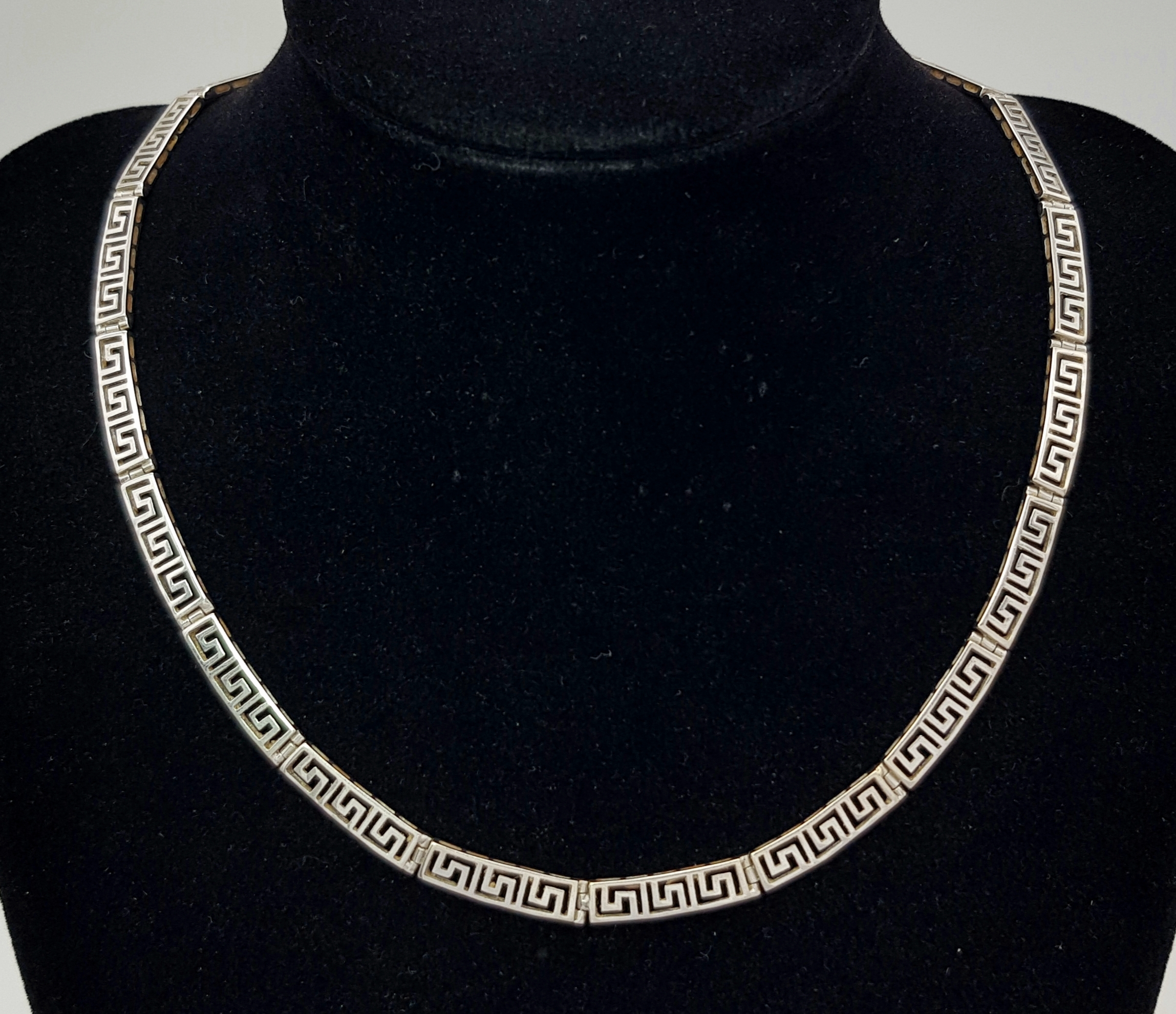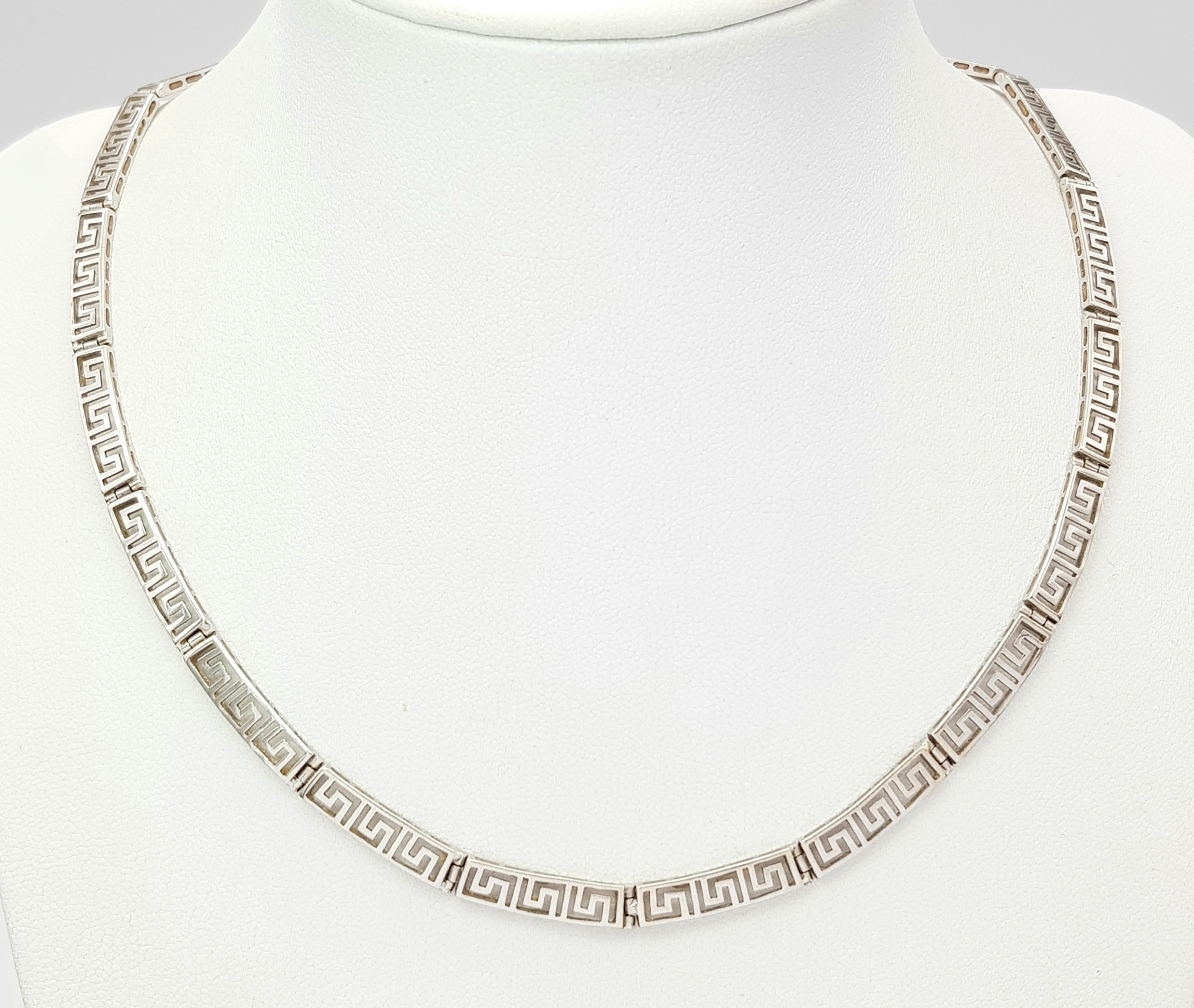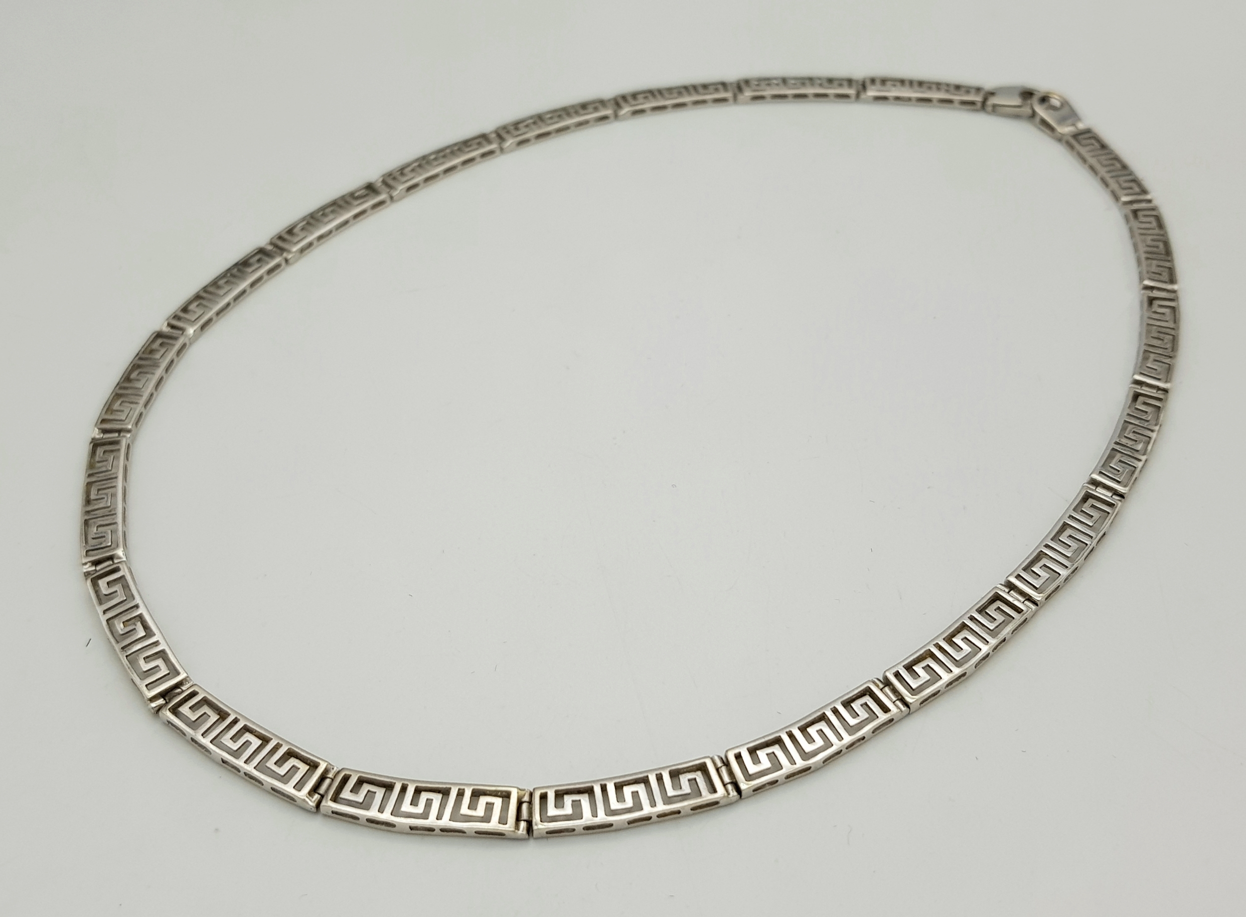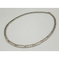 A 14K White Gold Articulated Choker Necklace. Geometric pattern openwork design. 42cm. 14.65g.