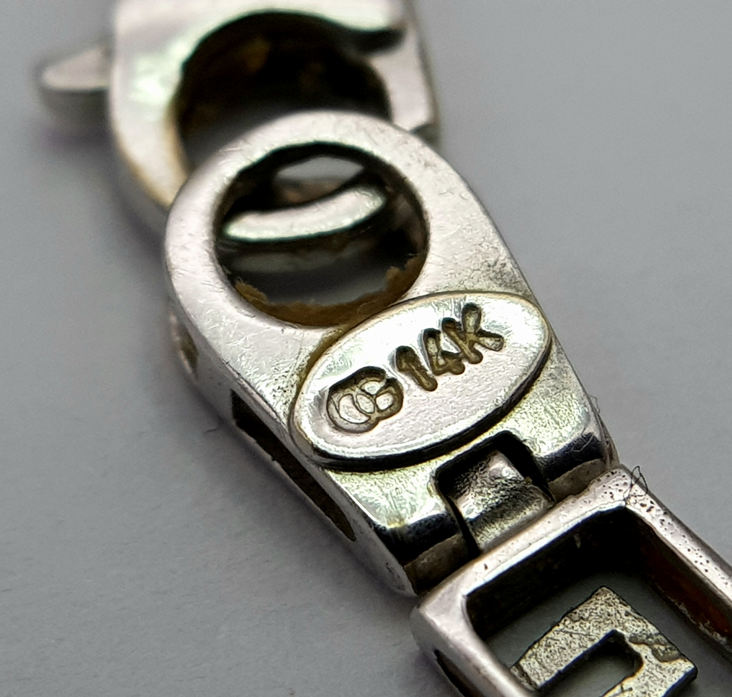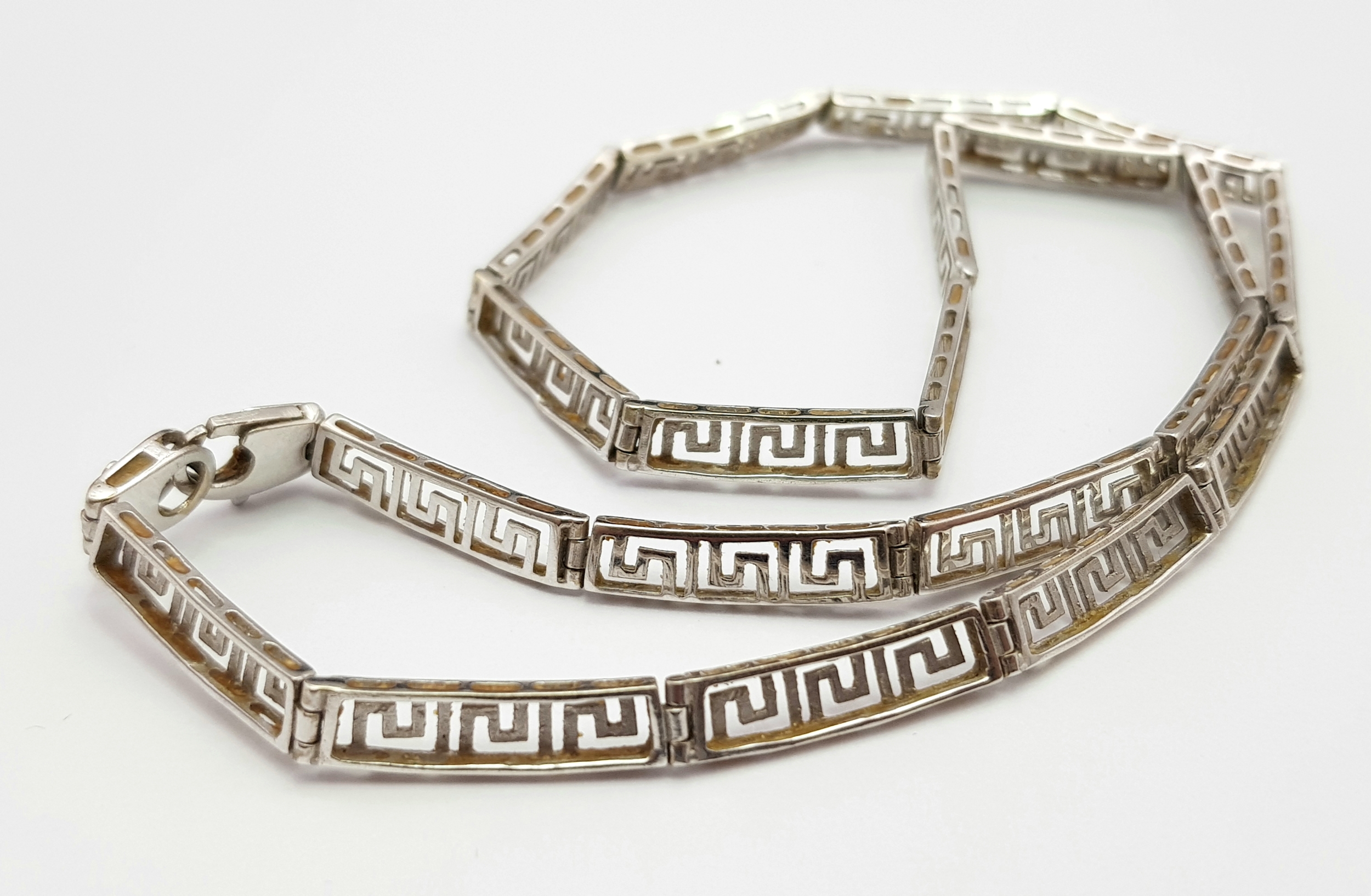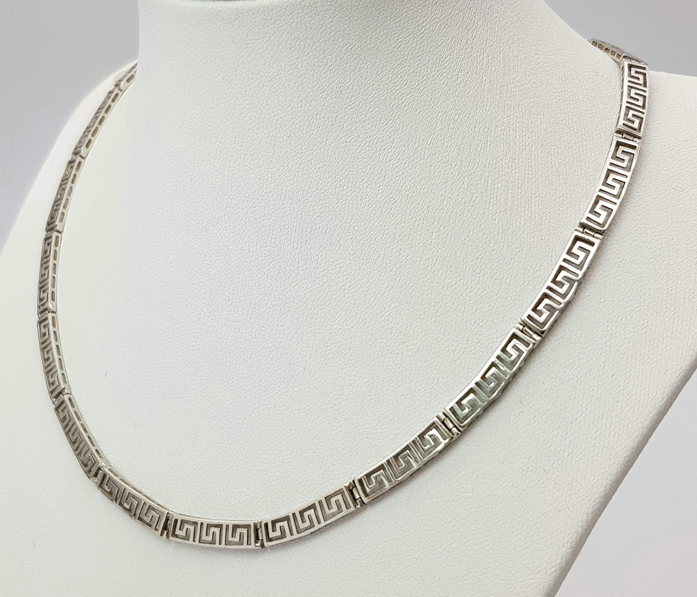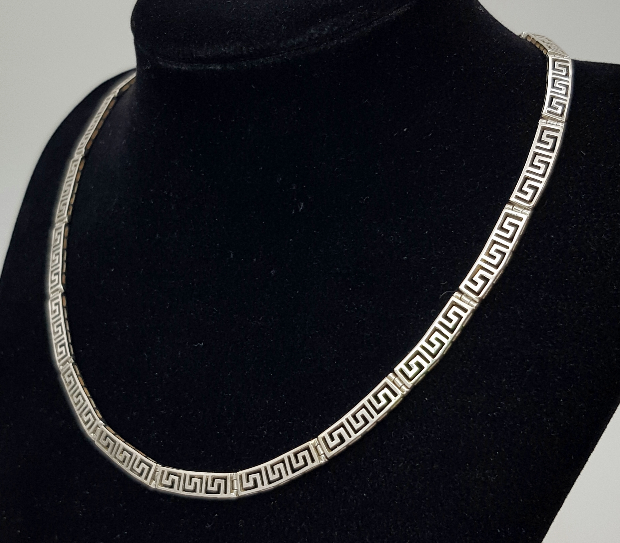 A 14K White Gold Articulated Choker Necklace. Geometric pattern openwork design. 42cm. 14.65g.