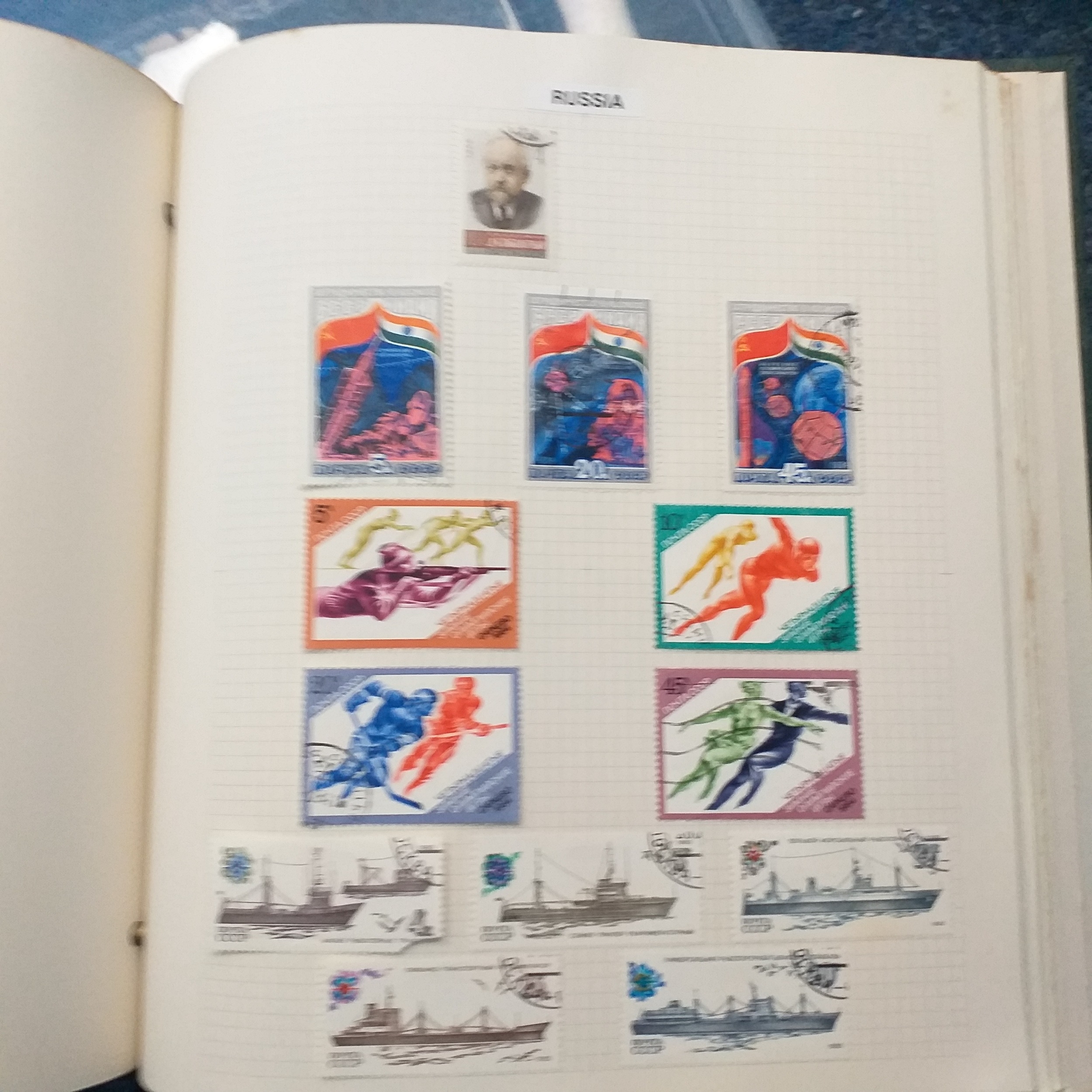 Green Devon Album with Romania and Russia Collection, sime foxing on the odd page but few stamps affected (mainly Russia). Mint/used - Romania to late 1960's and Russia to mid 1980's. Many sets. Needs a sort out.