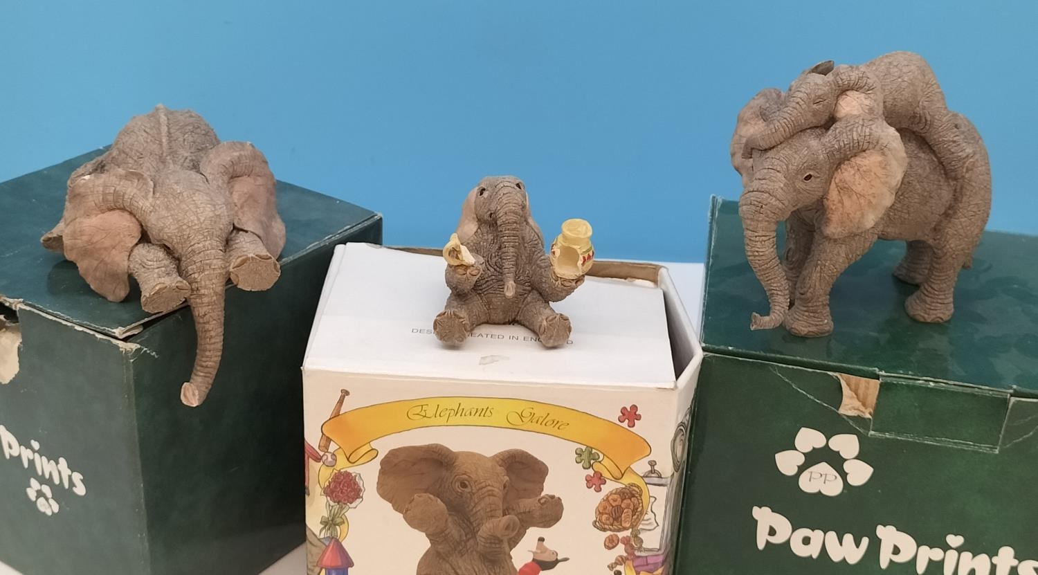 3 x Paw Print Tuskers Figures to include 'Humphrey', 'Tobias & Tich' and 'Nadia'. Tallest 12cm. 2 in Original Boxes.