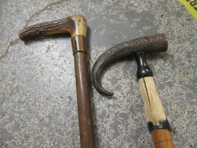 CHAMOIS AND OTHER HORN HANDLED WALKING STICKS