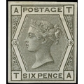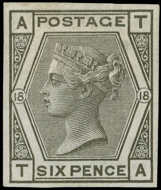1880 6d Grey Pl.18 (Wmk. Spray). Very fine unused o.g. imperforate imprimatur lettered TA. Scarce one of only 22 possible examples in private hands. Plate 18 was never issued on watermark Spray of Rose paper. SG147. Cat. £4200.
