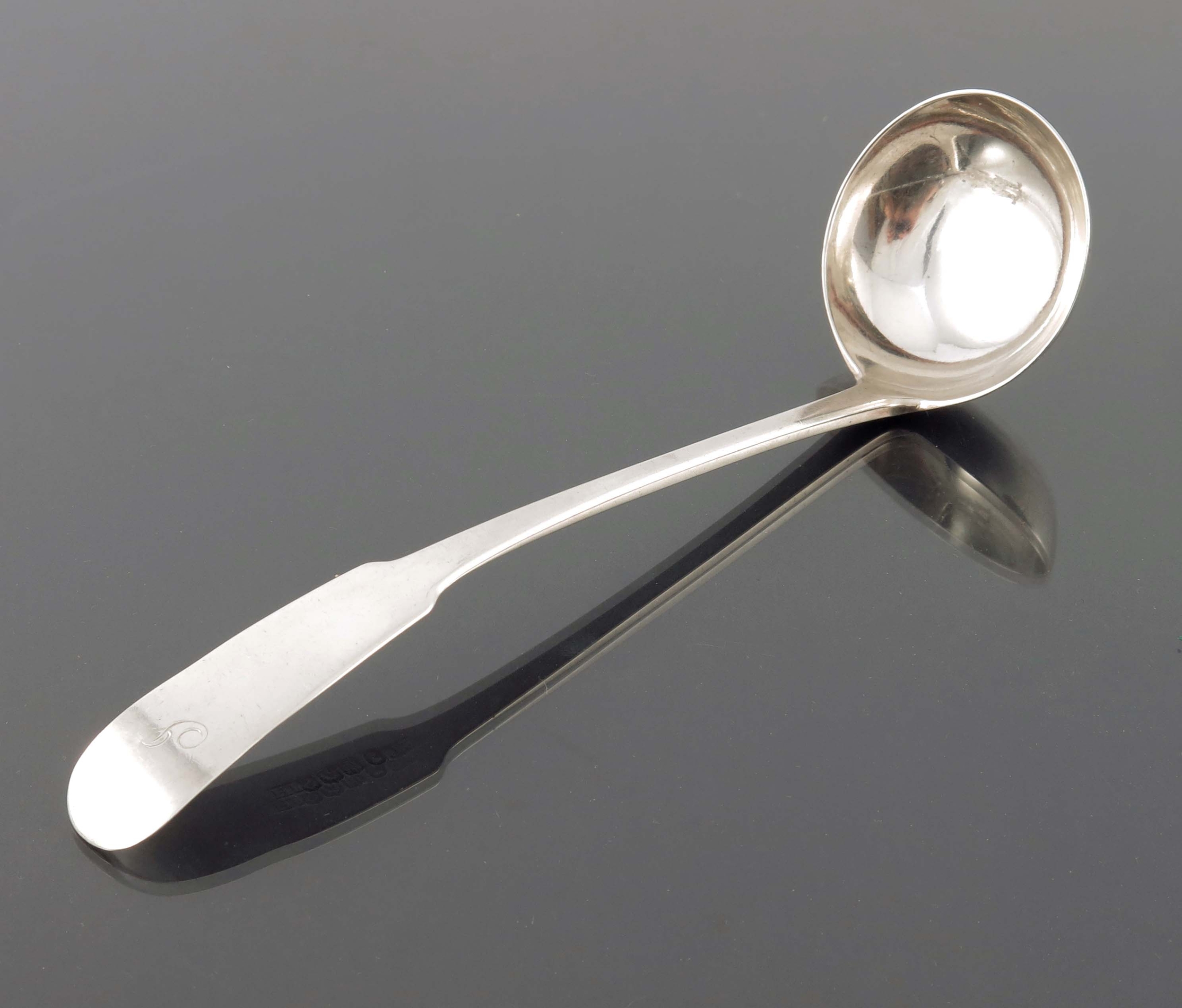A pair of George IV Scottish silver toddy ladles, J Hay with JL, Edinburgh 1824, Fiddle Pattern, 16cm long, 1.66ozt (2)