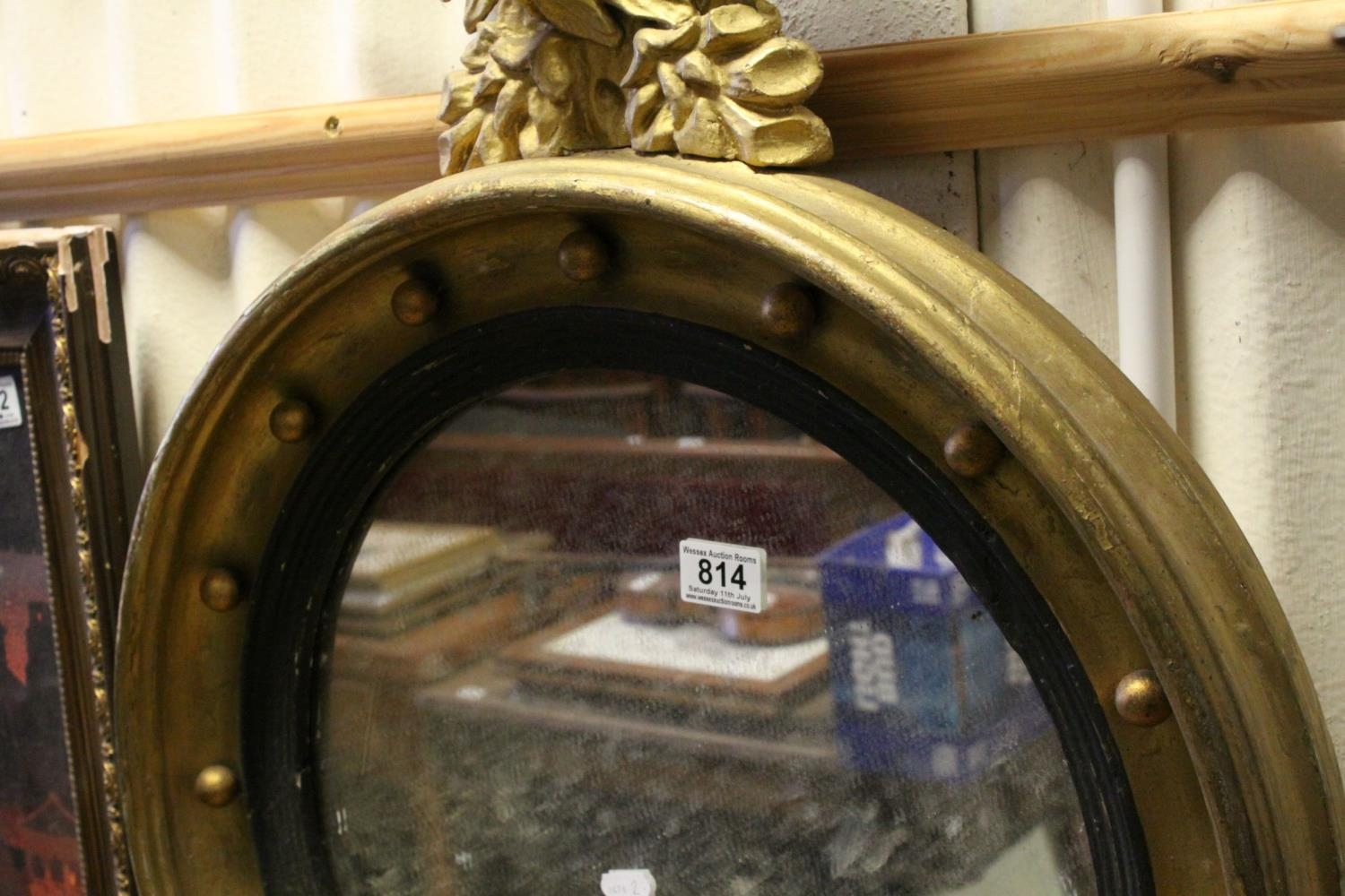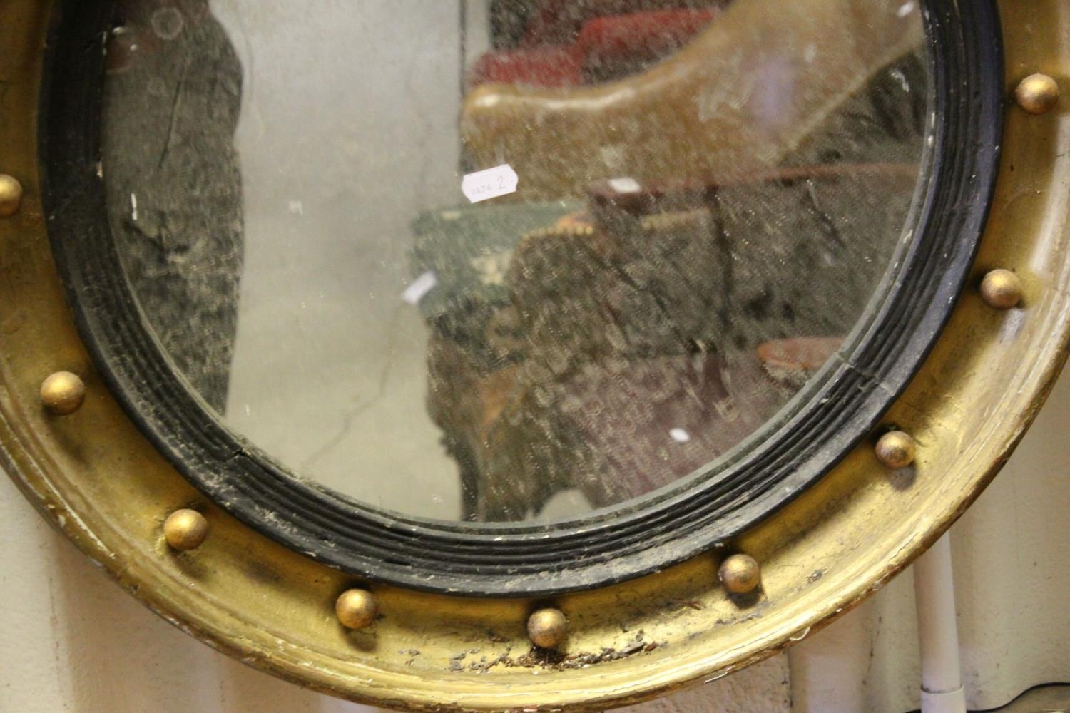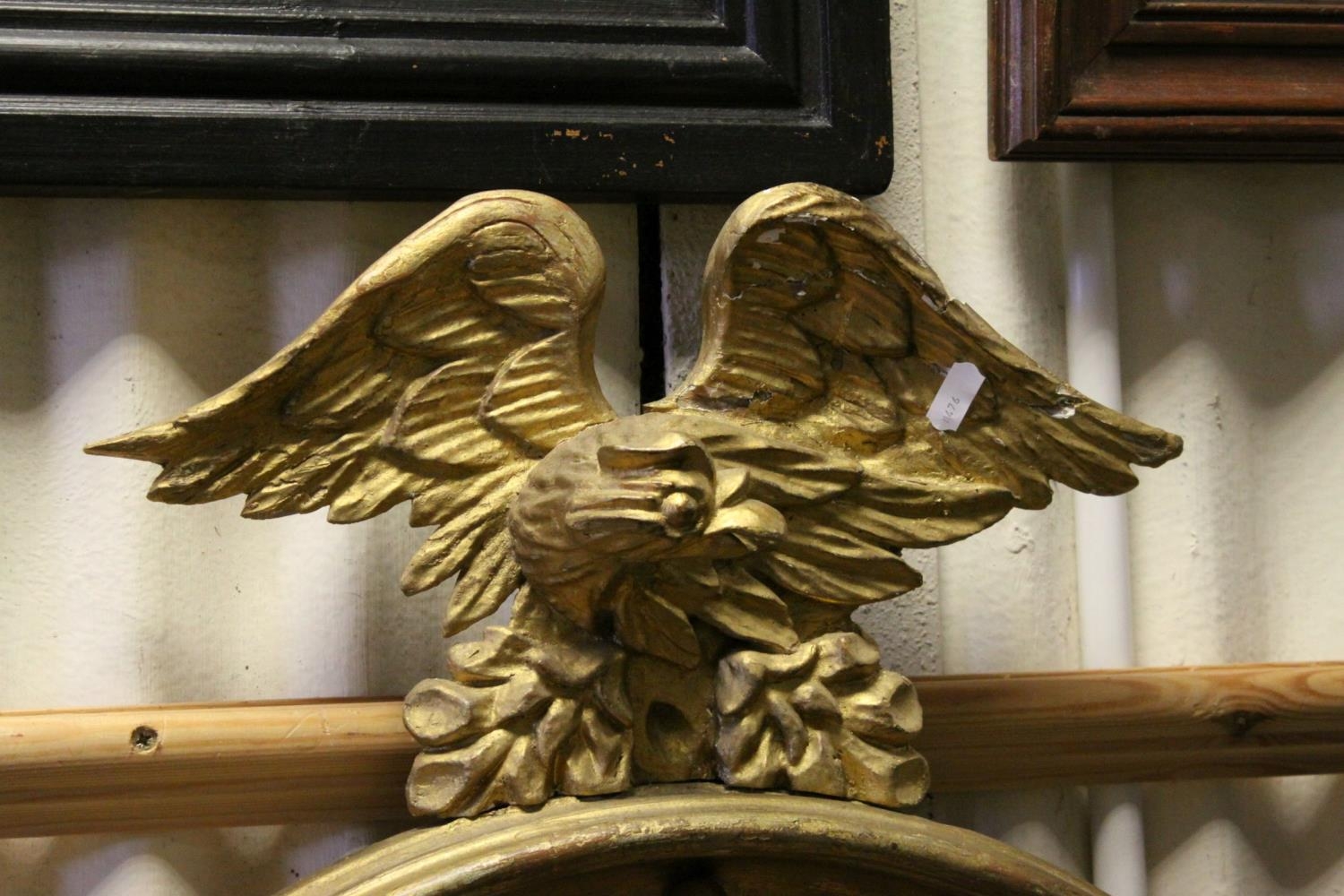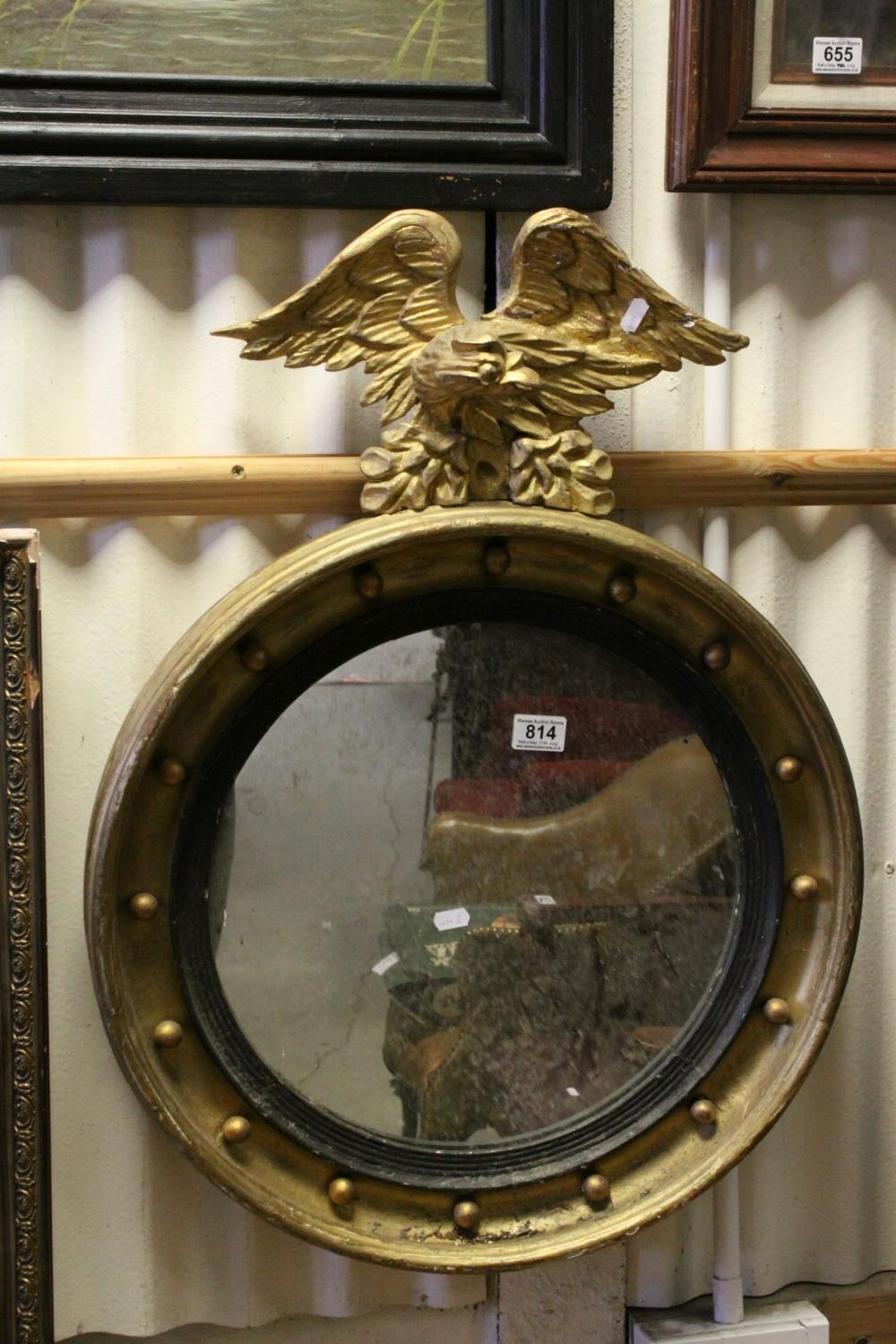 19th century Style Circular Gilt Framed Mirror with applied balls surmounted by an Eagle, 78cms high
