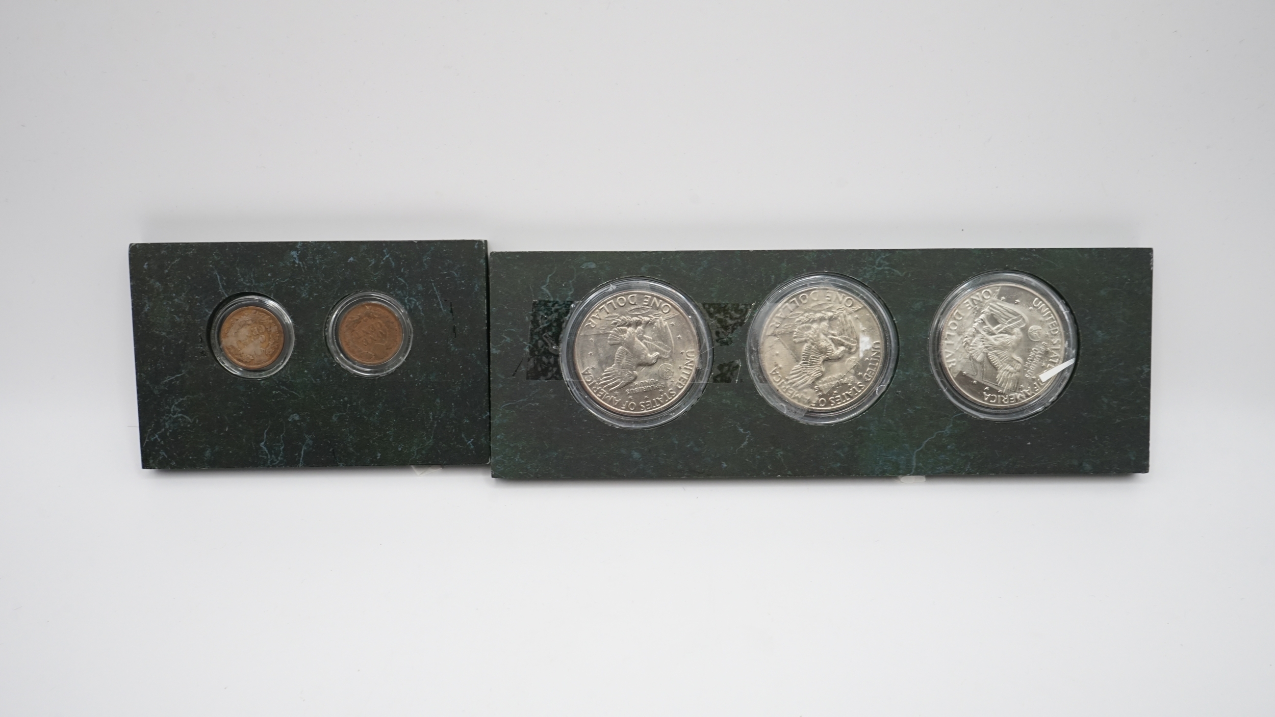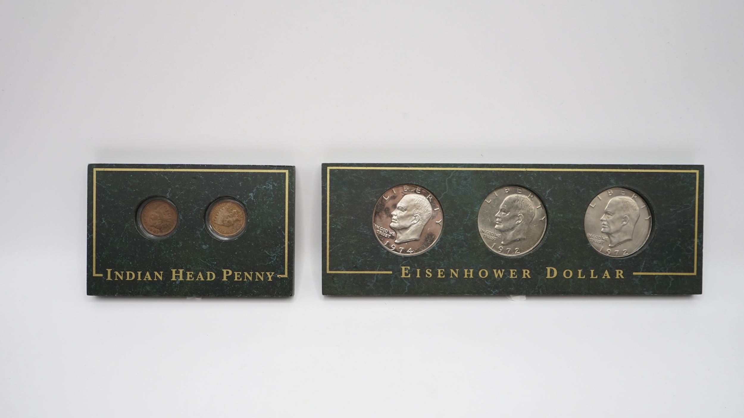 3x Eisenhower Silver Dollars & 2x Indian Head Pennies (One 1902, Other is 1907)
