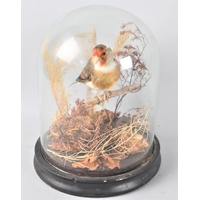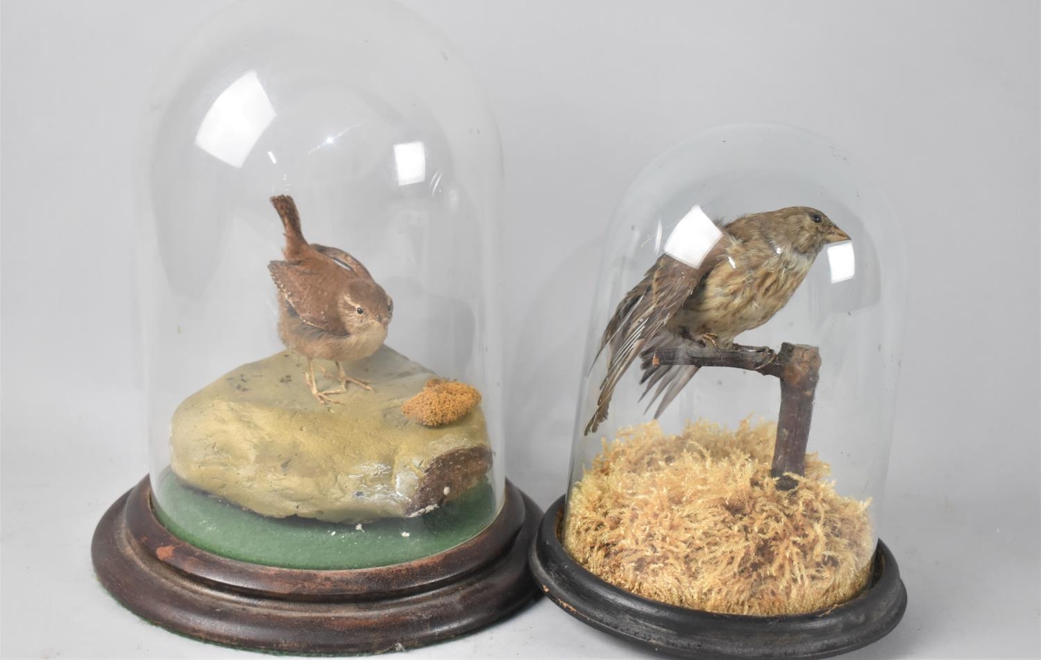 Two Taxidermy Studies of Wren and a Common Linnet, Both Under Glass Domes, Tallest 23cms High