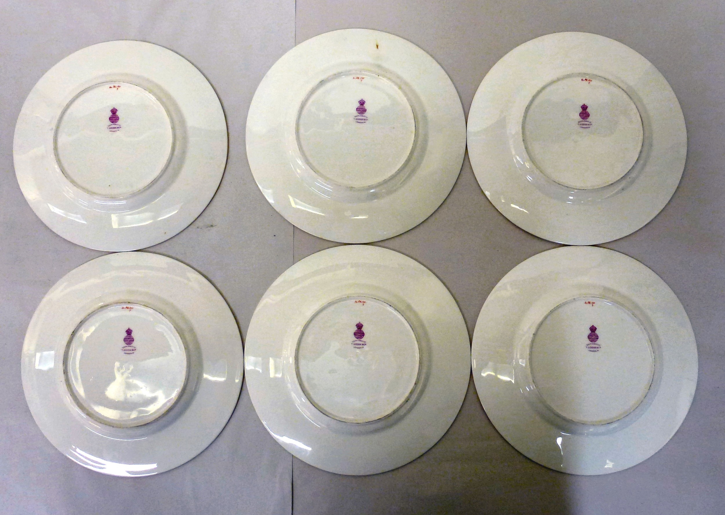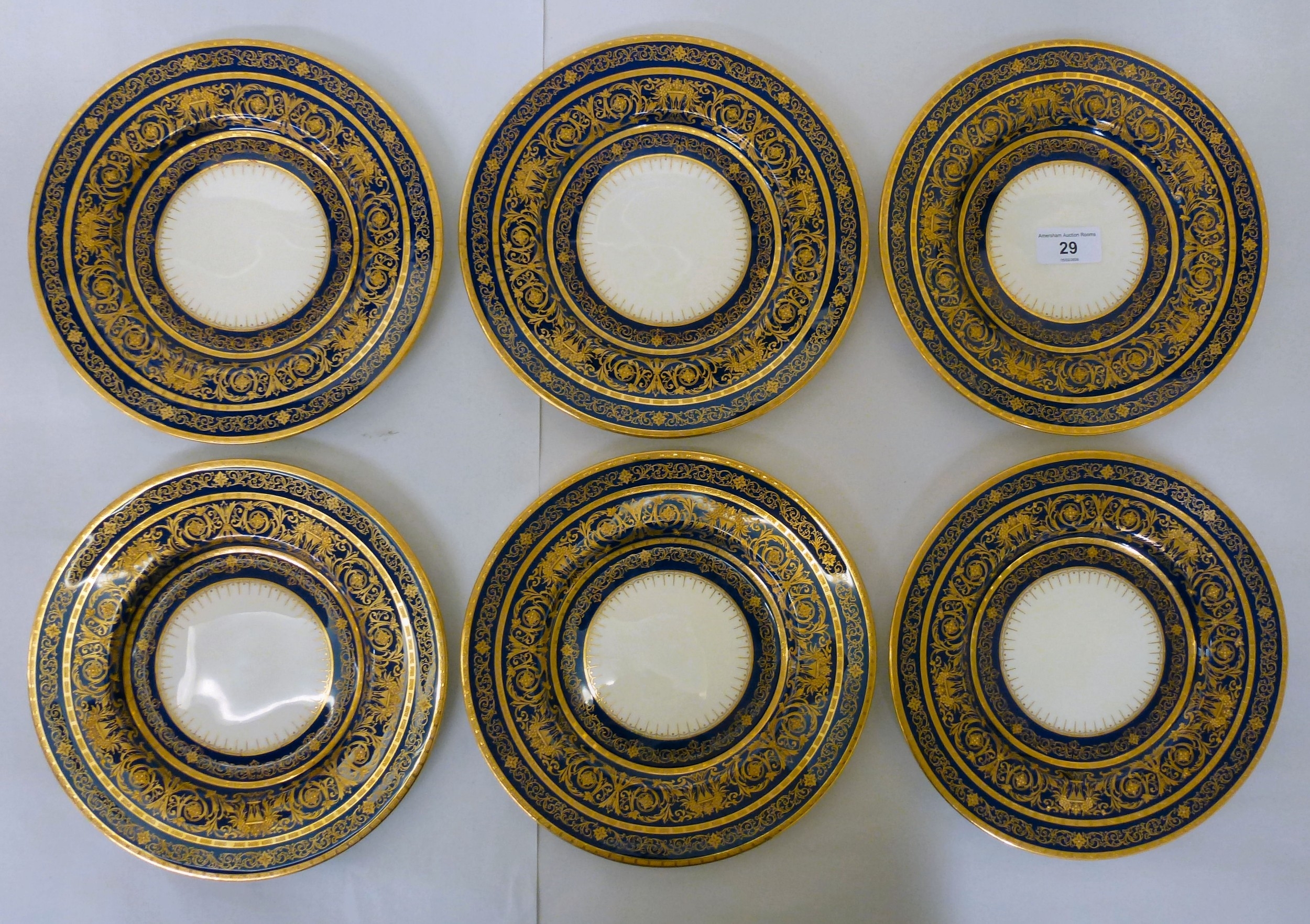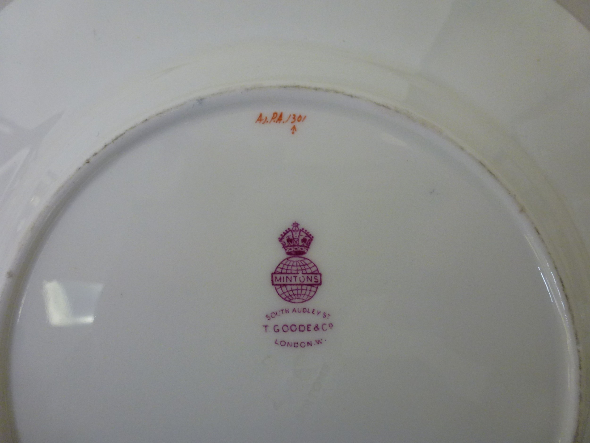 A set of six Minton's china plates produced for T.Goode & Co, decorated in blue with gilt highlights 9"dia