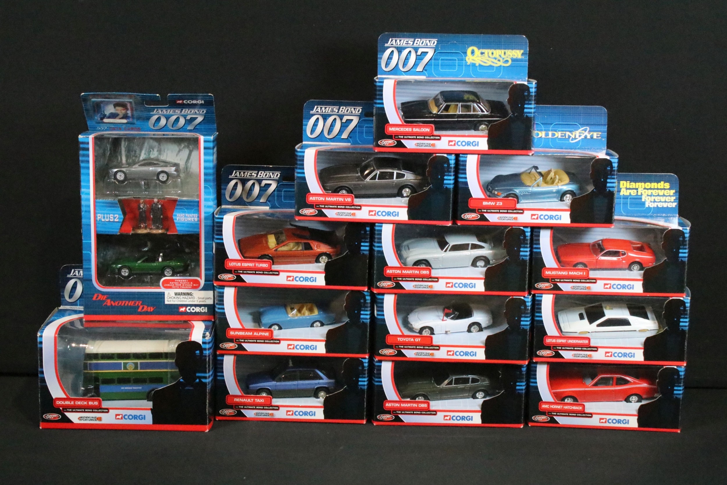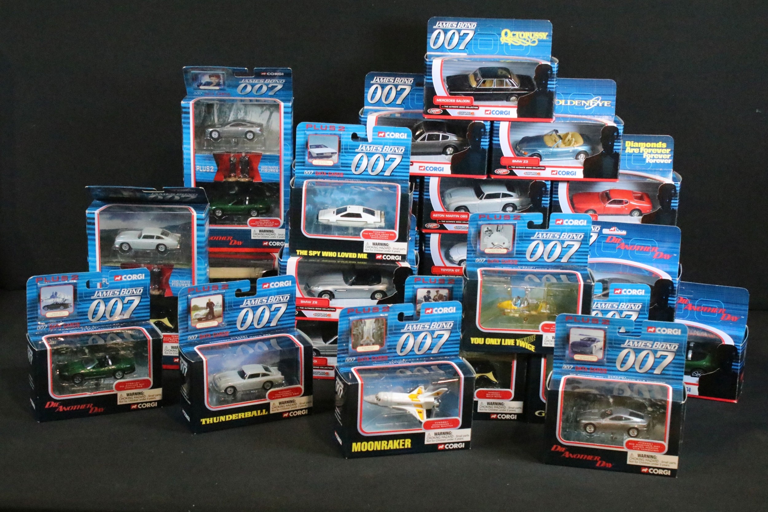 28 Boxed Corgi James Bond 007 diecast models to include 40th Anniversary The Ultimate Bond Collection examples including TY06102 Double Deck Bus, TY95701 The Spy Who Loved Me Lotus Esprit Underwater, TY07501 Aston Martin Vanquish, TY95902 Aston Martin DB5 & Rolls-Royce 2-Piece Set, etc, all ex overall