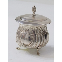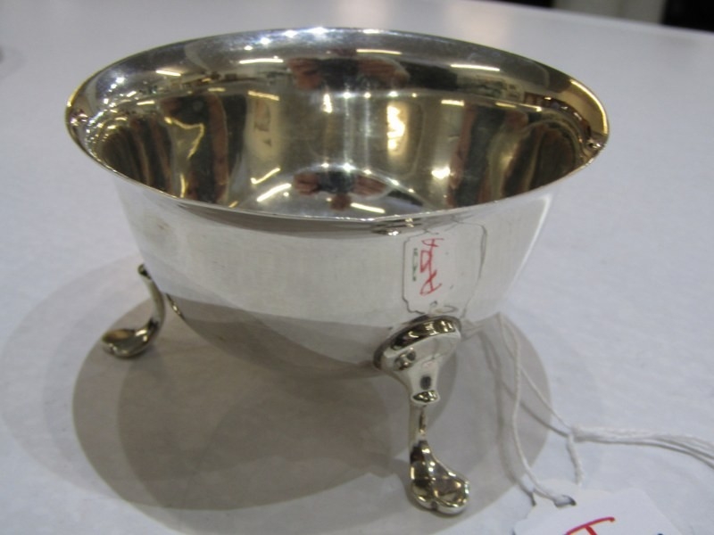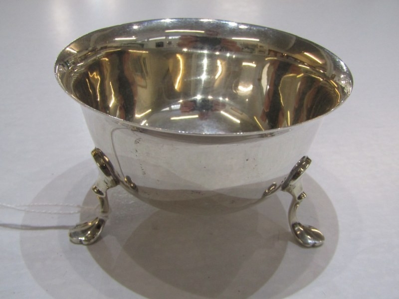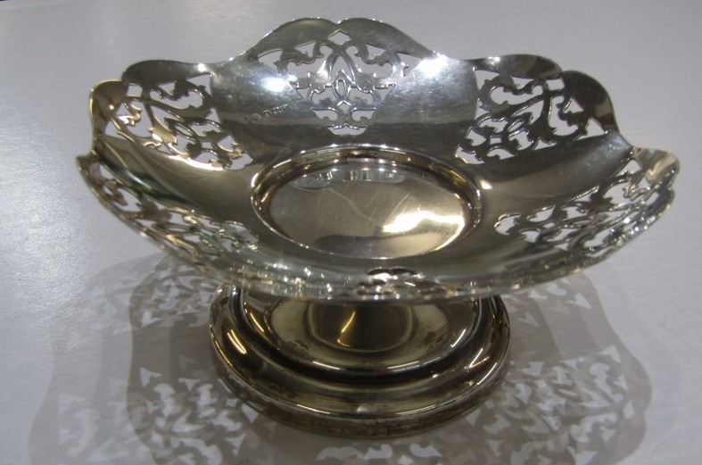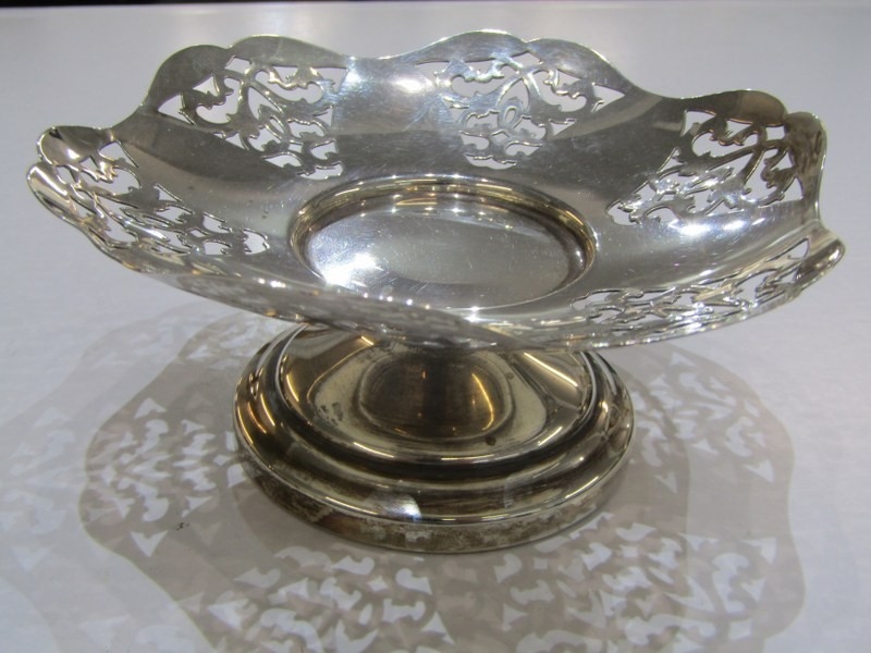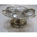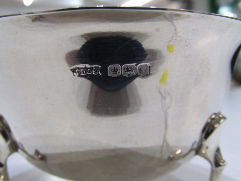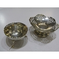 SILVER COMPORT with pierced decoration, Birmingham HM, also a silver sugar bowl on 3 hoof feet, makers JD&S Sheffield, 145 grams