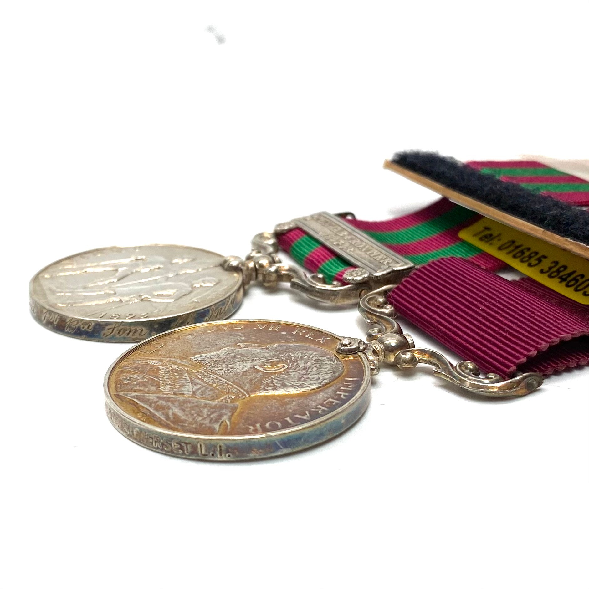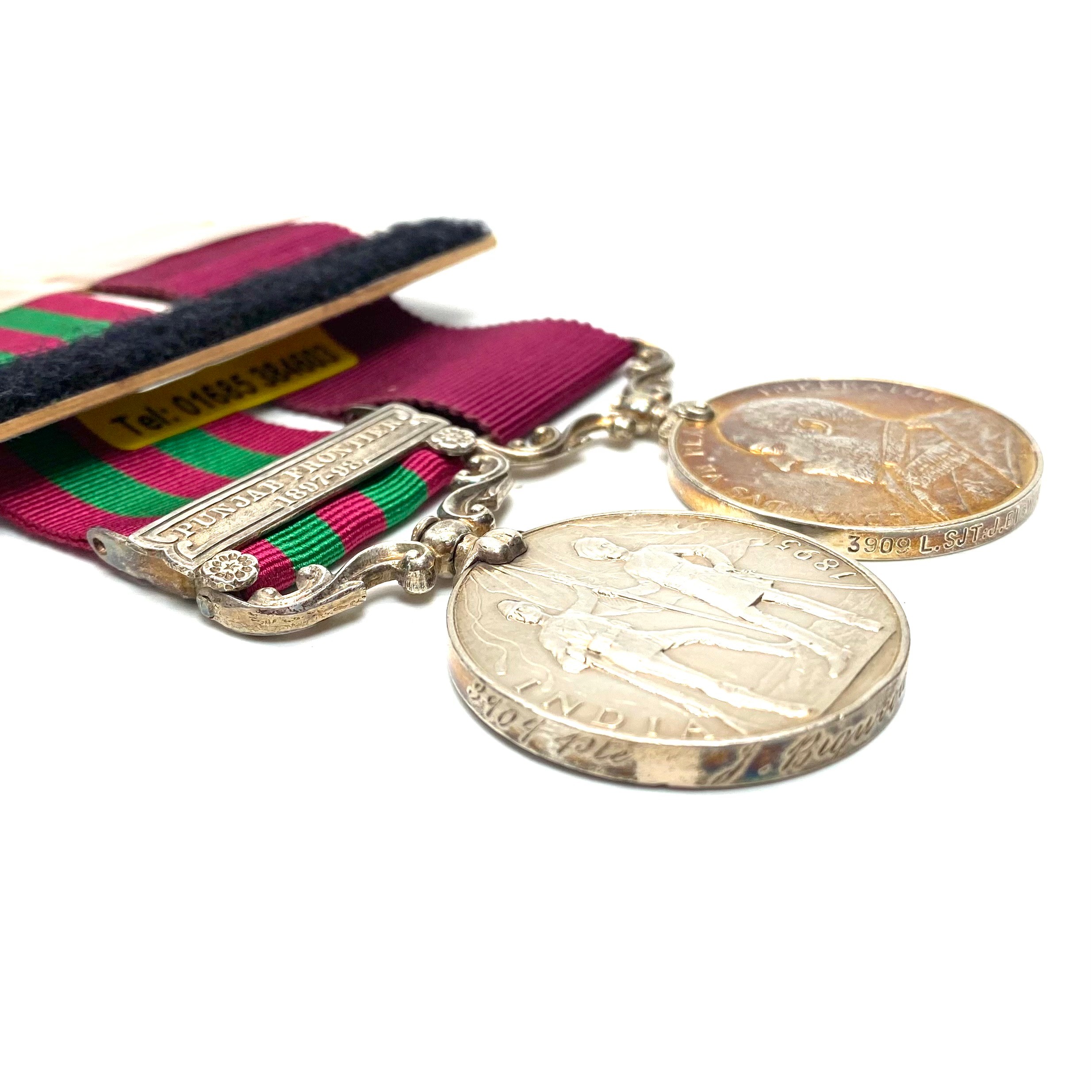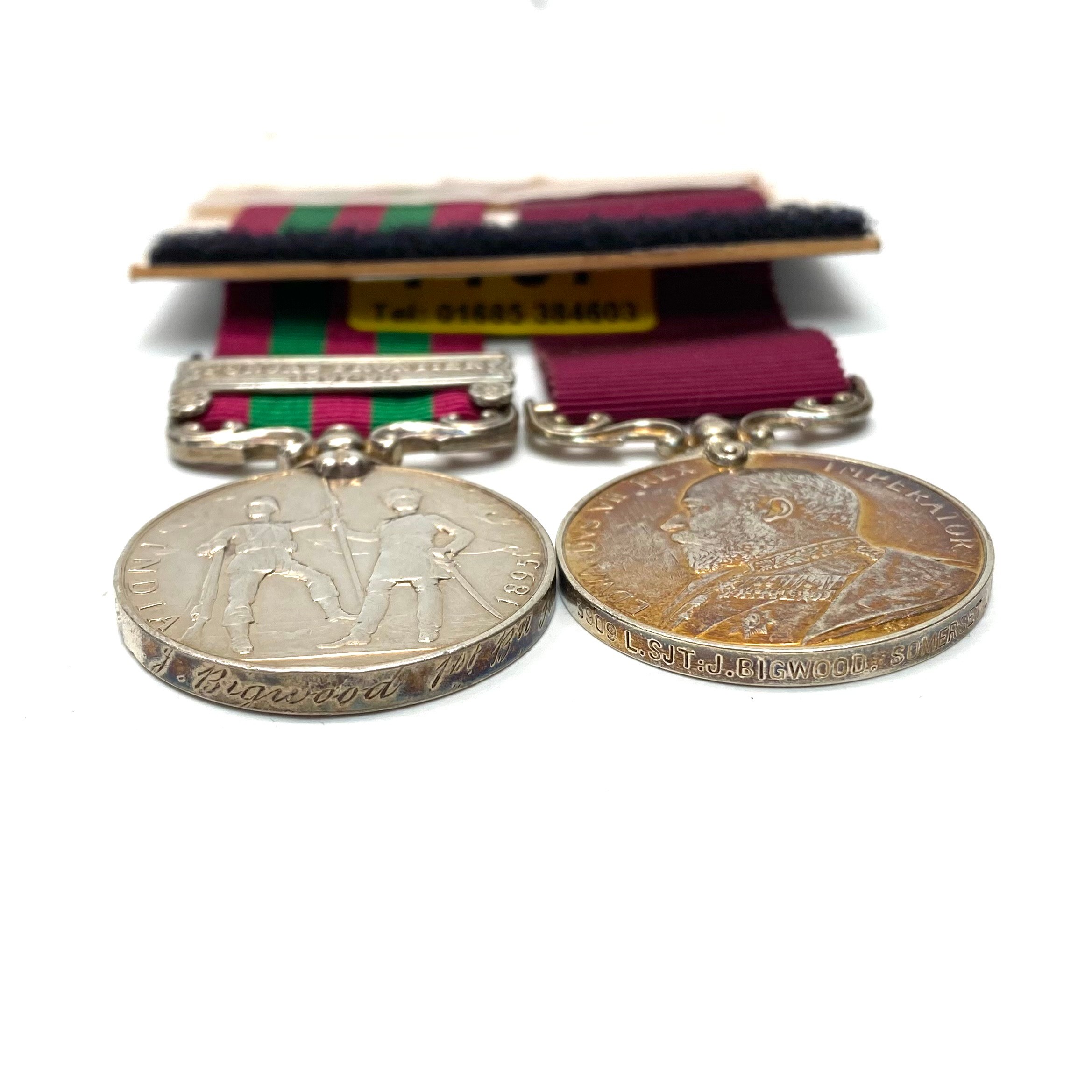 The India General Service Medal 1895, with Punjab Frontier (1897-98) clasp and Army long service and good conduct medal Edward VII 1902-10 awarded to 3909 LSjt J Bigwood Somerset Light Infantry.
