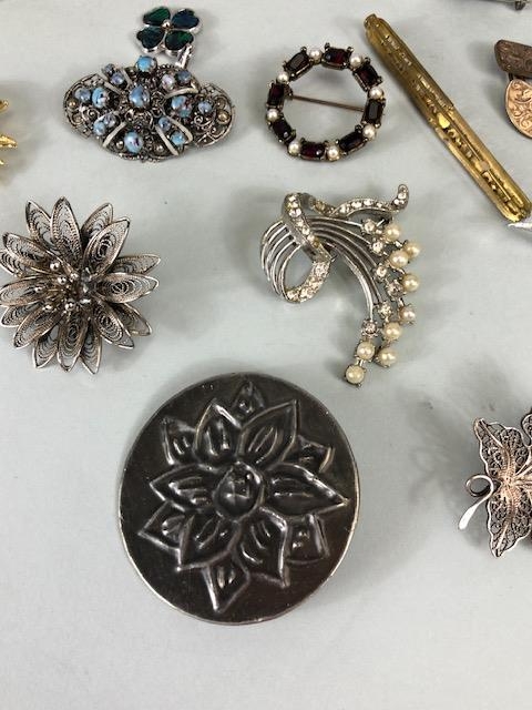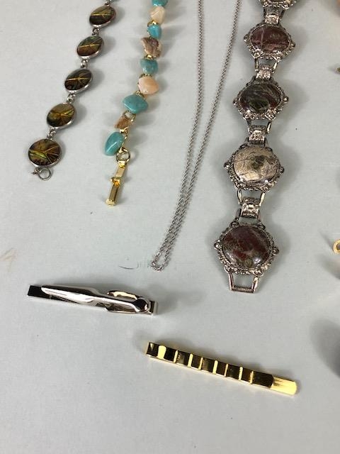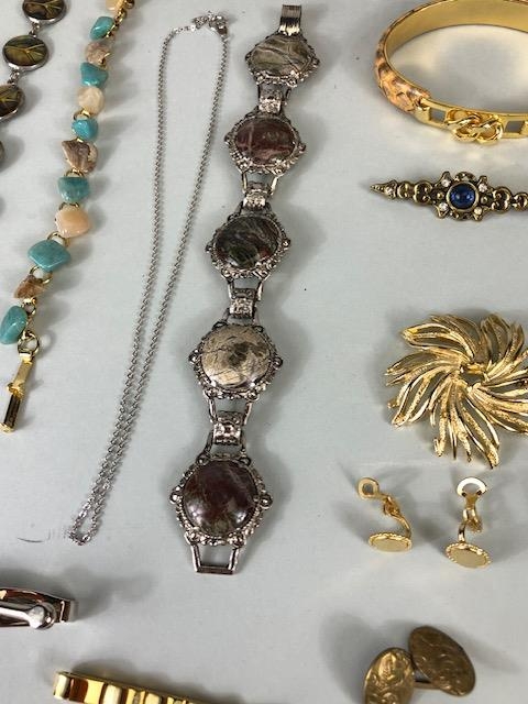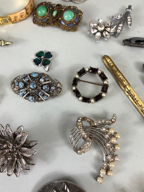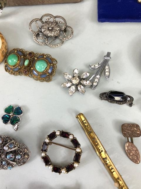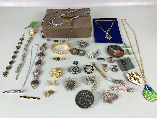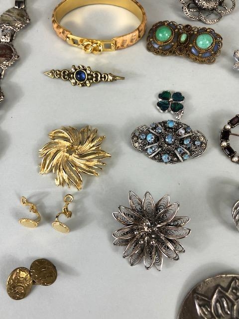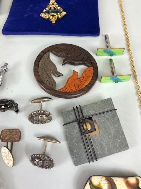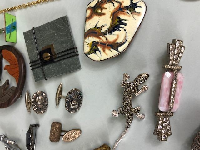 Costume Jewellery, collection of antique and vintage items to include Victorian, Edwardian, Mid century items, brooches, pendants, cuff links, bangles, tie clips, etc