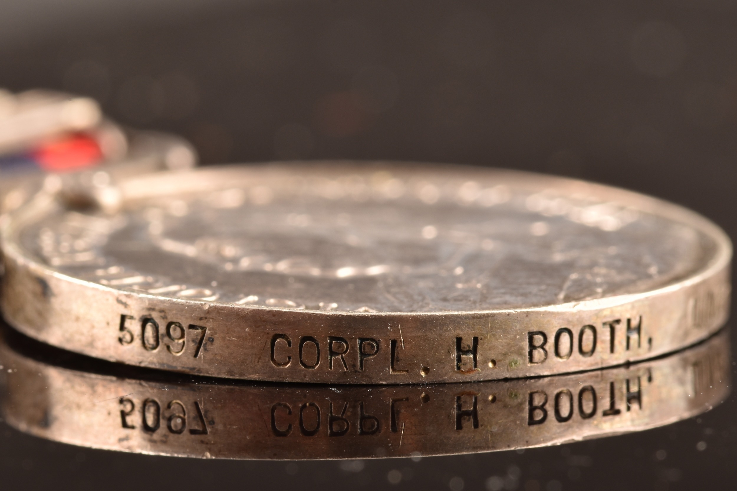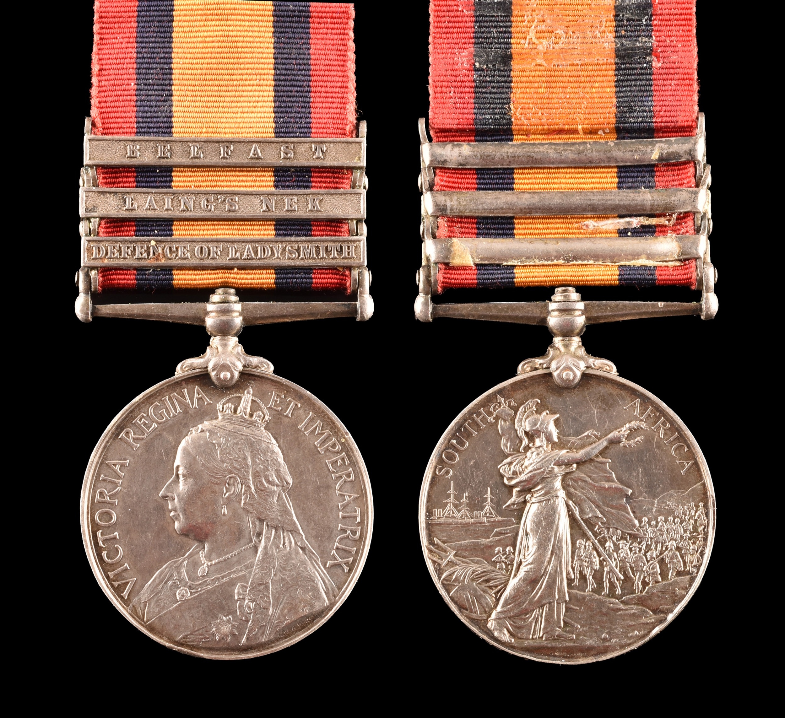 A Boer War QSA Queen’s South Africa medal with 3 clasps Defence of Ladysmith, Laing's Nek, Belfast, awarded to: 5097 Corporal H. Booth, Liverpool Regiment (5097 Corpl. H. Booth, Liverpool Regt).