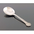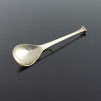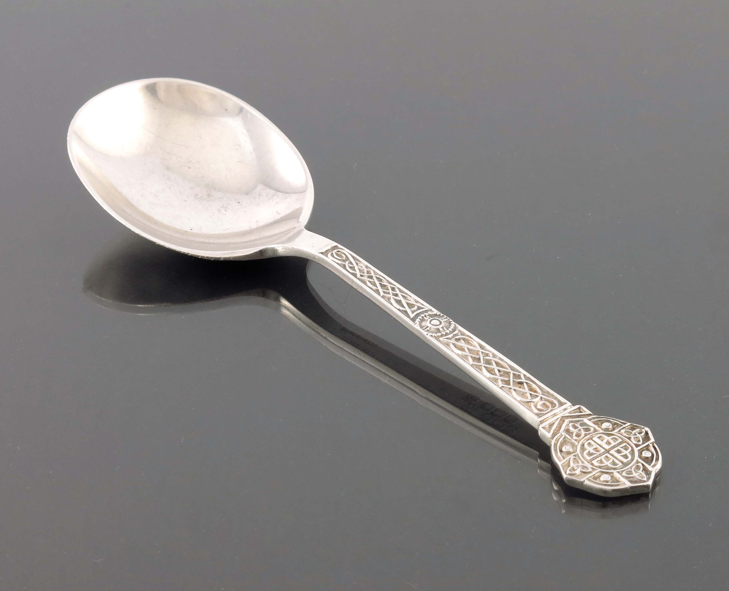 A Celtic Iona style silver caddy or jam spoon, Cooper Brothers and Sons, Sheffield 1966, cast with a Celtic Cross handle, 12.5cm long, 0.78ozt