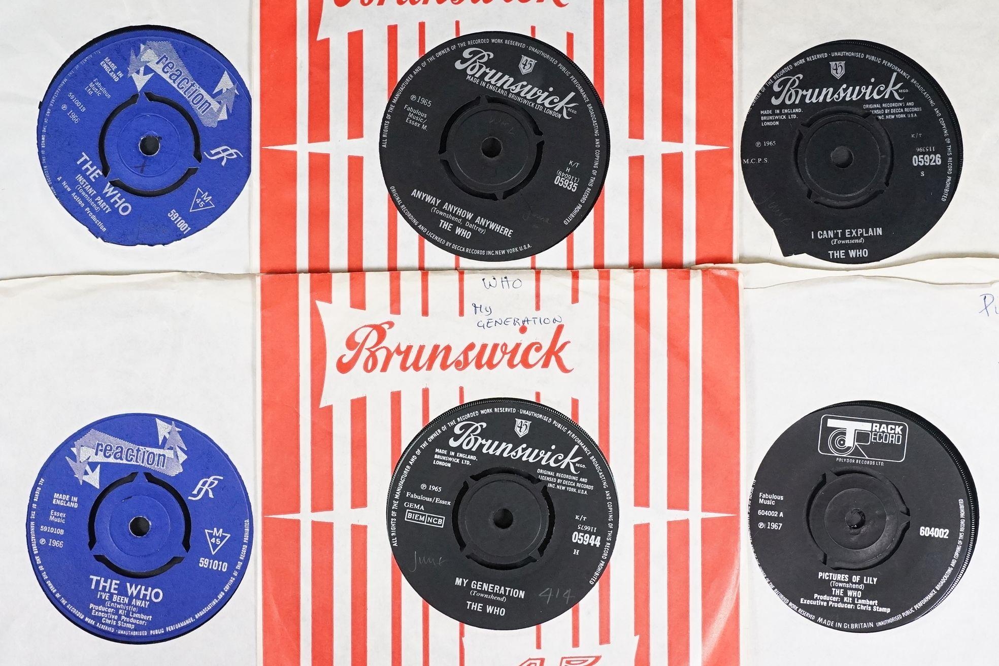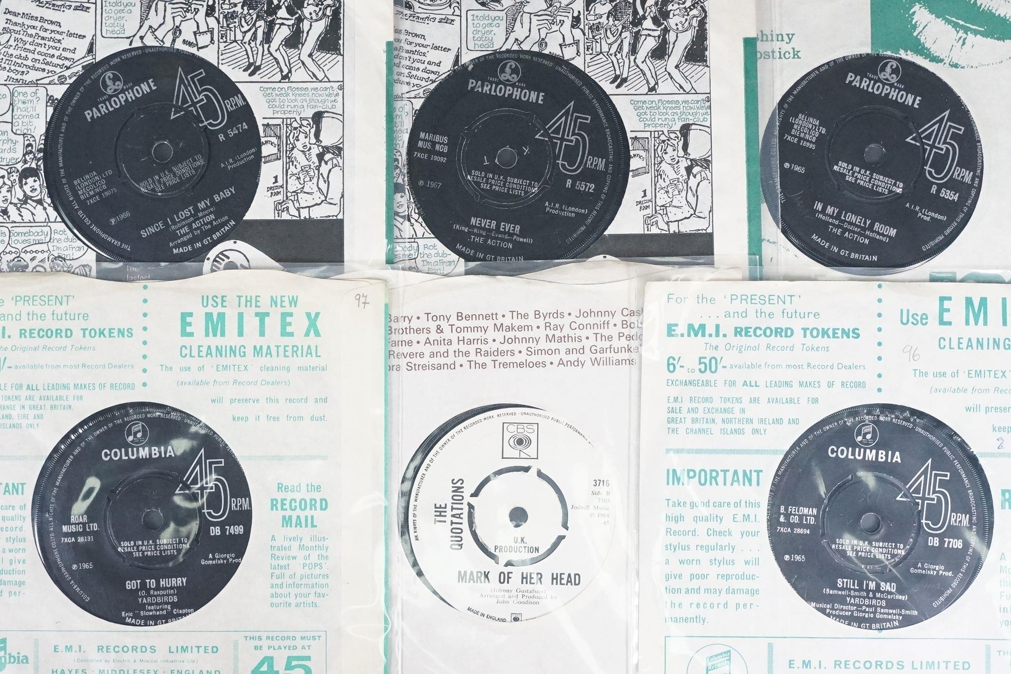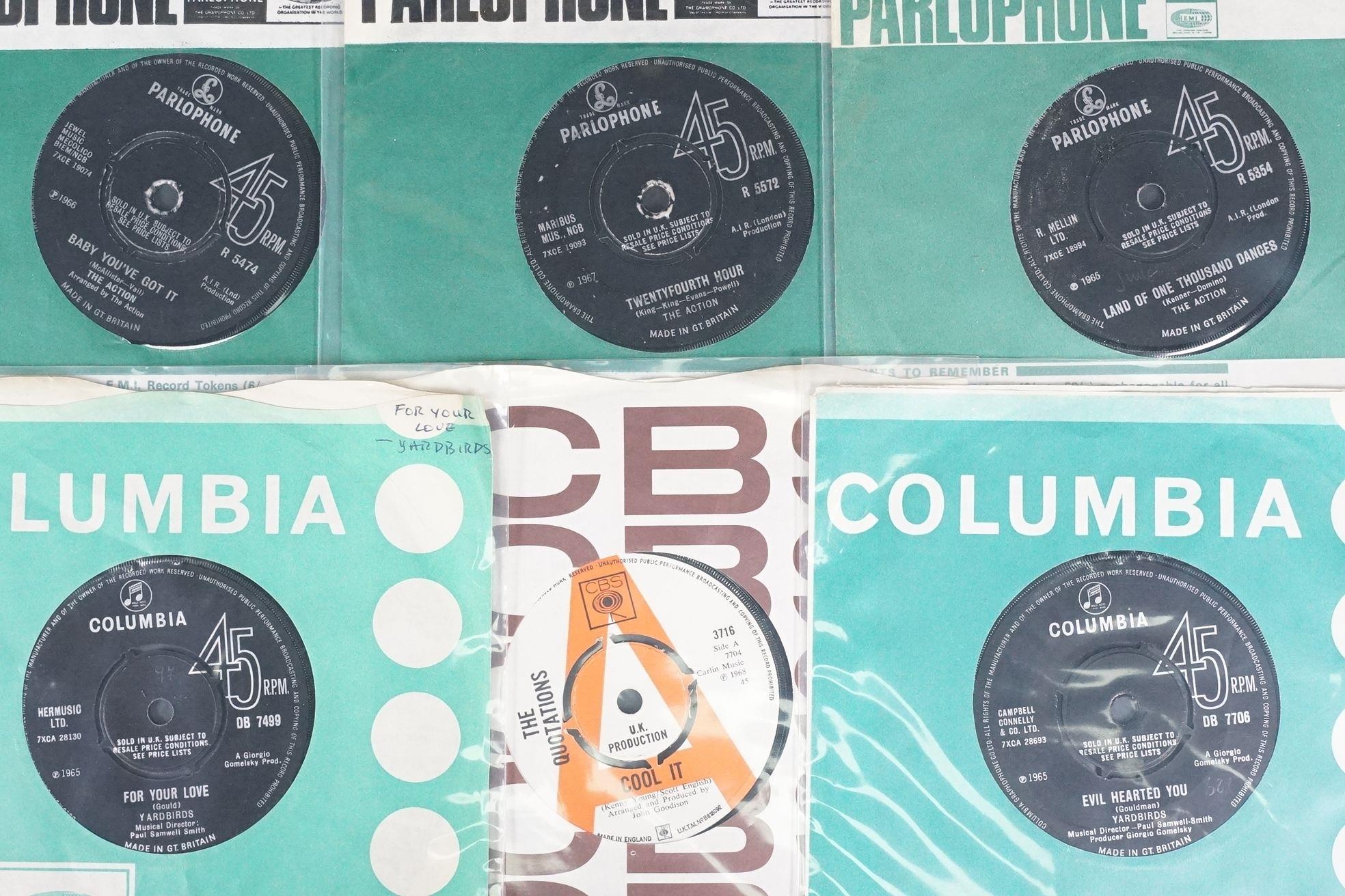 Vinyl - 13 original UK 1st pressing Mod 7” singles to include: The Action x 3 (R 5354, R 5474, R 5572), The Quotations ( CBS 3716 demo promo), The Yardbirds x 2, The Who x 7. Condition VG+ overall (with name written in pencil on labels).