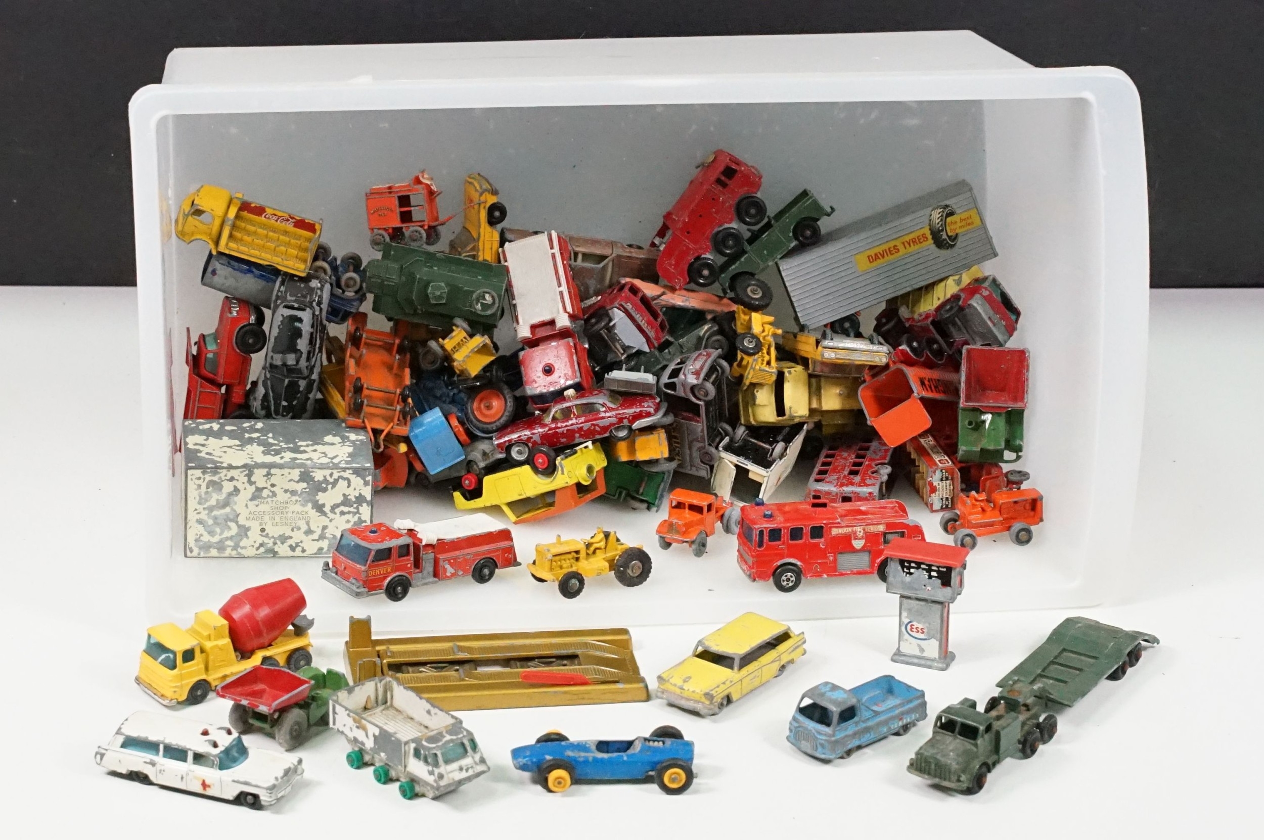 Collection of play worn mid 20th C mainly Matchbox Lesney diecast models to include Shop Accessory Pack etc