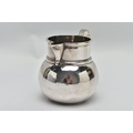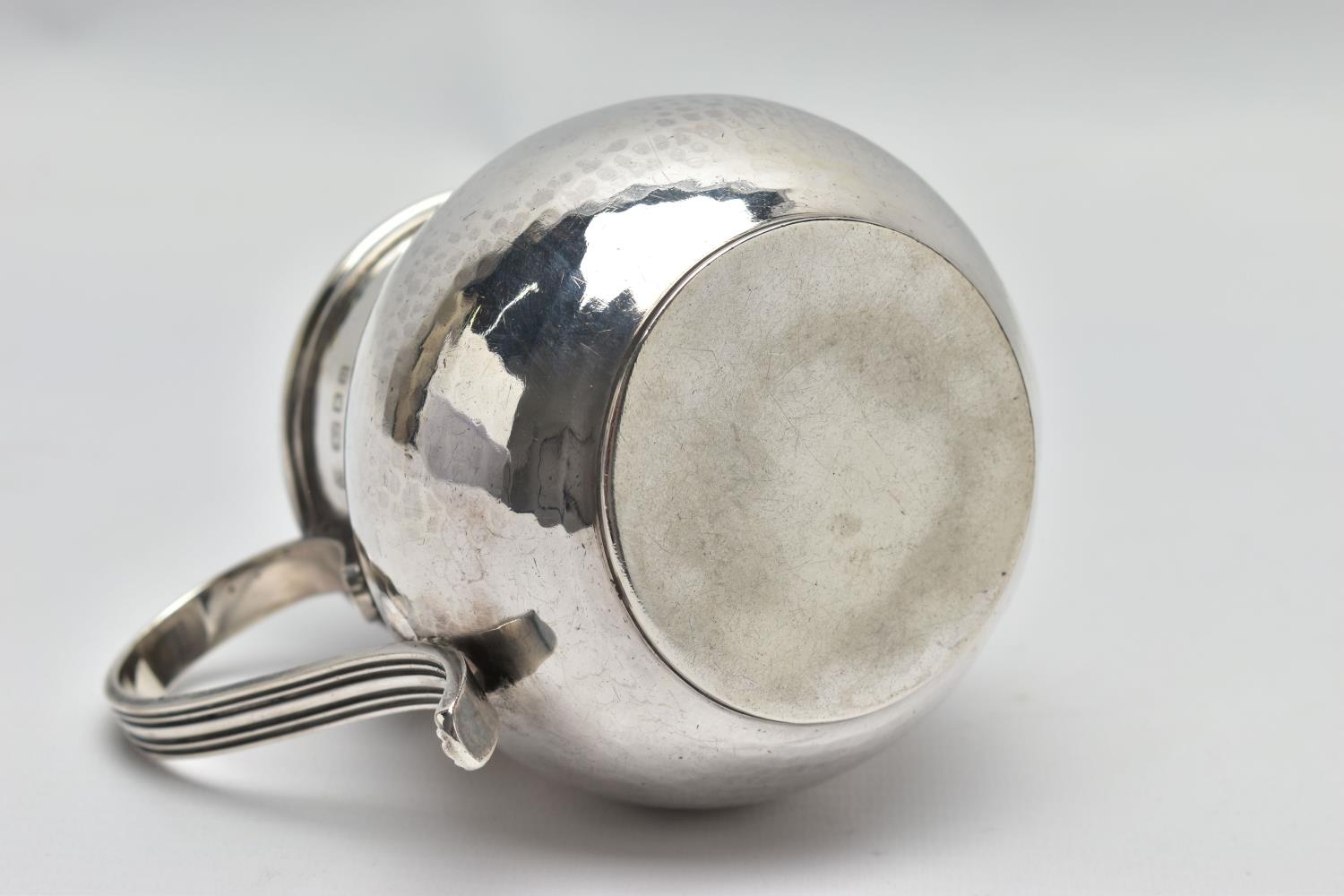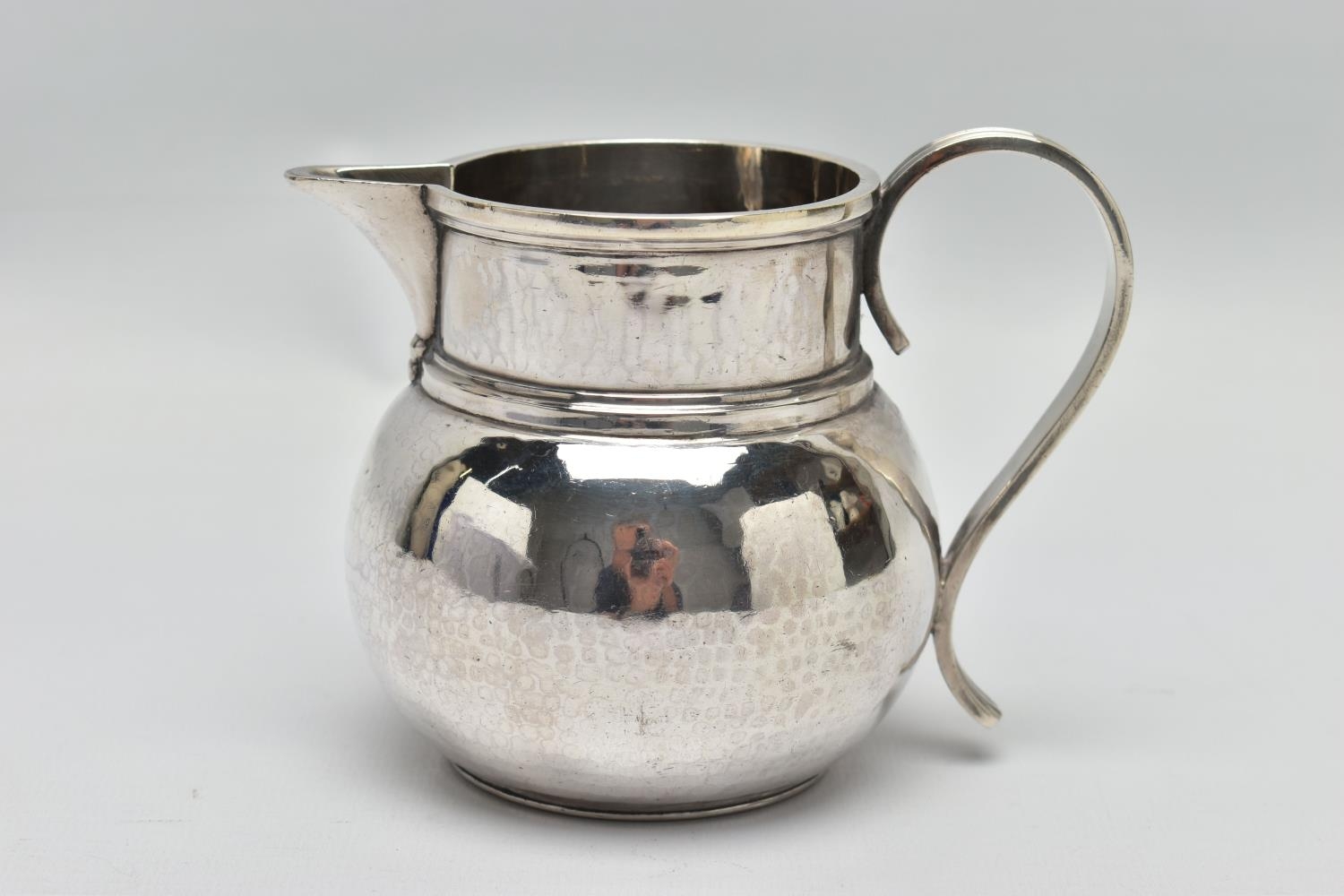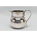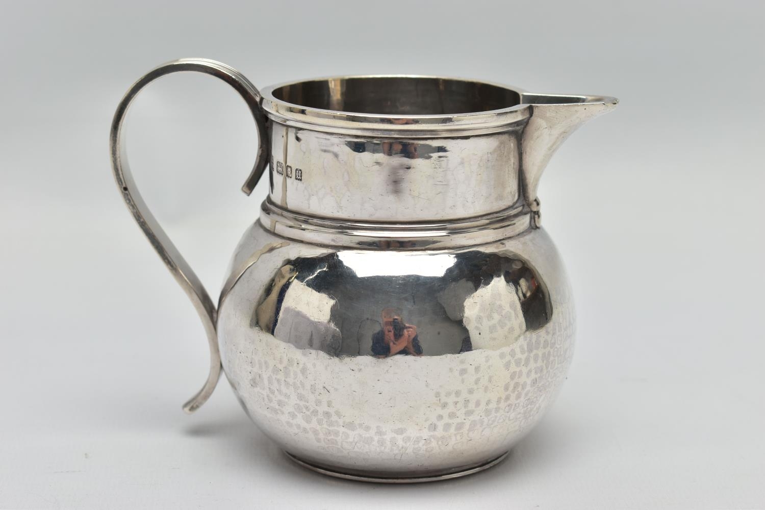 A GEORGE V SILVER JUG OF SQUAT BALUSTER FORM, the S scroll reeded handle on a planished body, makers C J Vander Ltd, London 1935, 7.03ozt, 218.6 grams, height 9.5cm (Condition report: a few tiny dints, interior requires cleaning but good condition overall)