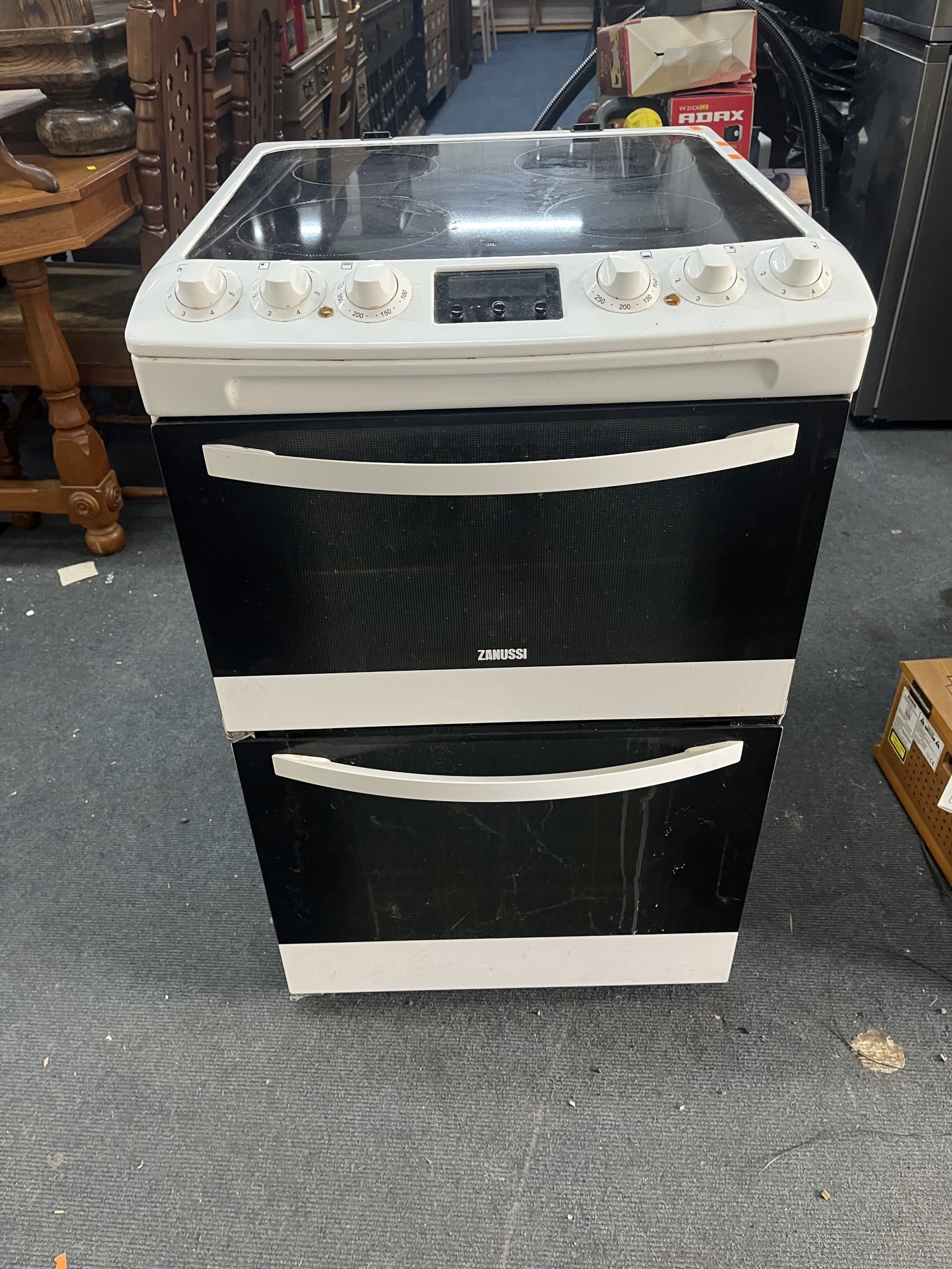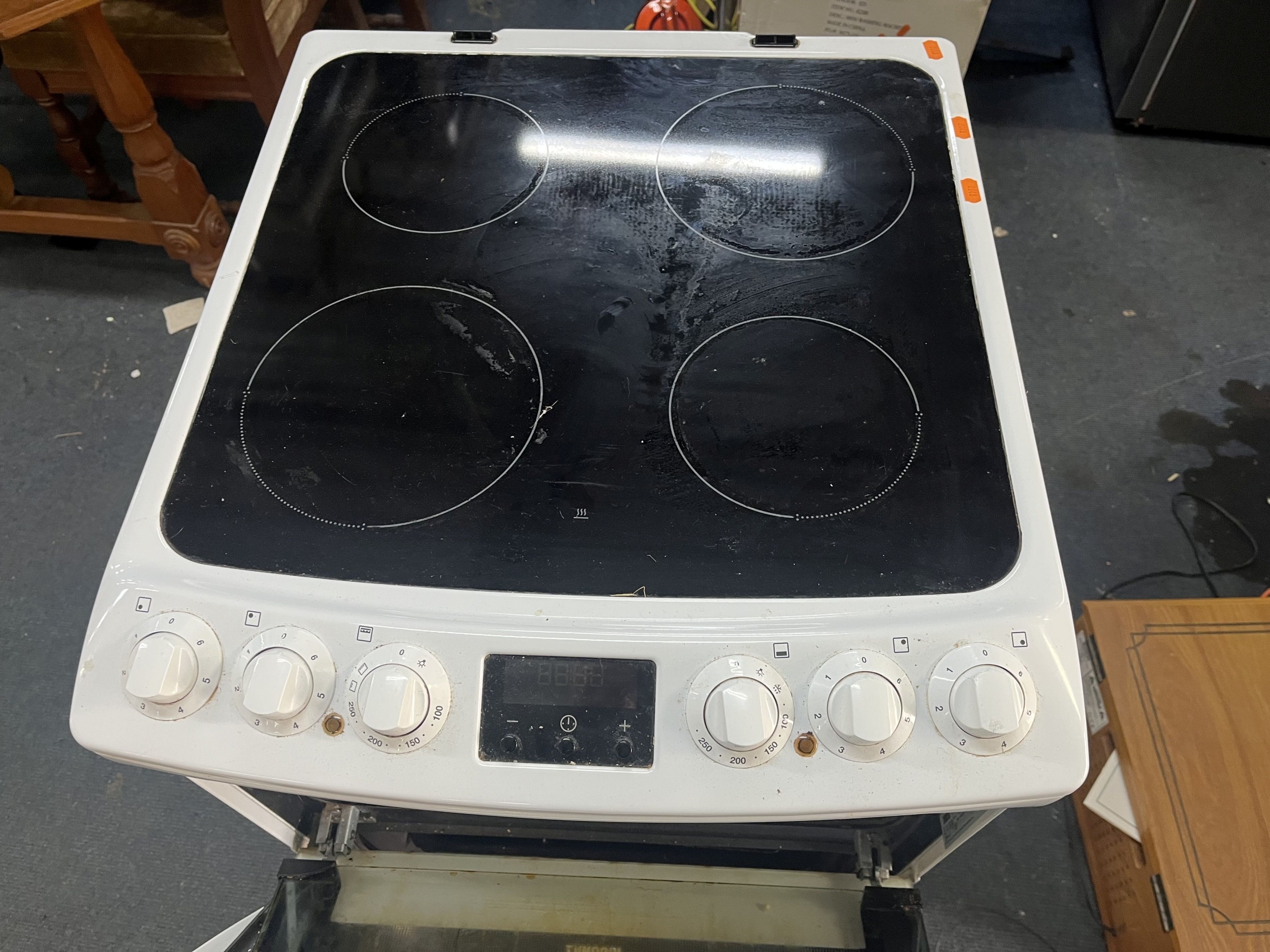 A ZANUSSI ELECTRIC COOKER with a glass four-ring hob, grill and oven, width 55cm, depth 63cm, height 90cm (UNTESTED)