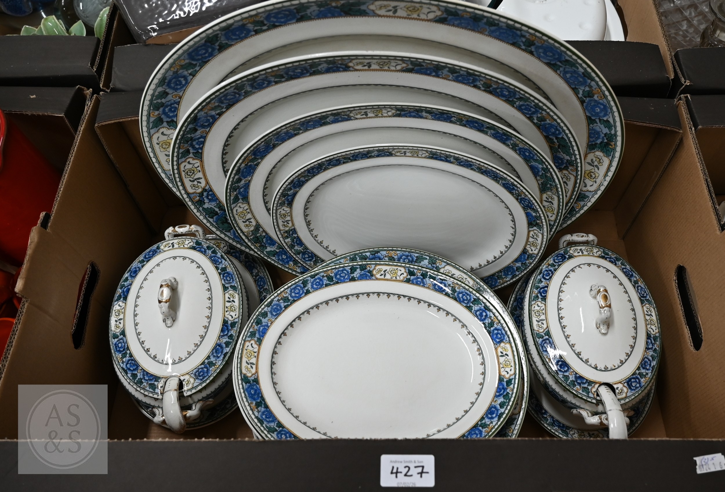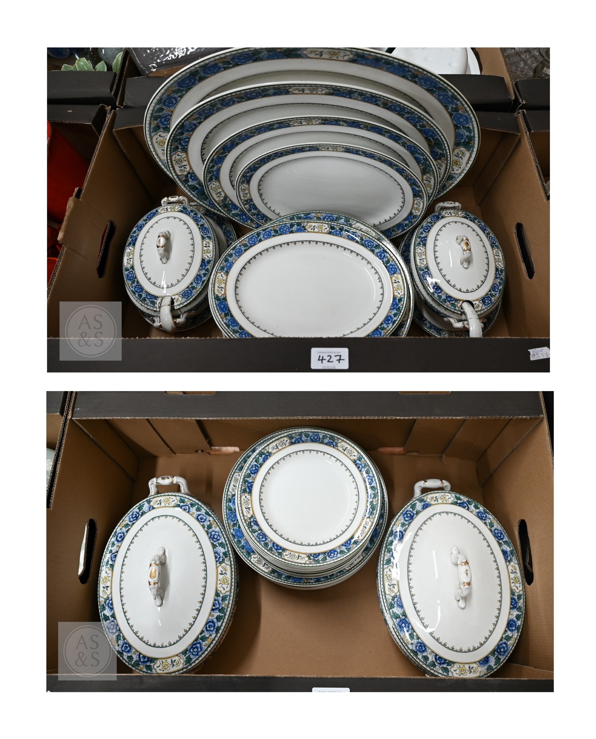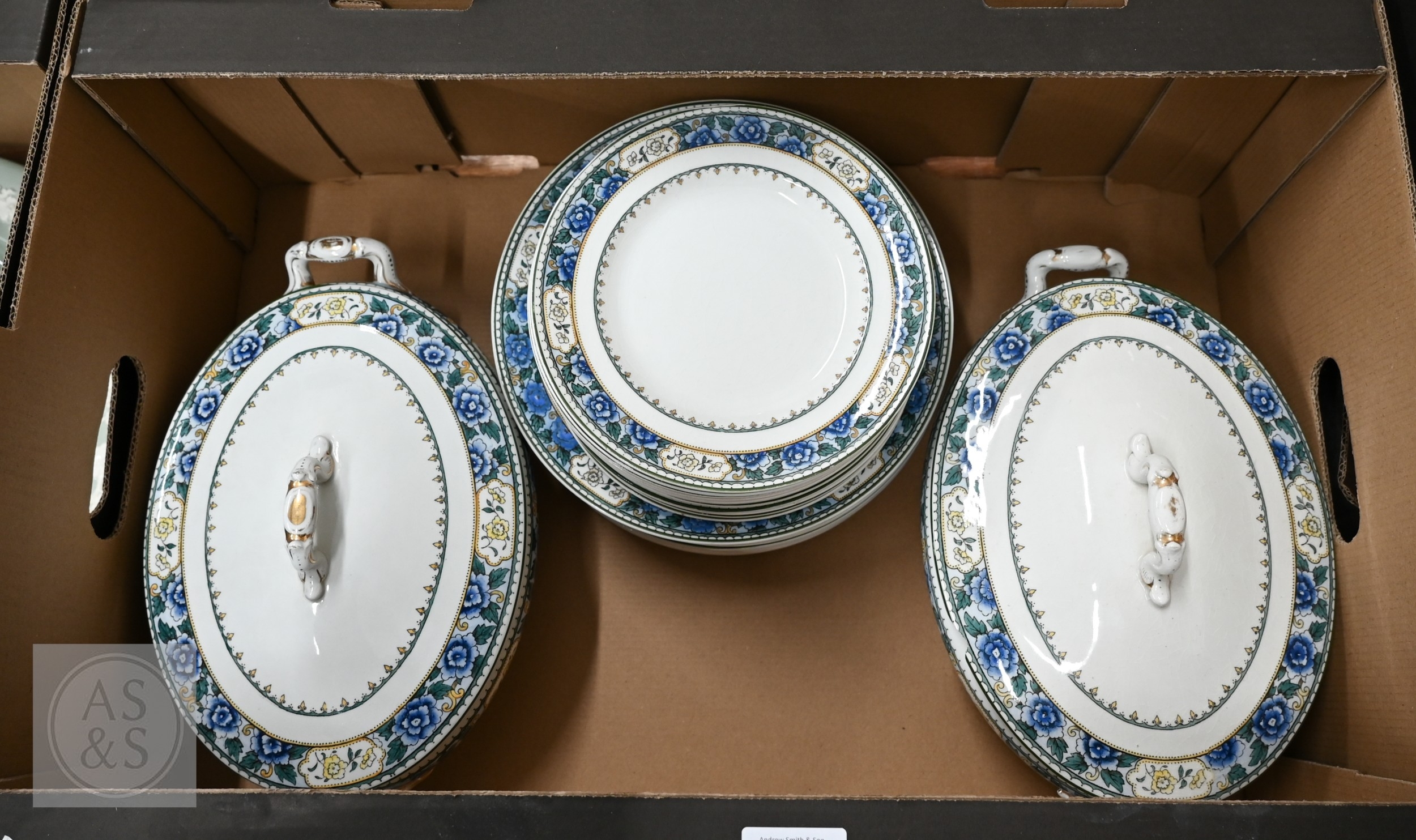 A Royal Doulton pottery dinner service, fifty two pieces including covers (2 boxes)