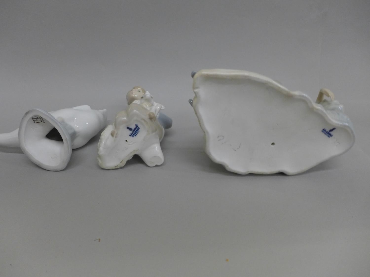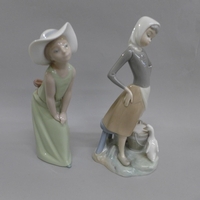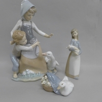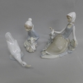Two Lladro figures and a Nao figure of a goose