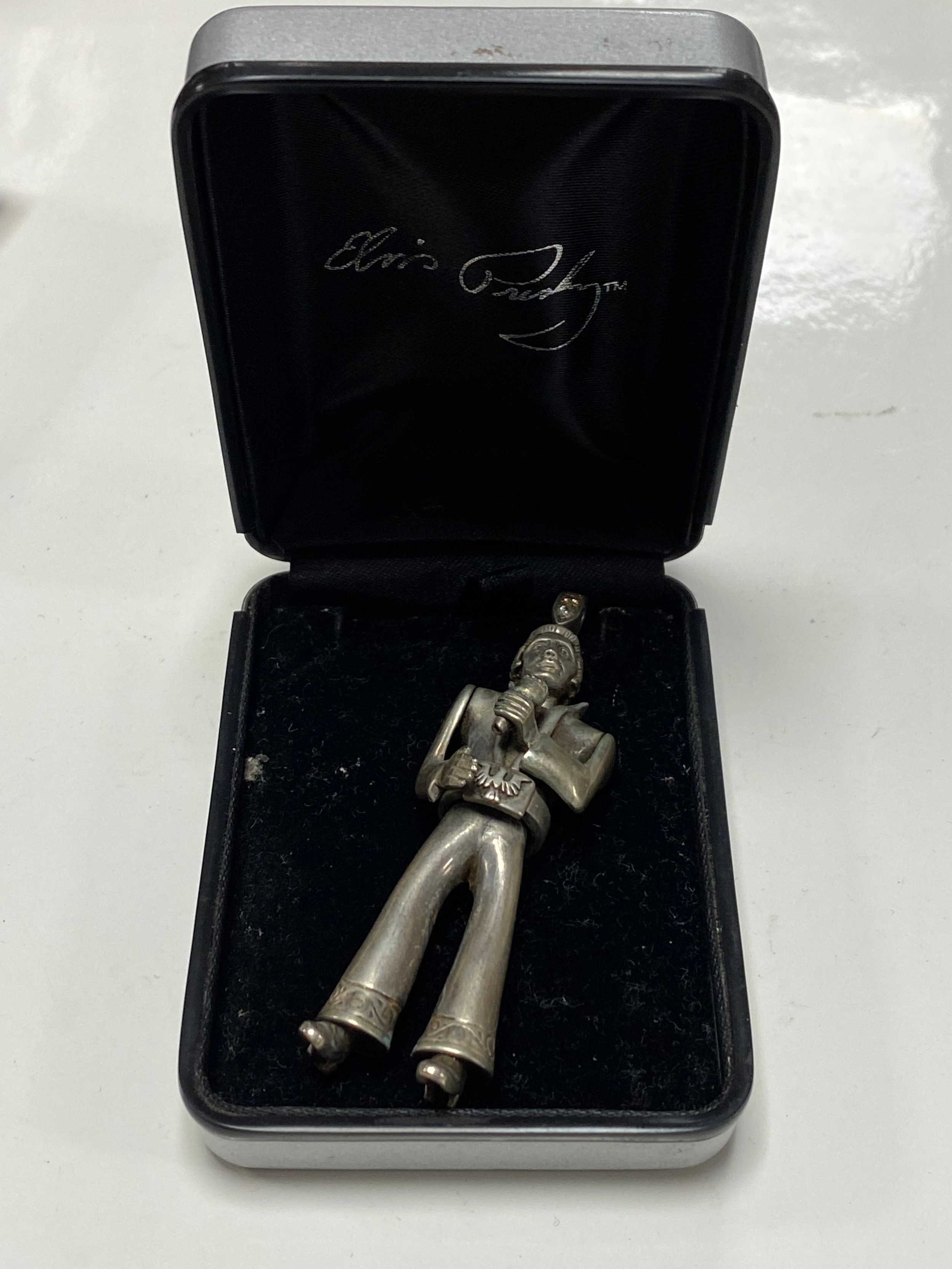 A modern silver articulated Elvis Presley pendant, boxed -