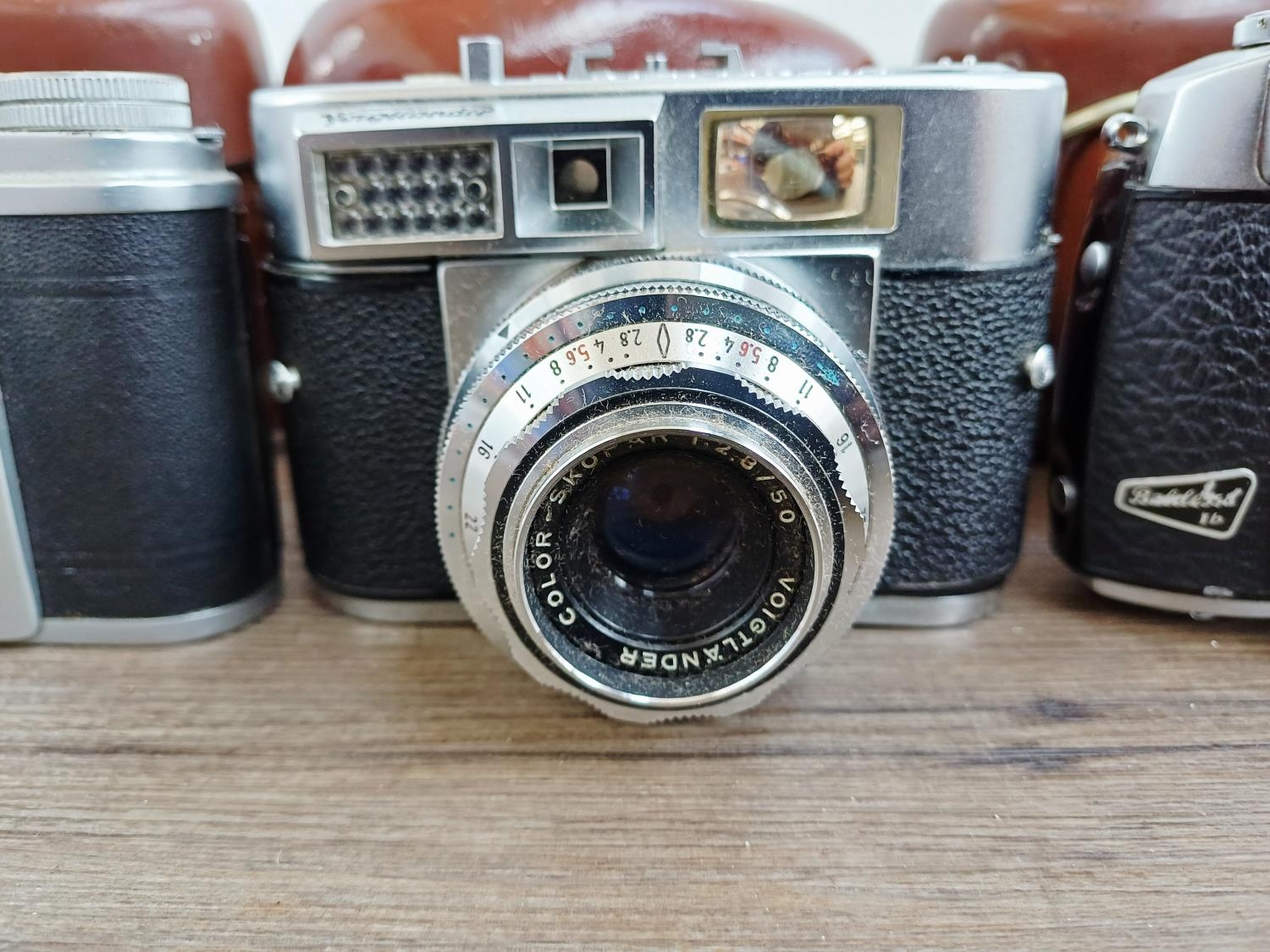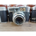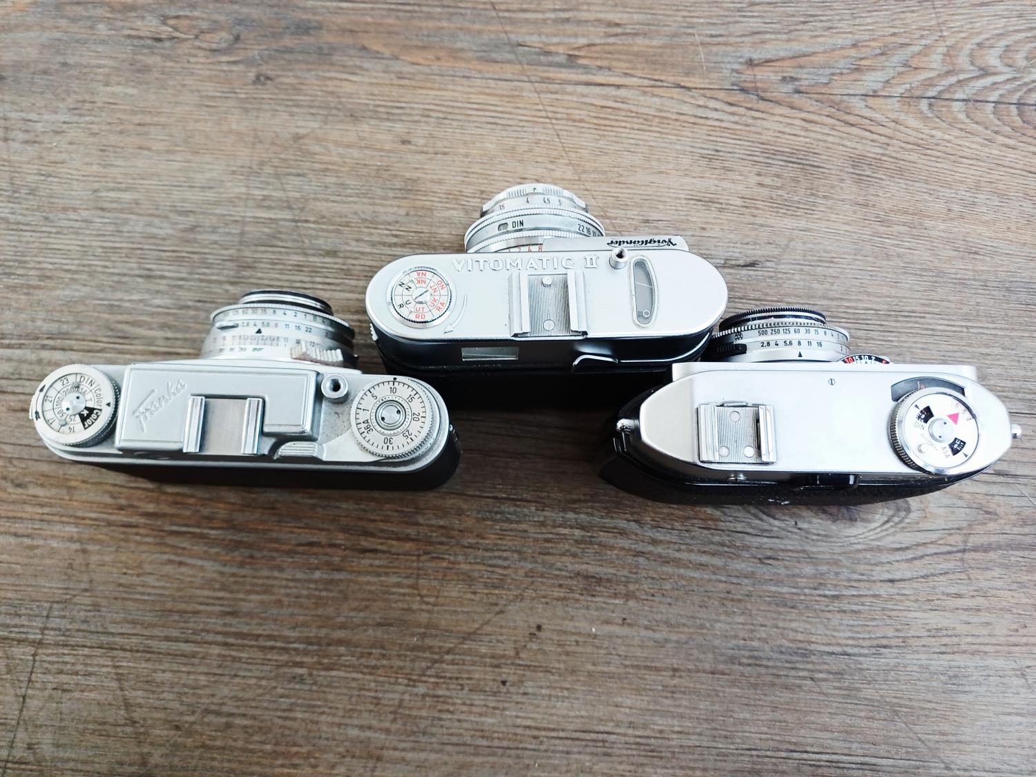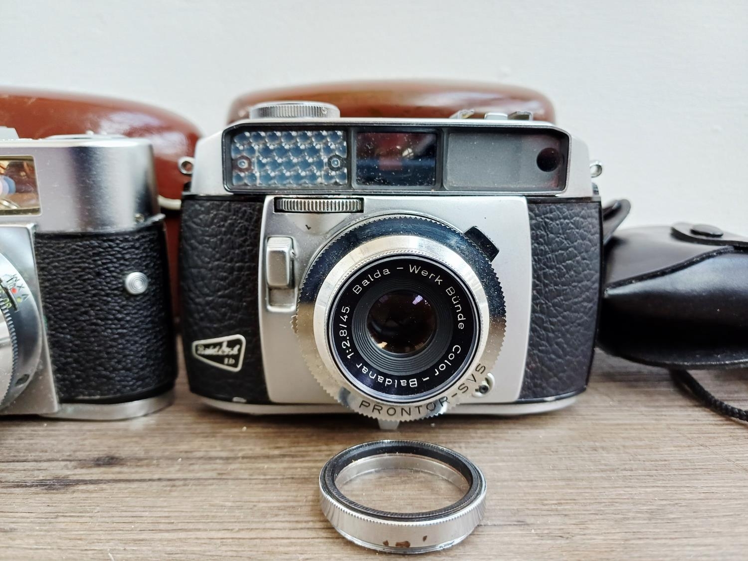 Three cased 1950s German 35mm rangefinder cameras, one Voigtländer Vitomatic II, one Balda Baldessa Ib and one Franka Frankarette (Super Frankarette R I) together with cased Euro-Master II light meter