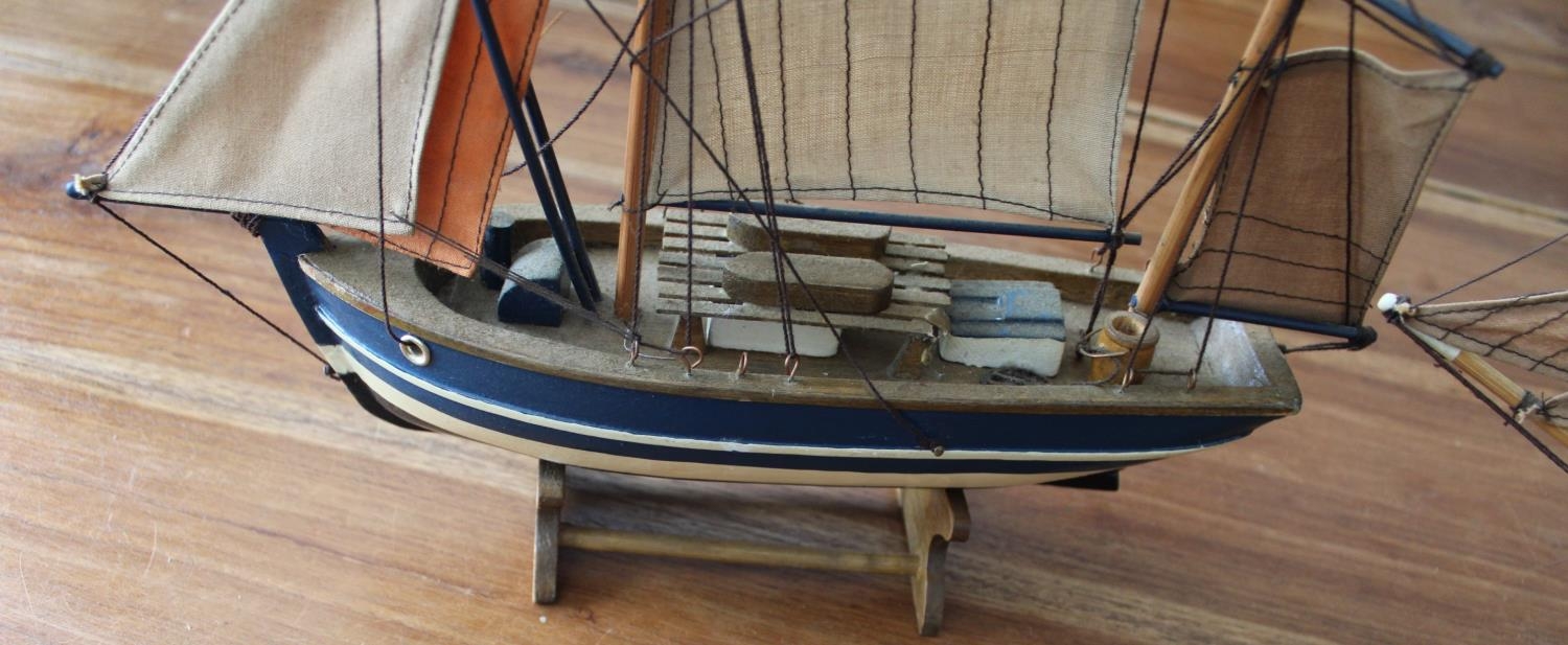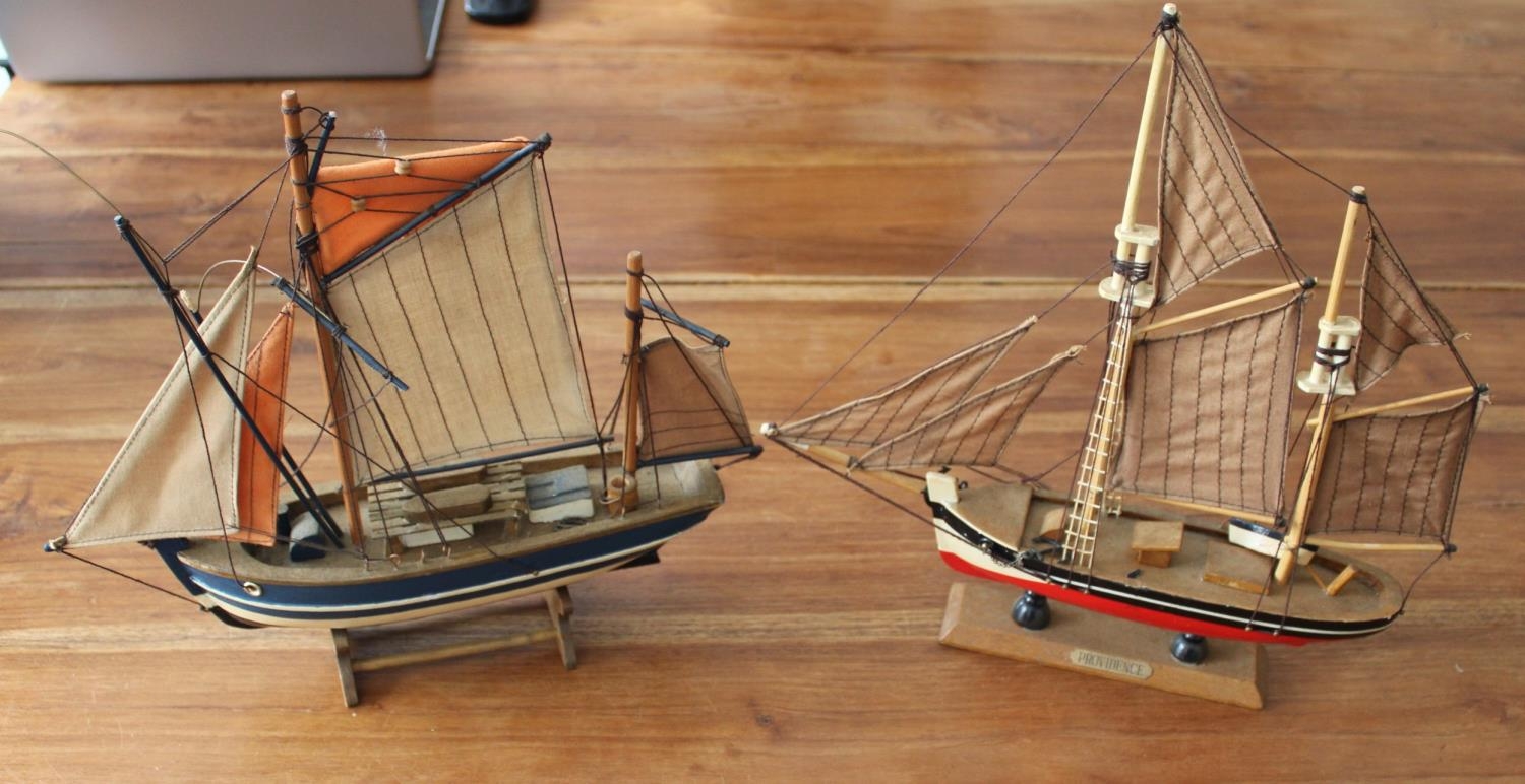 Two Colllectable Wooden Boats on Plinths