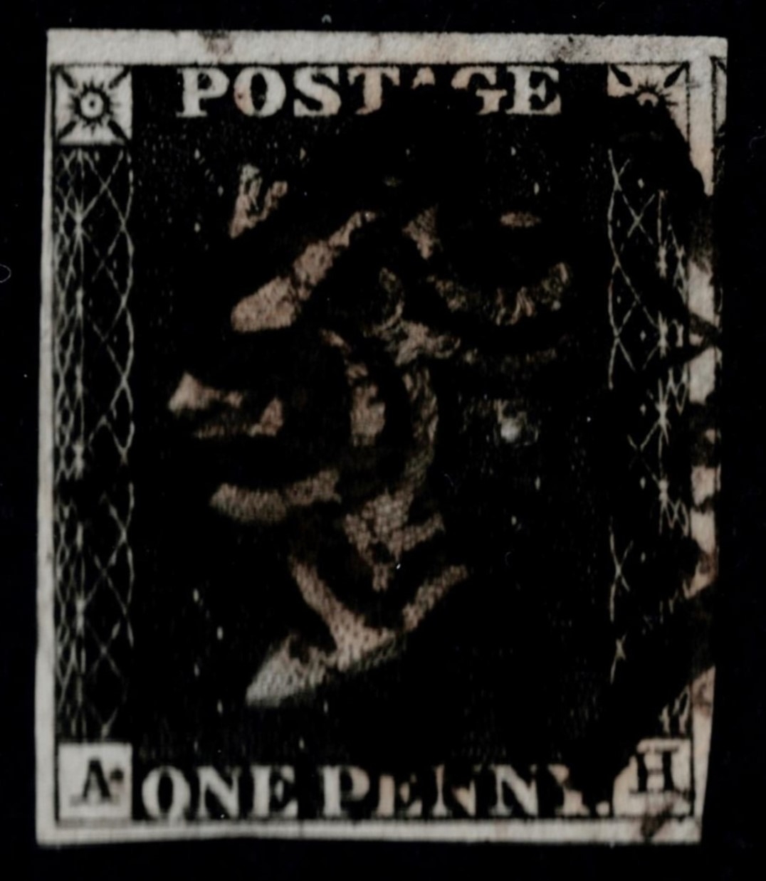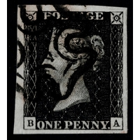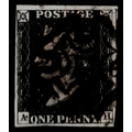 GB 1840 1d black plate 8 AH STATE ONE vfu four good to large margins and black cross sg2 Cat. £475