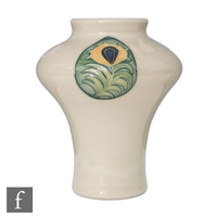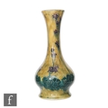 An early 20th Century Morrisware vase by S. Hancock and Sons, designed by George Cartlidge decorated with purple flowers and dark green leaves against an olive green ground, printed factory mark and painted pattern number C4-3, height 23cm, restored.