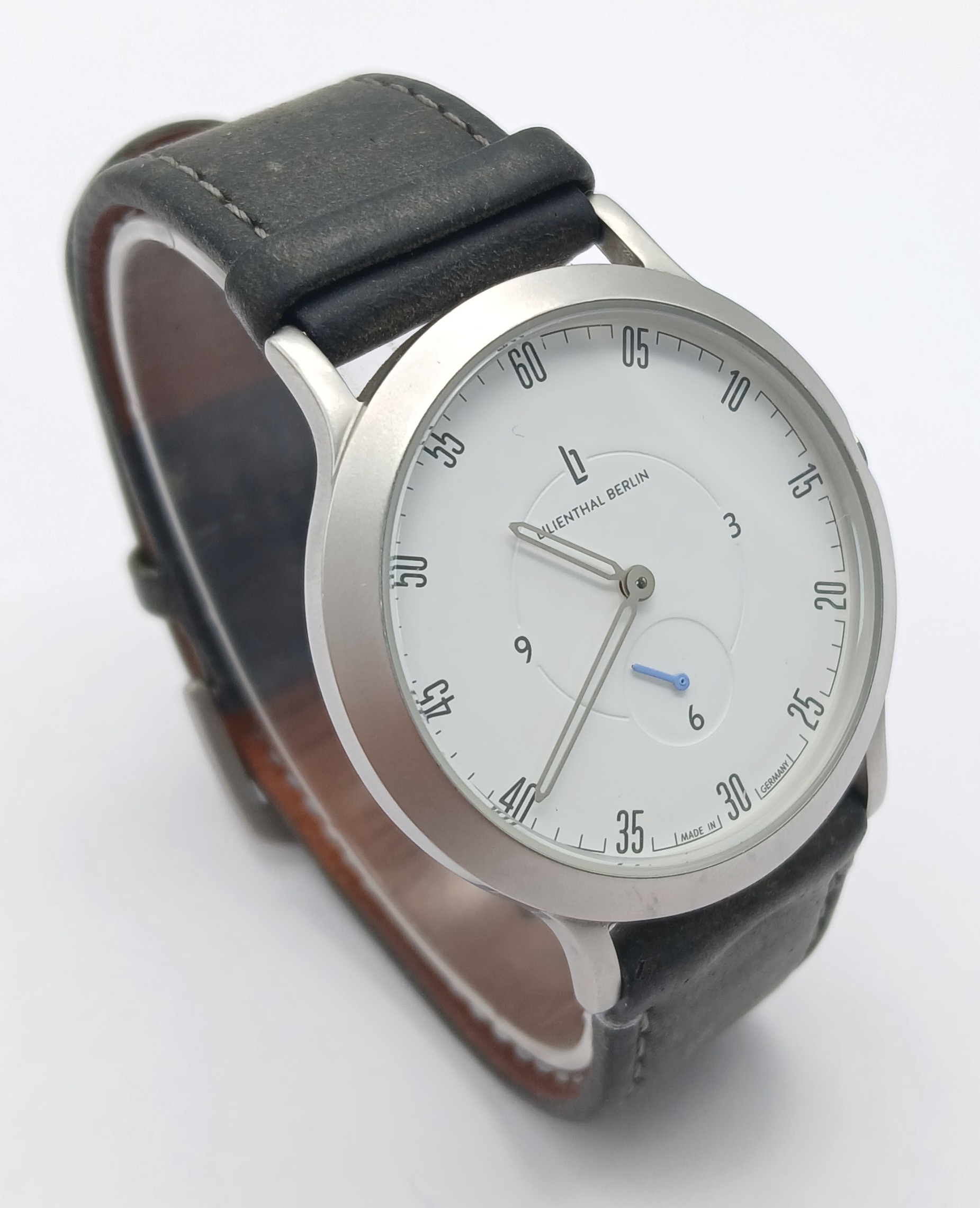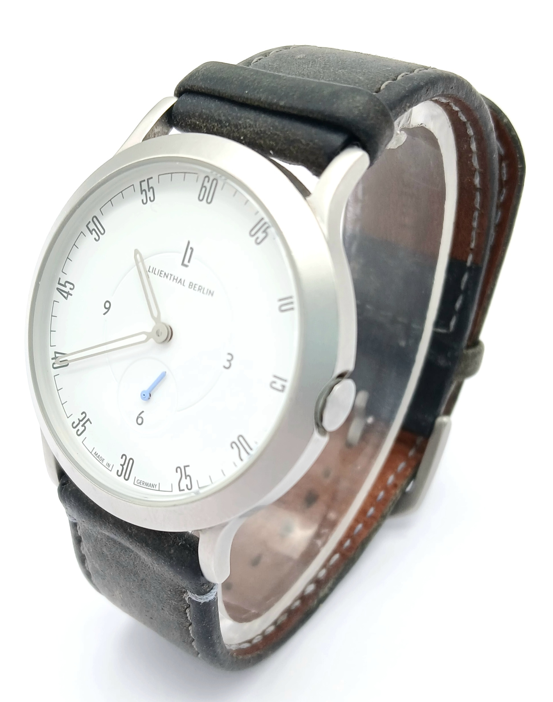 A LILIENTHAL BERLIN, LEATHER STRAP WATCH. IN FULL WORKING ORDER. WITH ORIGINAL STRAP AND BUCKLE. S/A 1602 - 2