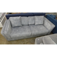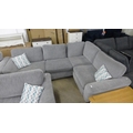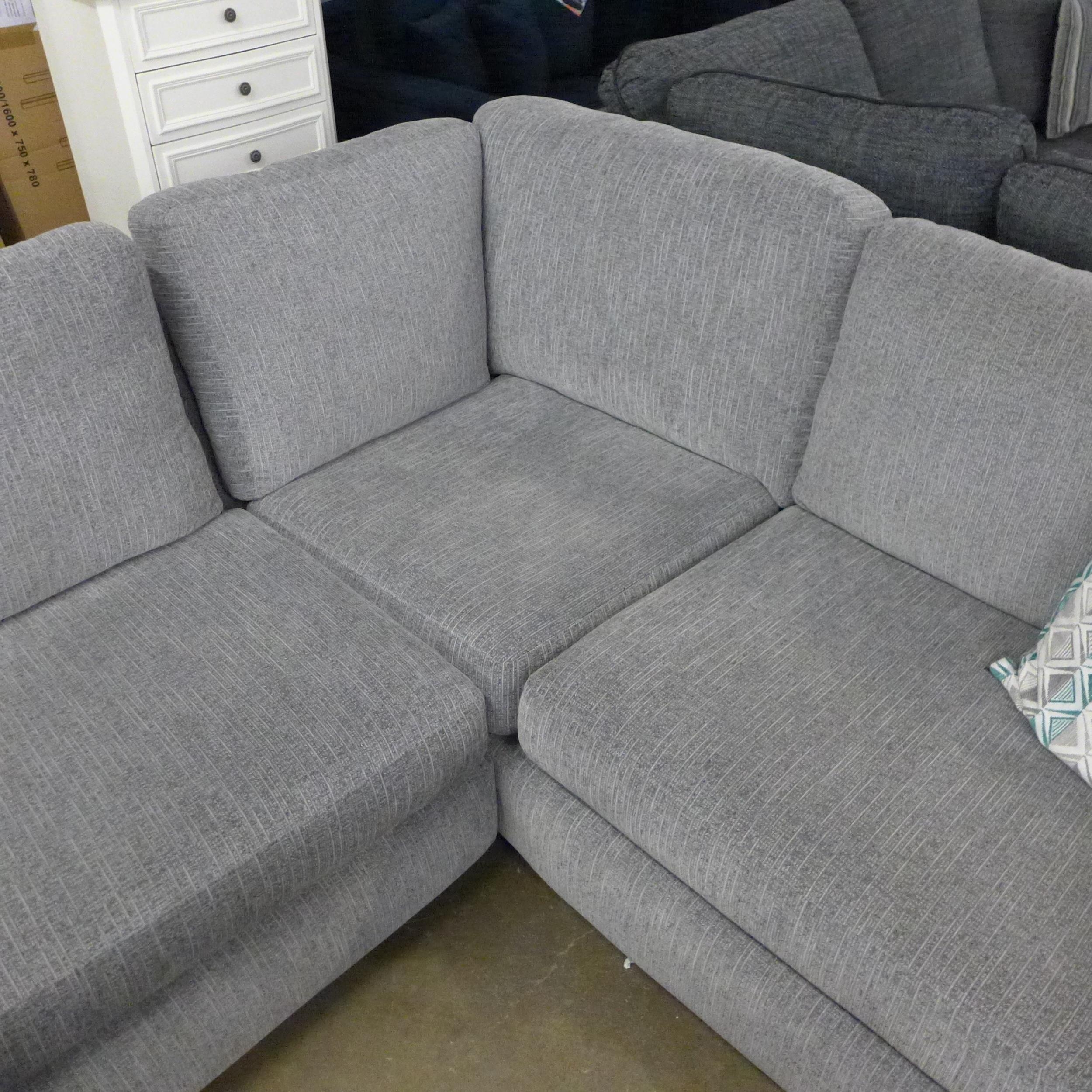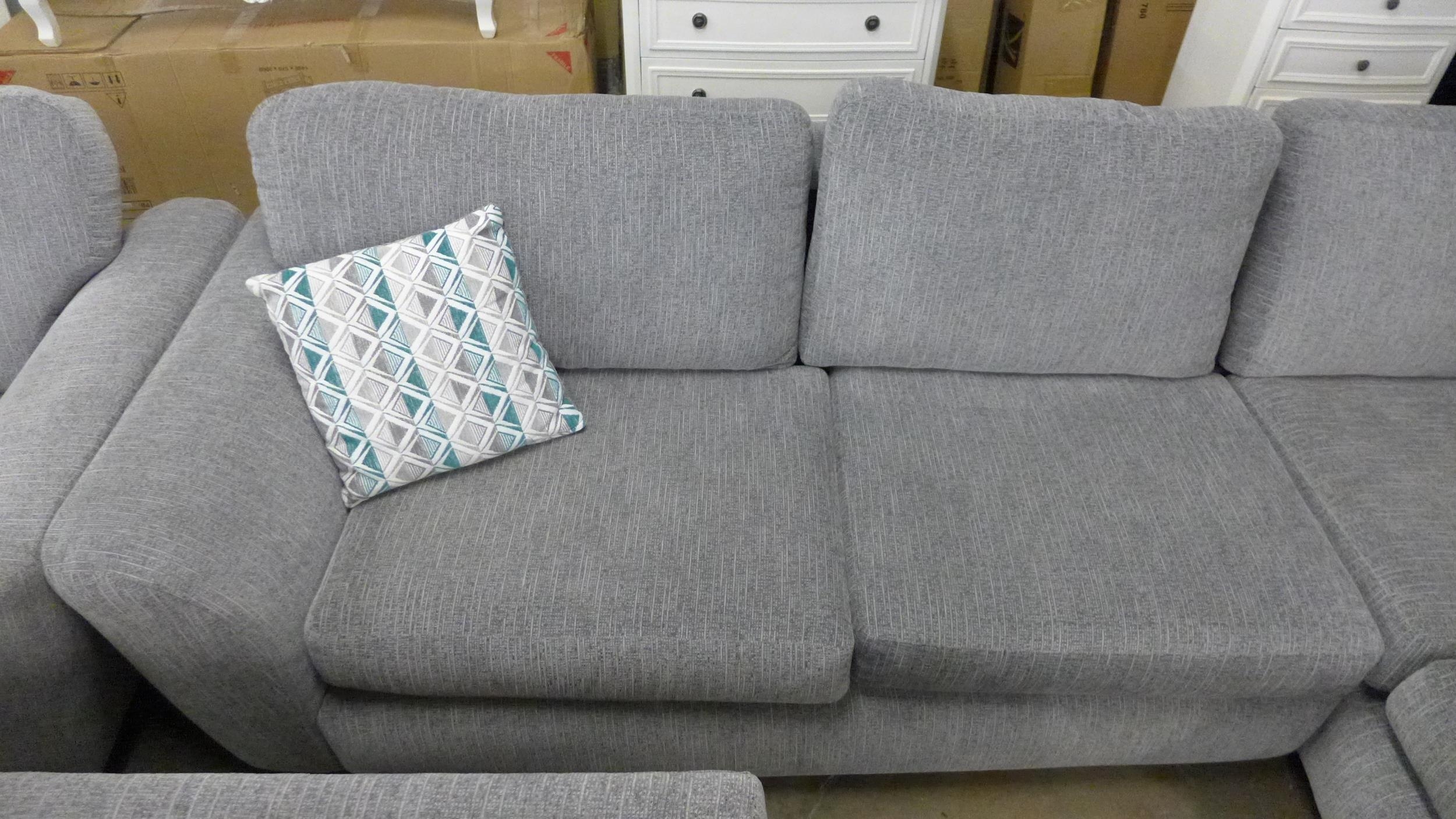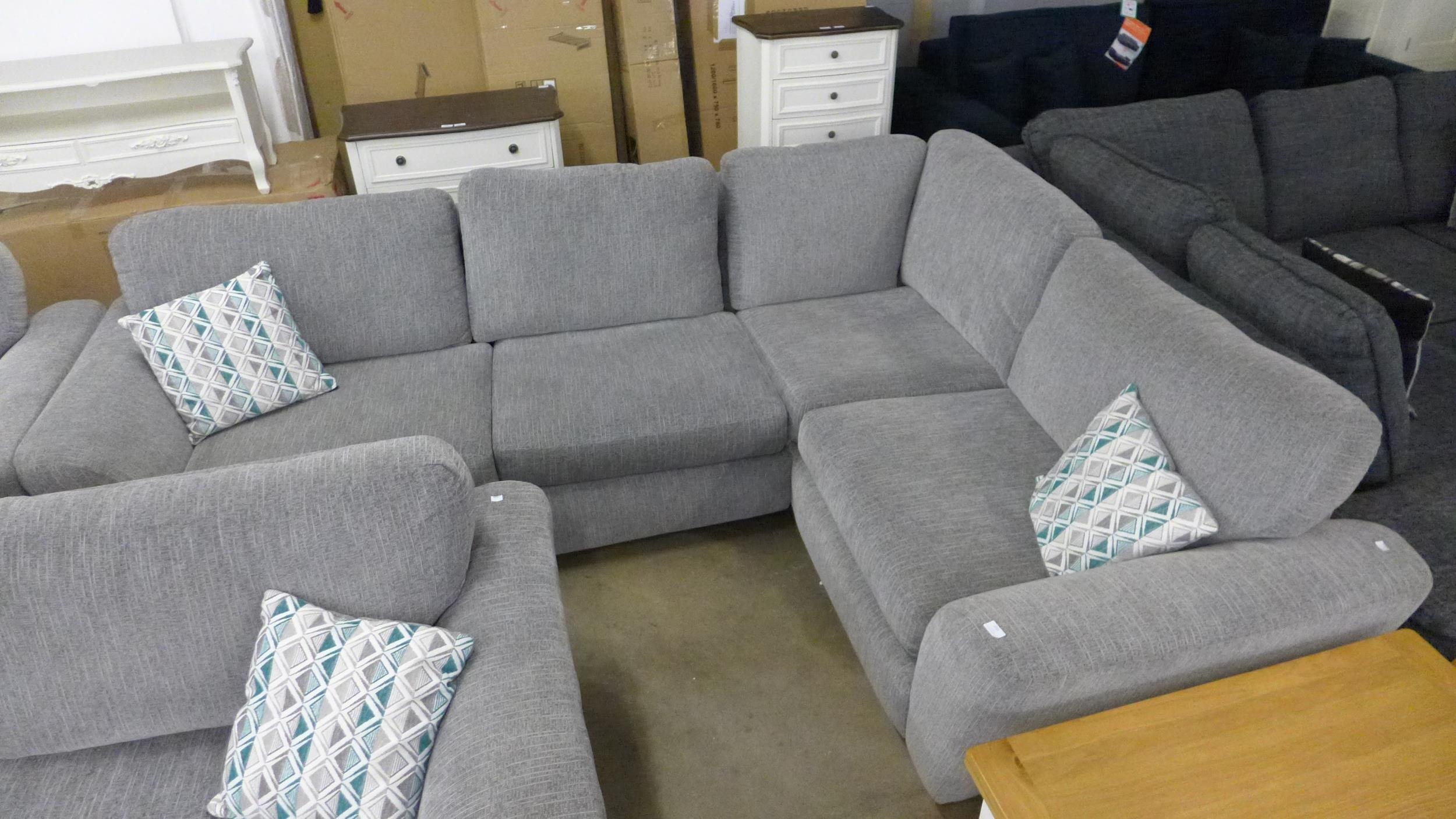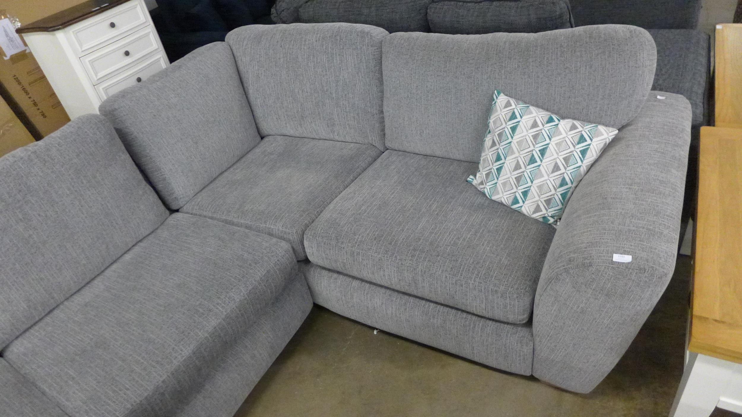 A light grey fabric corner sofa