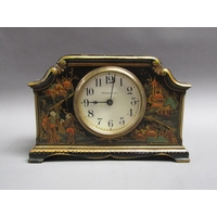 The movement is loose in the case and requires a full overhaul. The bell and pendulum are missing. The hands are not original and one is broken. The case has missing and damaged veneers, particularly on the base and is missing its feet.