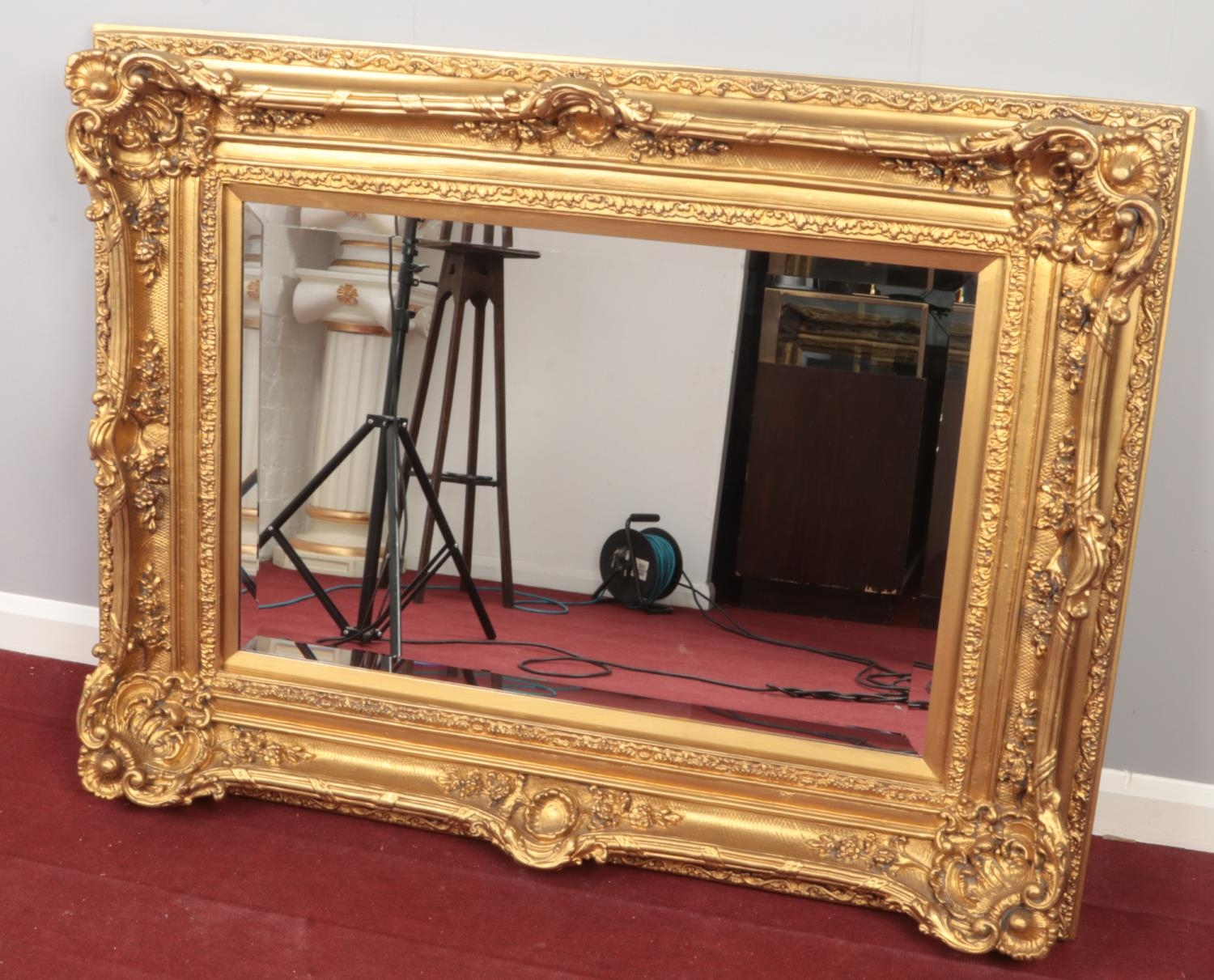 A large ornate gilt framed bevel edge wall mirror. (101cm x 130cm)