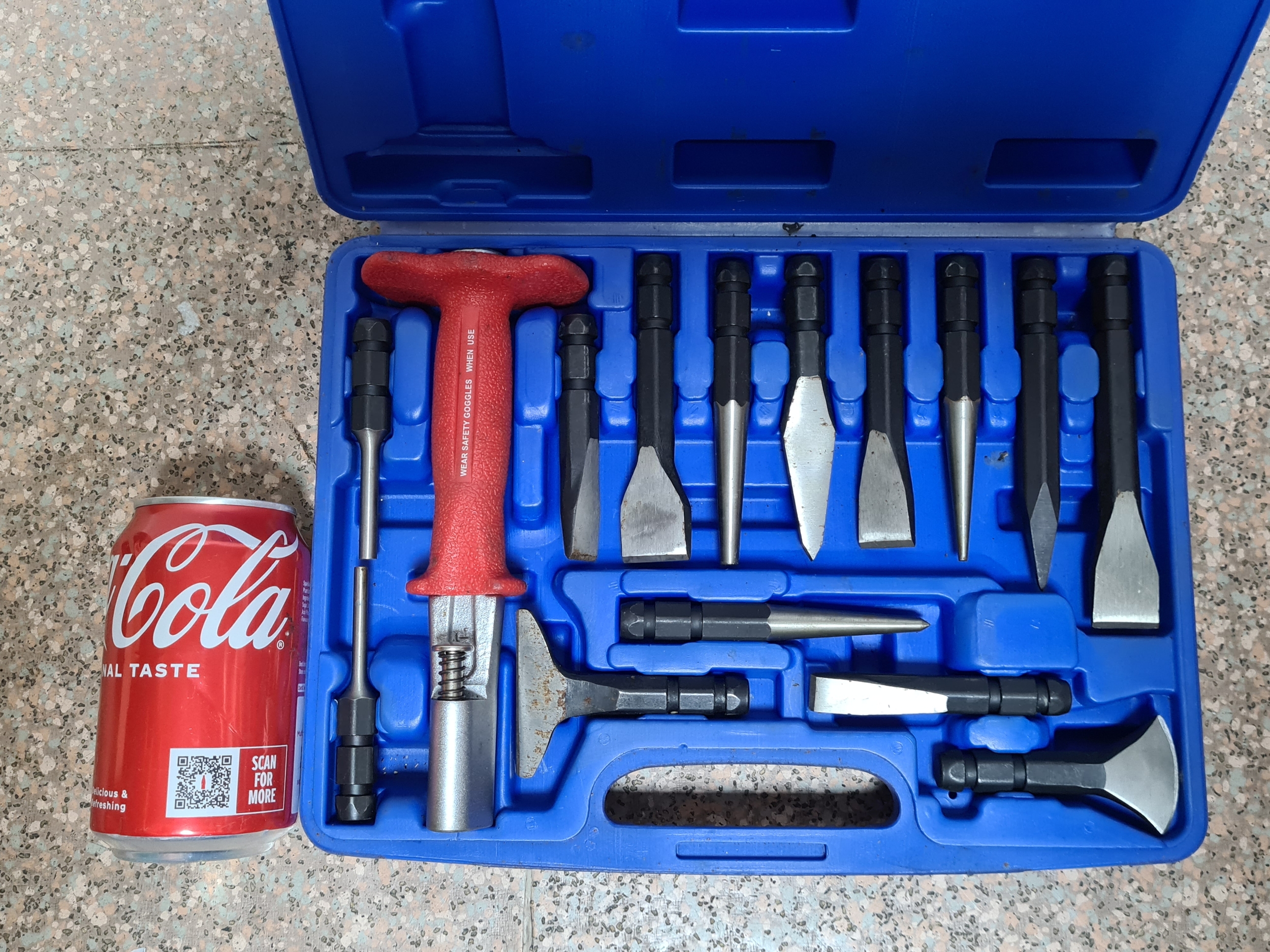 A 15 piece CR-Mo Chisel & Punch set housed in a plastic box.