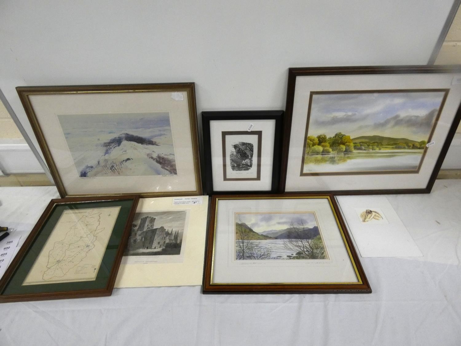 Large collection of pictures to include map, Ullswater watercolour etc.