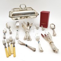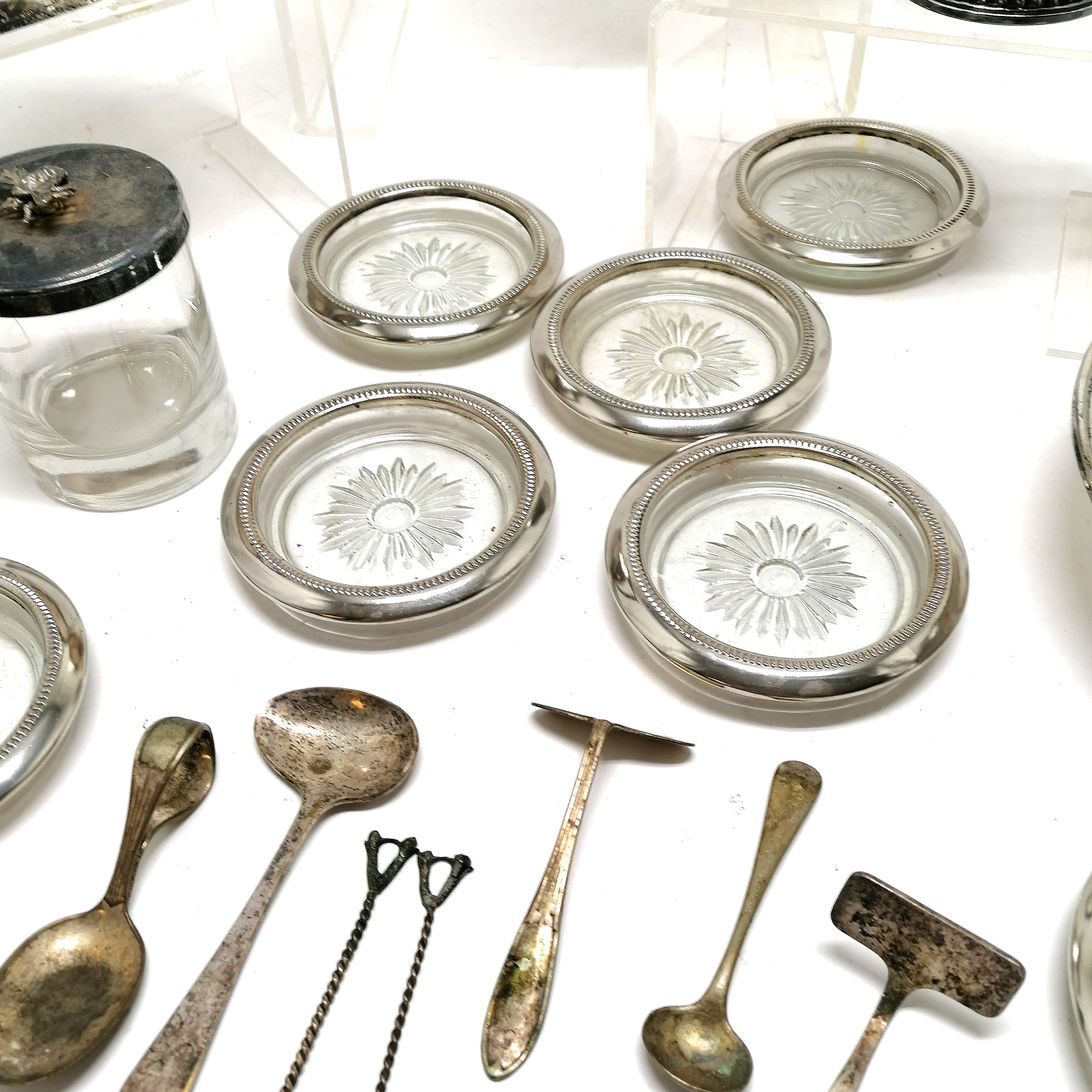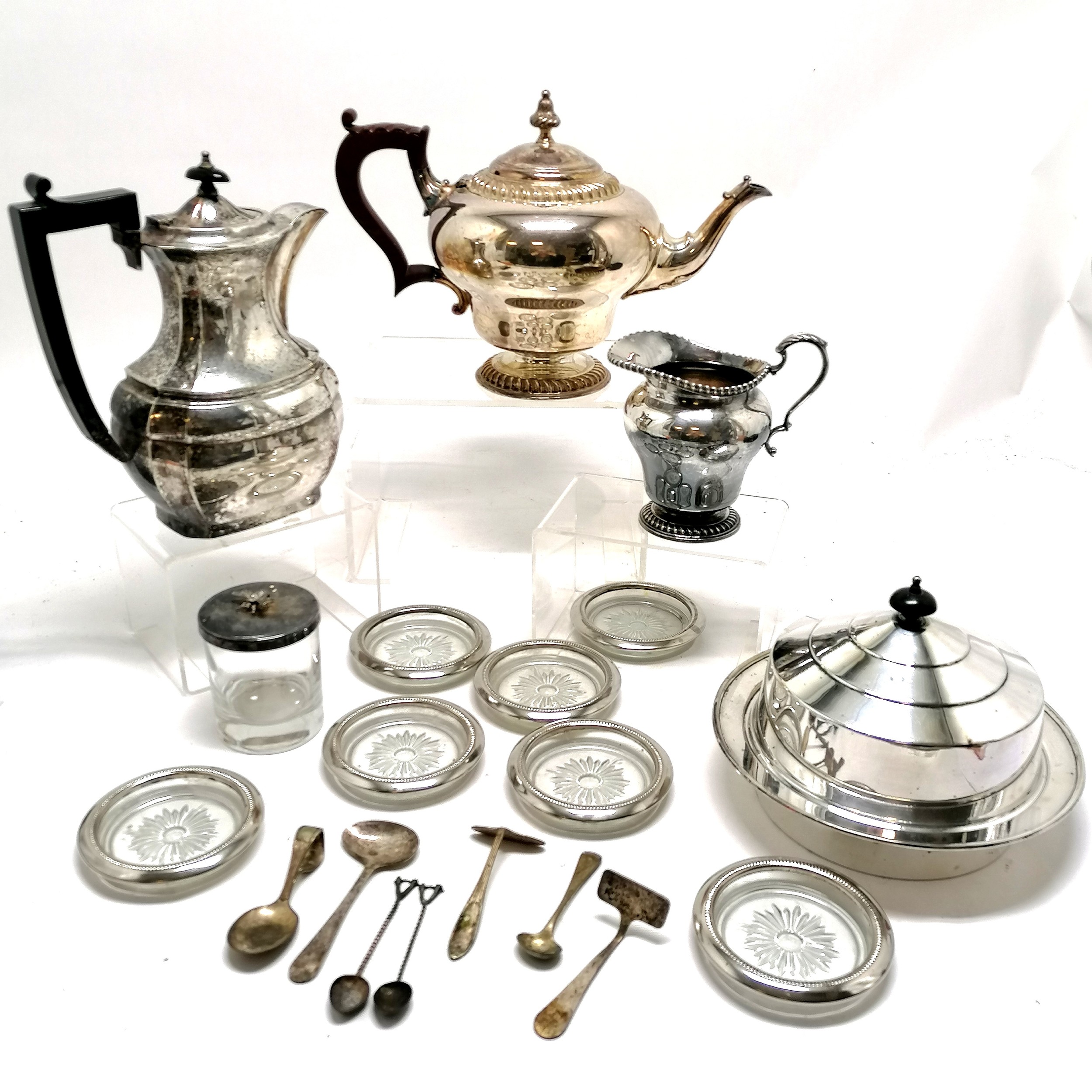 Qty of plated ware inc teapot & milk jug with gadrooned border, muffin dish (20.5cm diameter), coasters, honey jar with bee finial detail etc