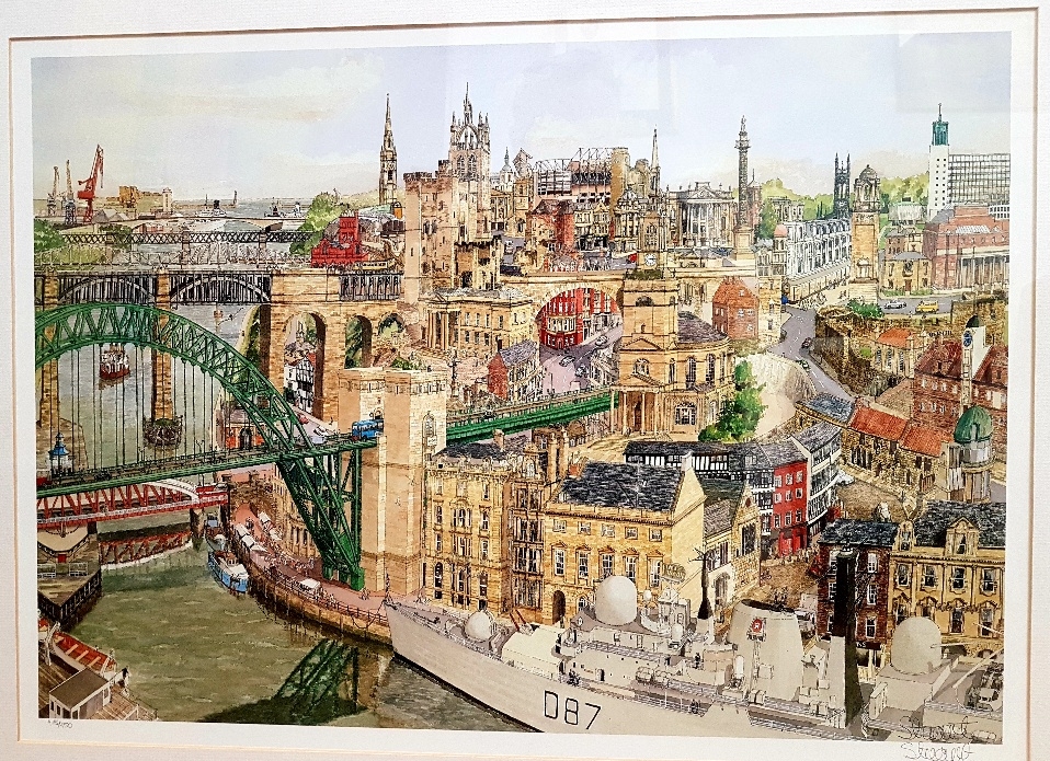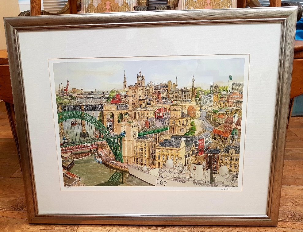 Memories of Newcastle Limited Edition Print (415/950) by Martin Stuart Moore, framed, signed and glazed. Size is 32 inches x 26 inches.