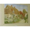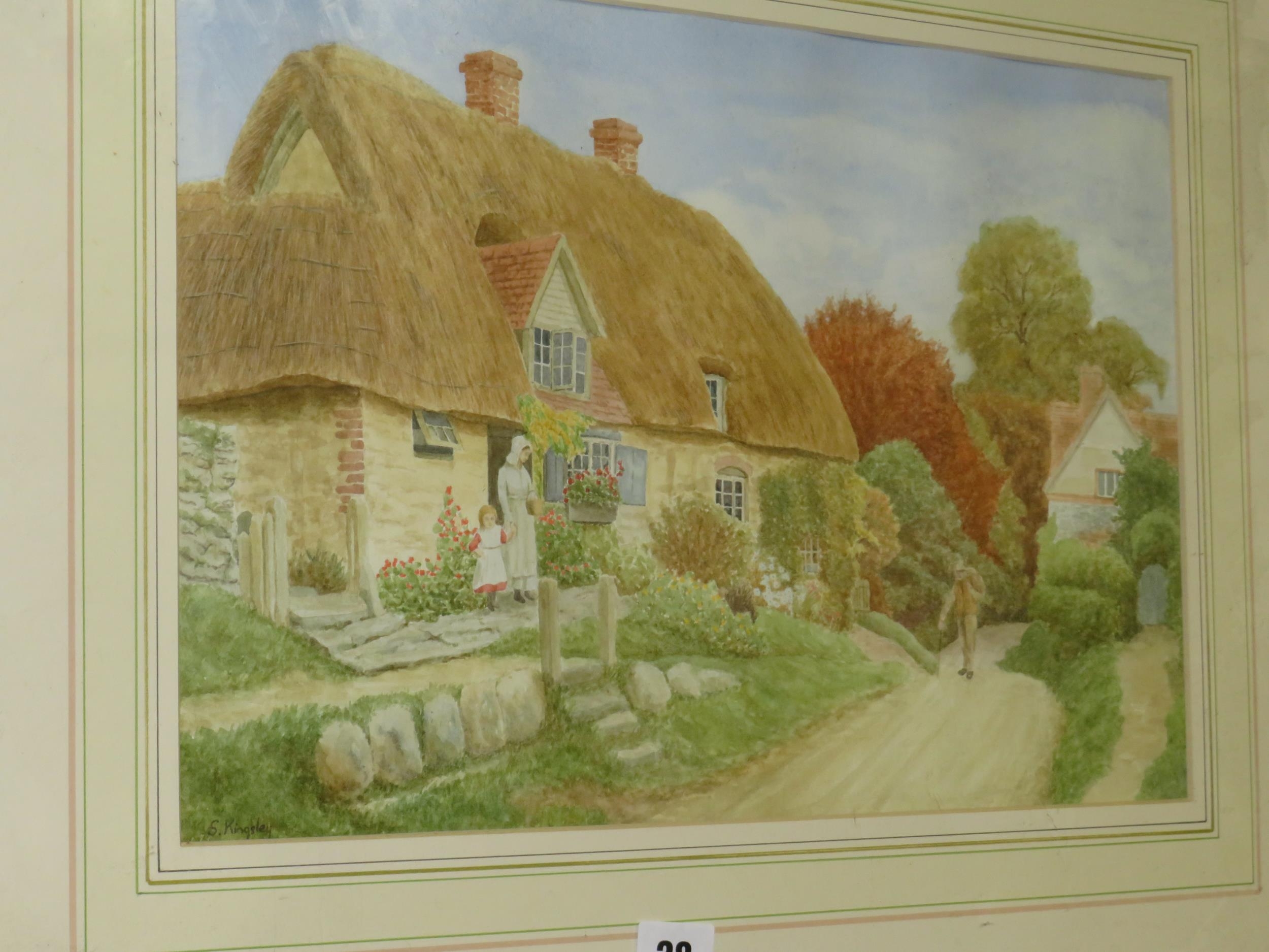 Watercolour signed S Kingsley Devon cottages 10" x 17"