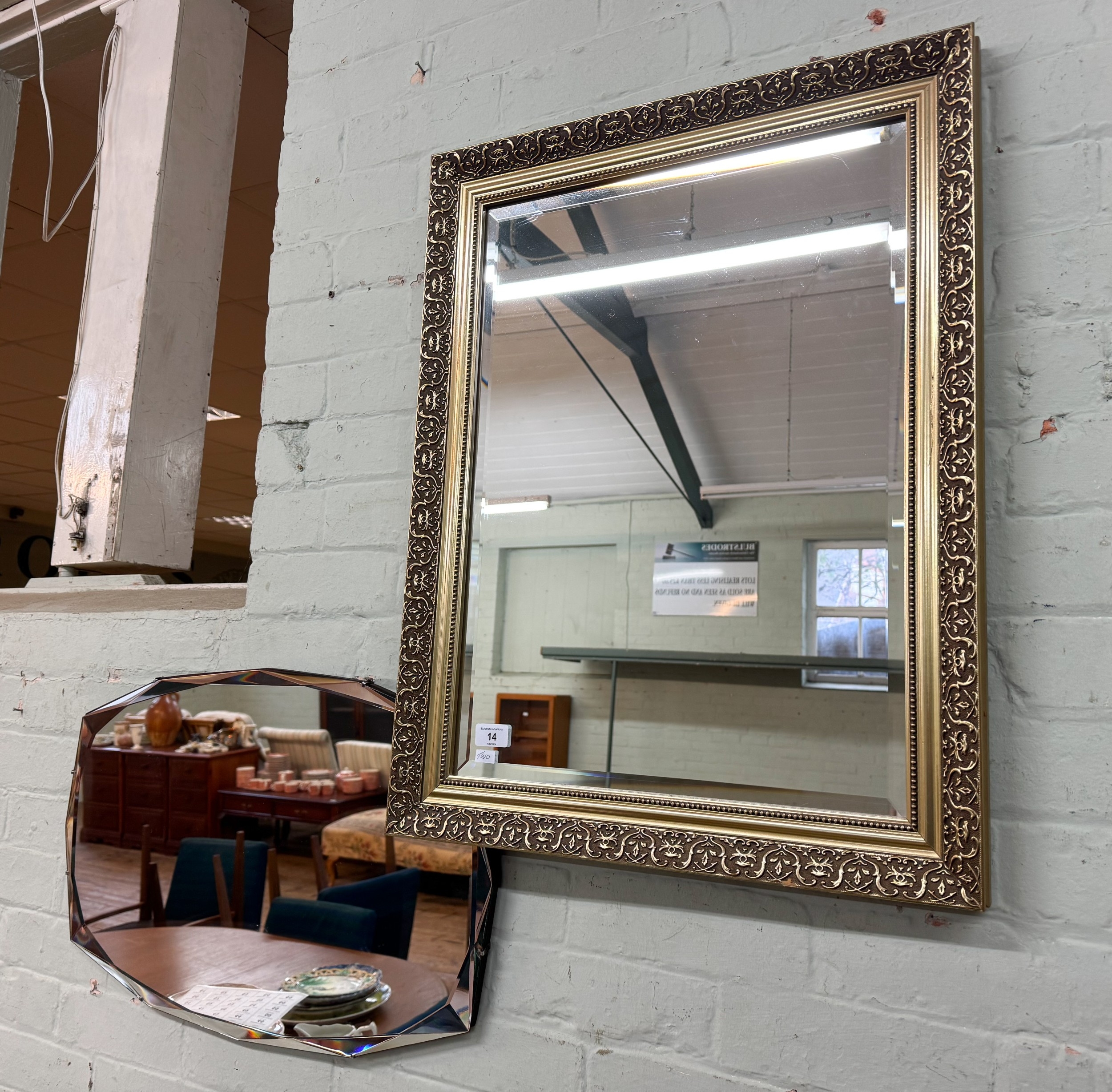 A bevelled wall mirror in gilt frame together with a frameless bevelled mirror