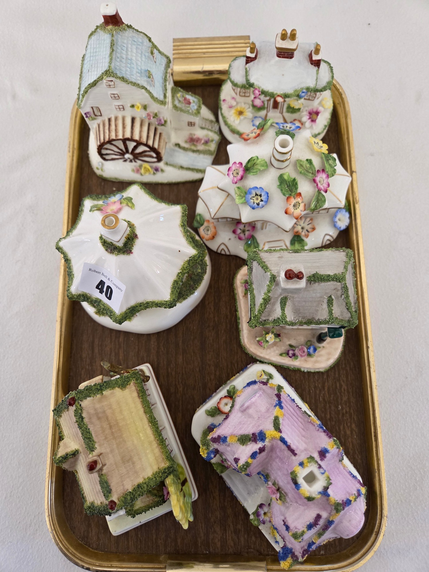 Collection of 7 various Coalport cottages/burners