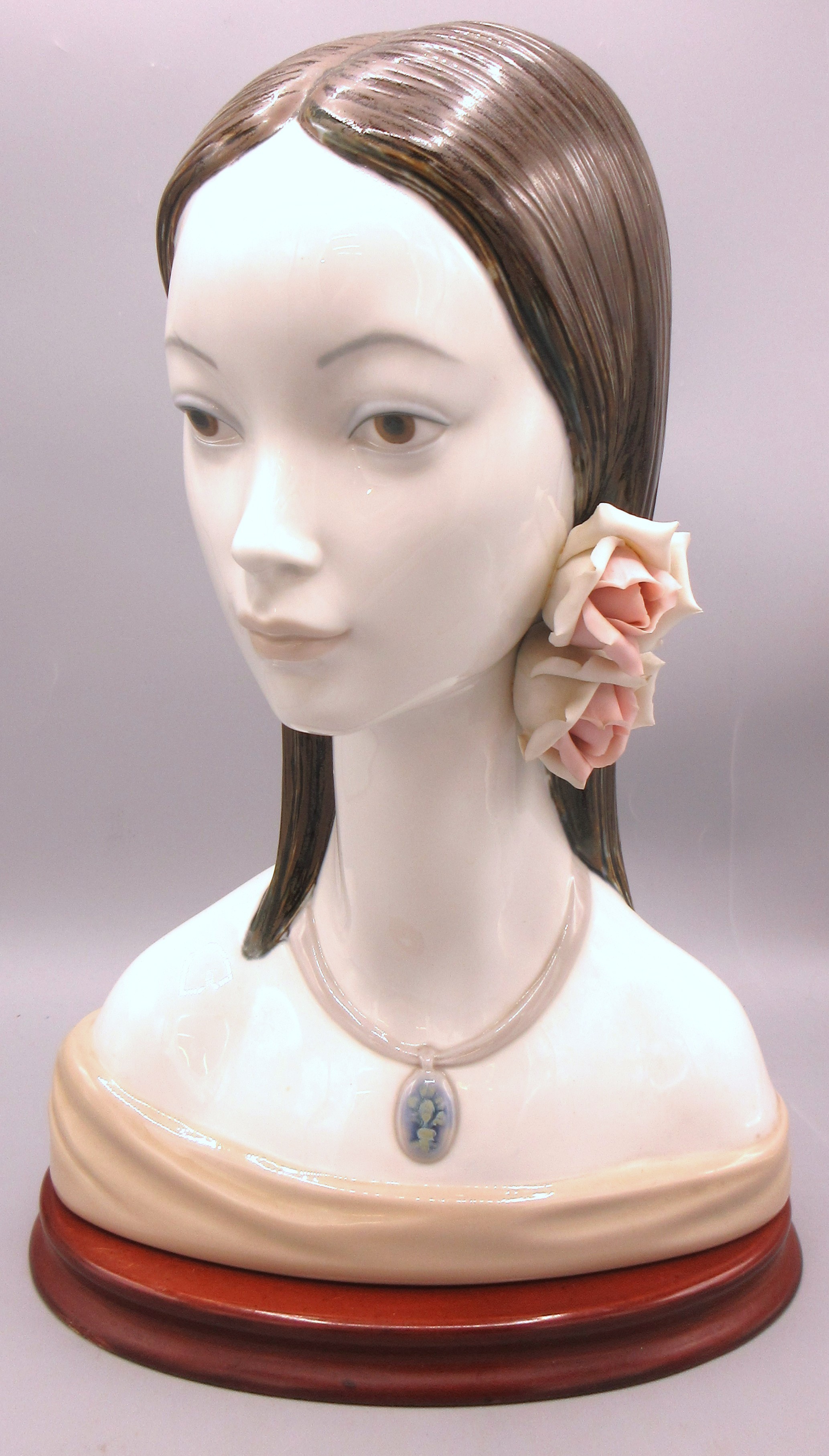 Lladro 'Maja' bust of a female on wooden stand, H34cm