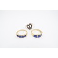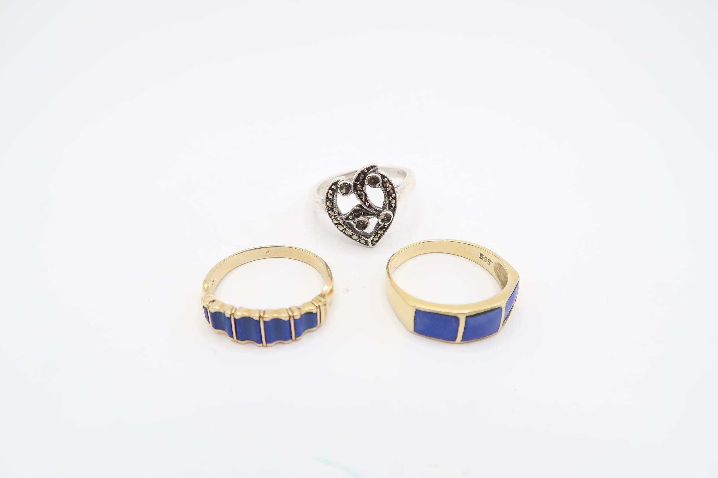 A Pair of Unique Design 14ct Lapis Lazuli Rings, With a Silver and Marcasite Ring